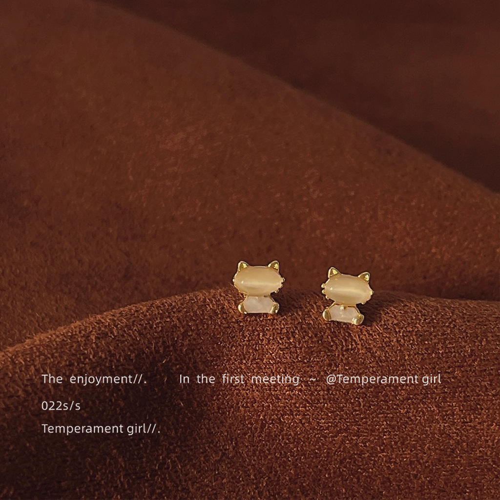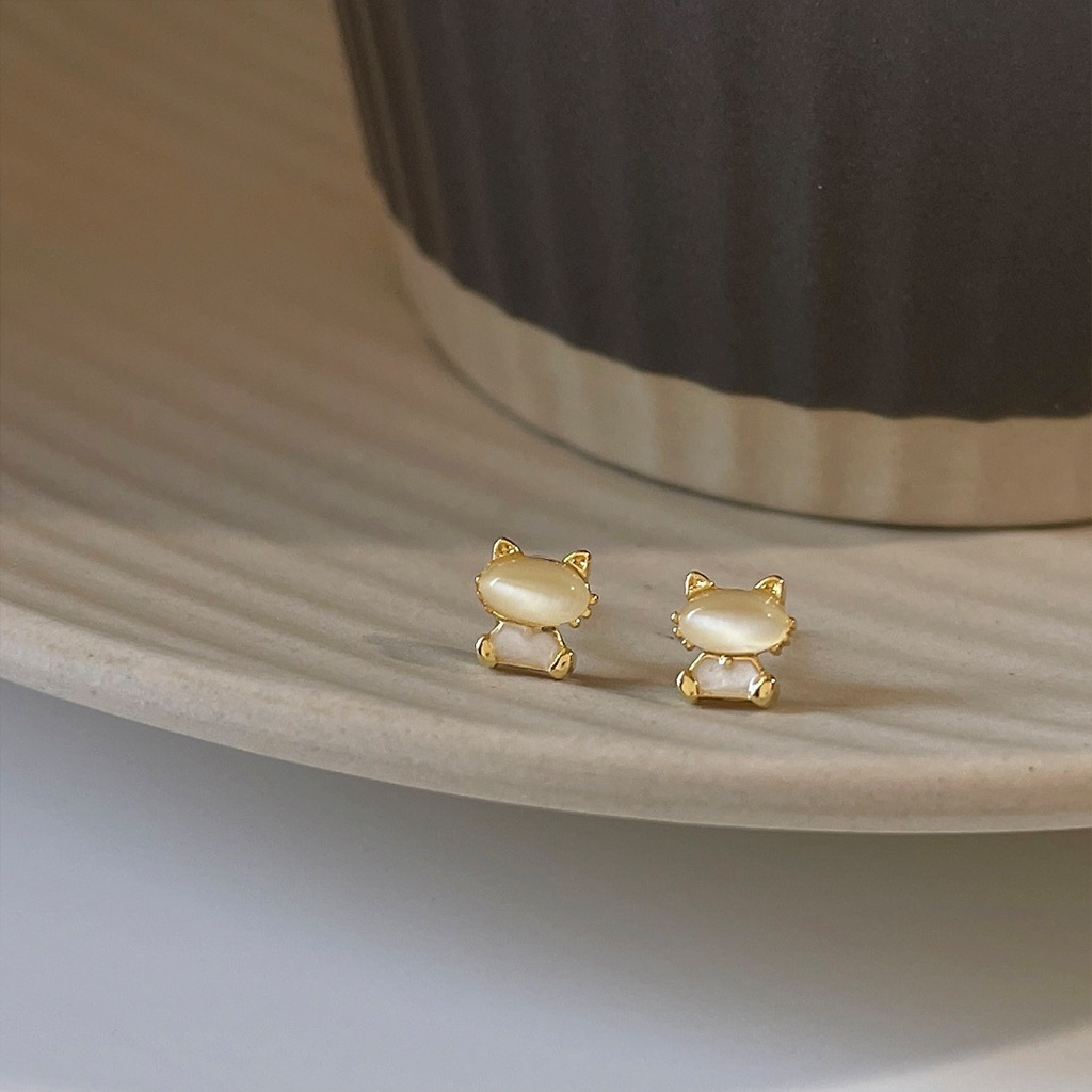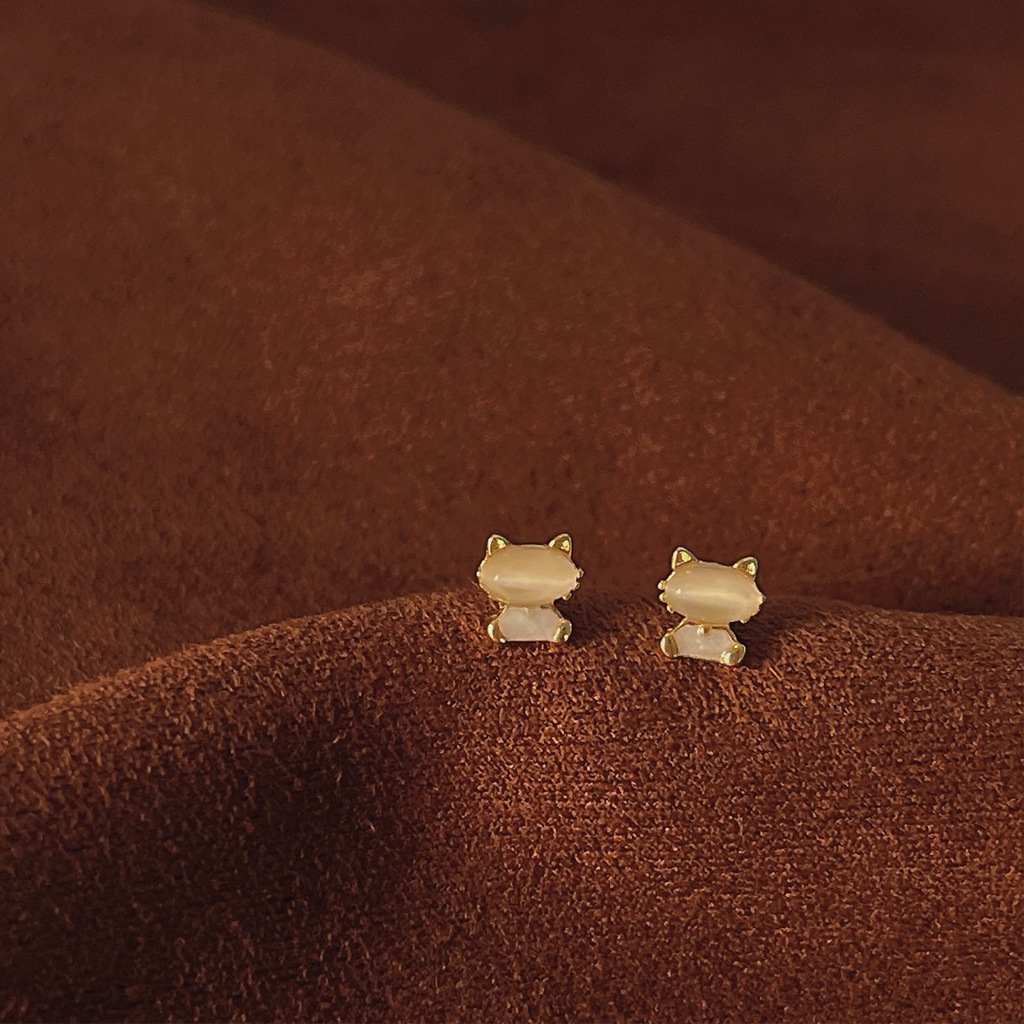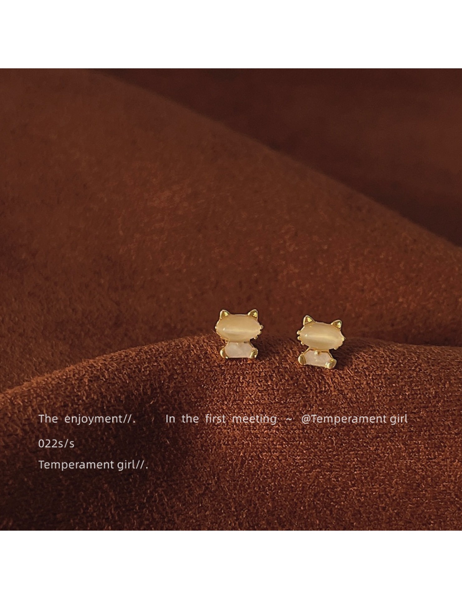 HELN124100377 迷你可愛小貓咪925銀針鍍14K耳釘小清新耳飾簡約百搭小飾品女