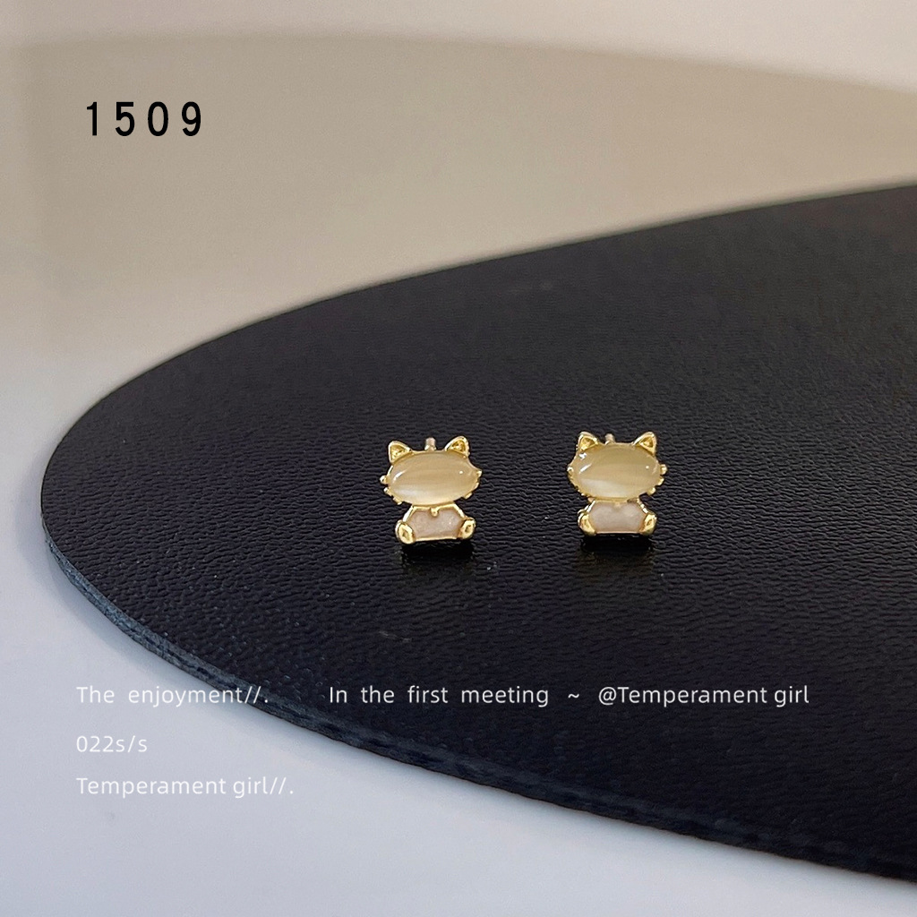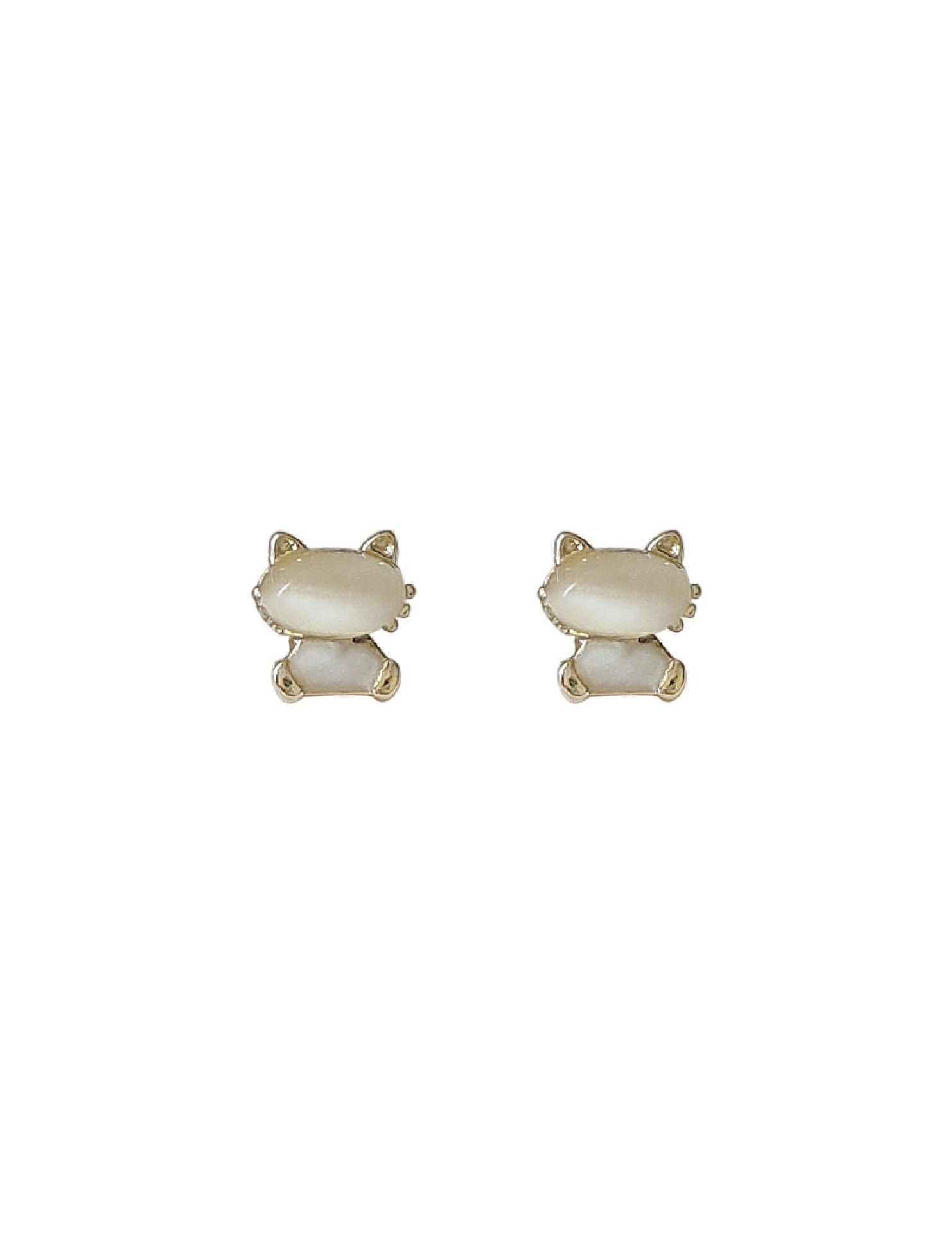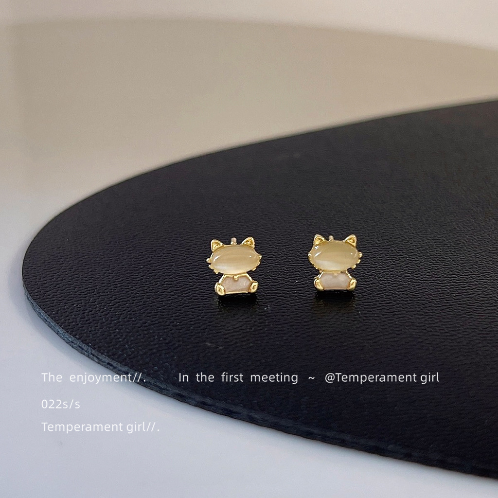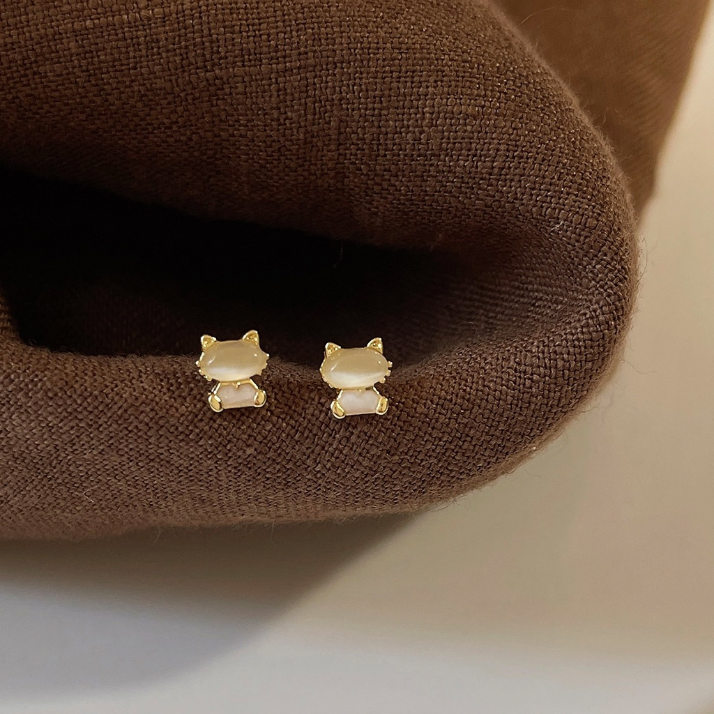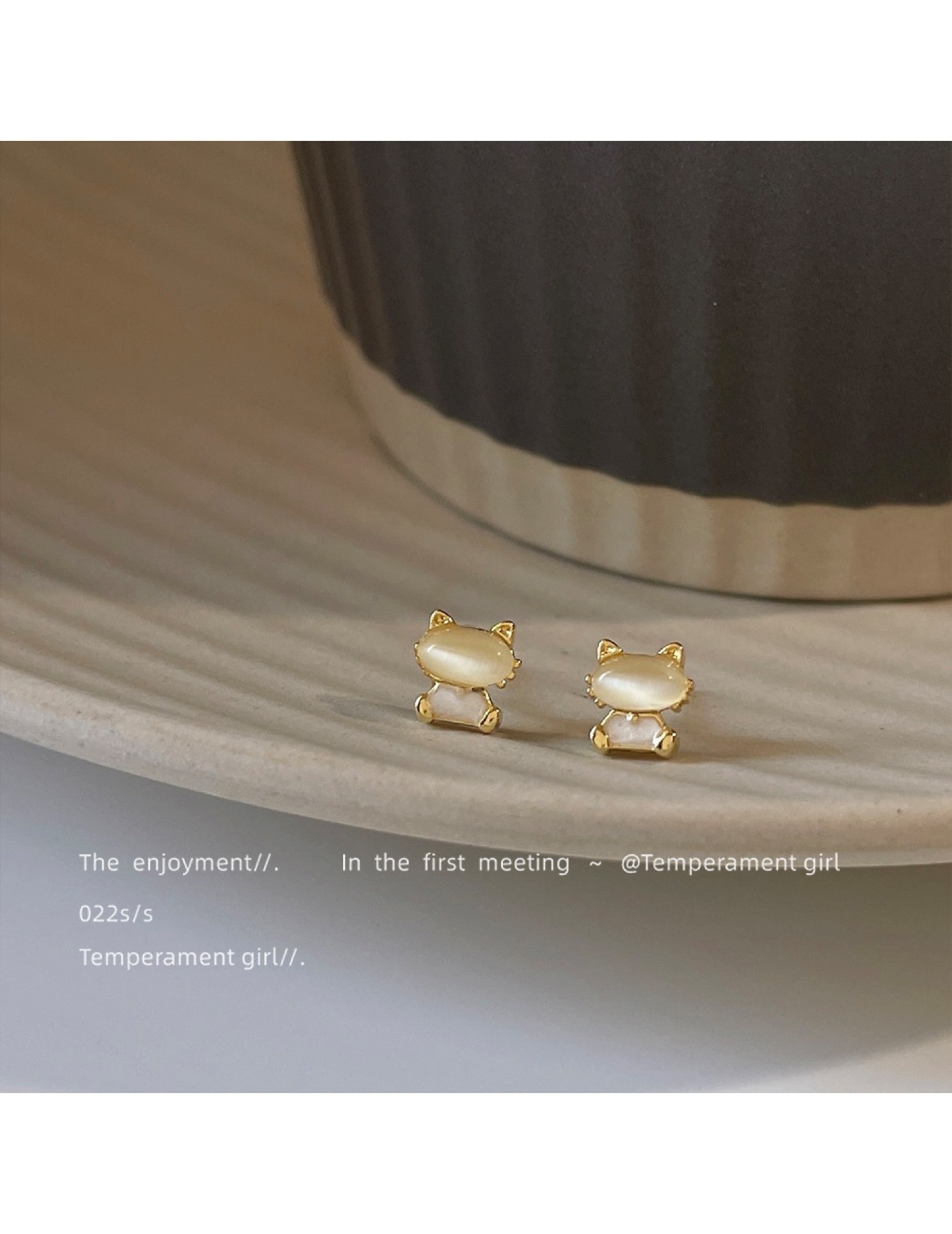 HELN124100377 迷你可愛小貓咪925銀針鍍14K耳釘小清新耳飾簡約百搭小飾品女