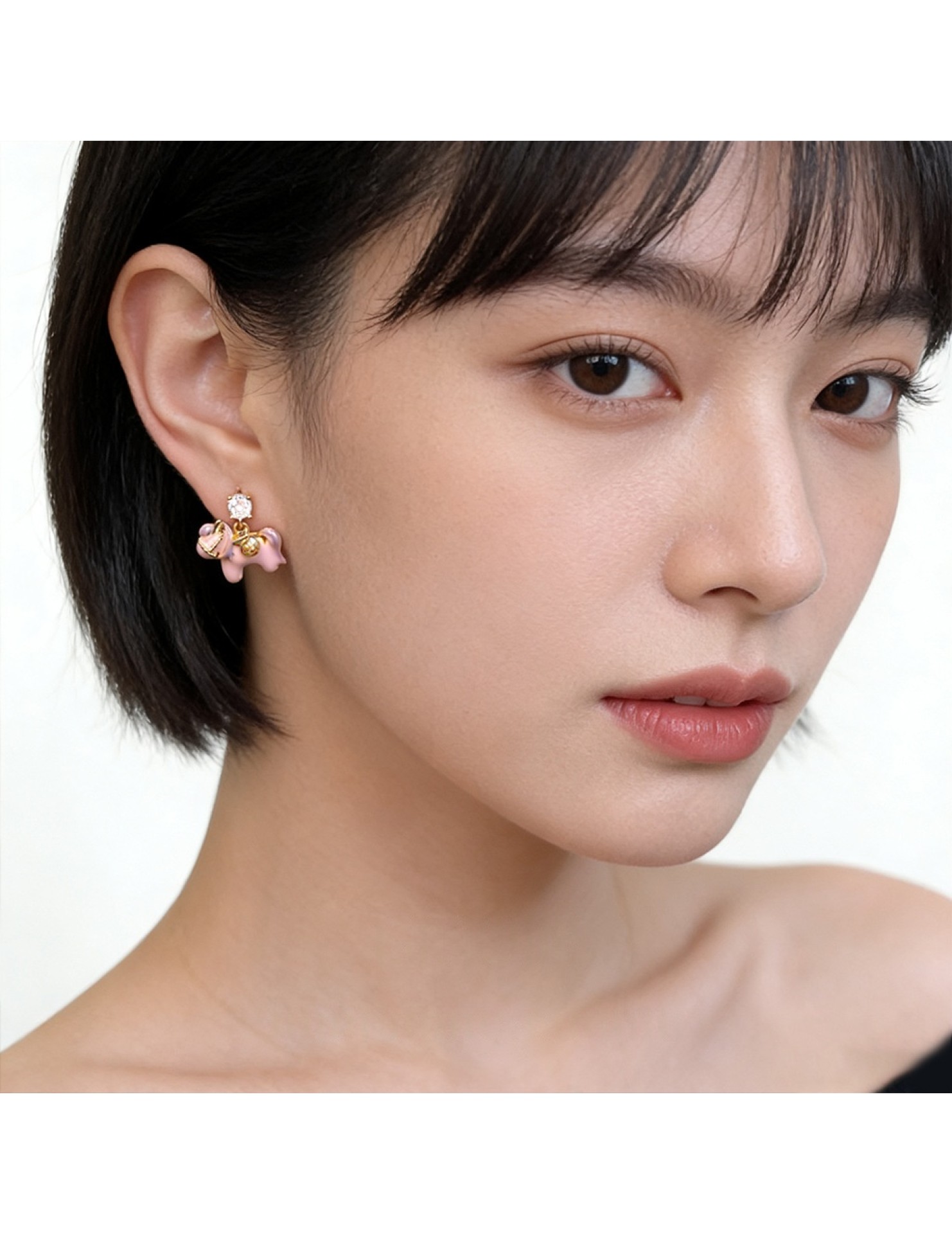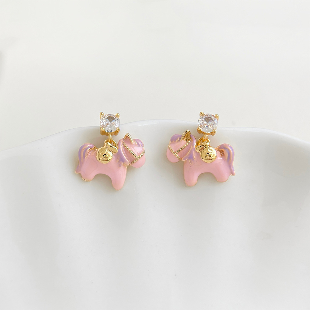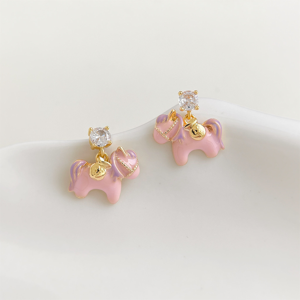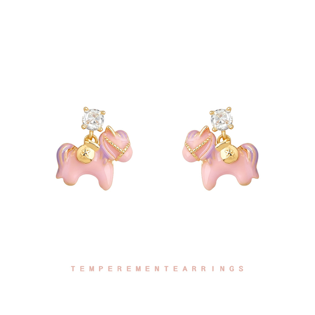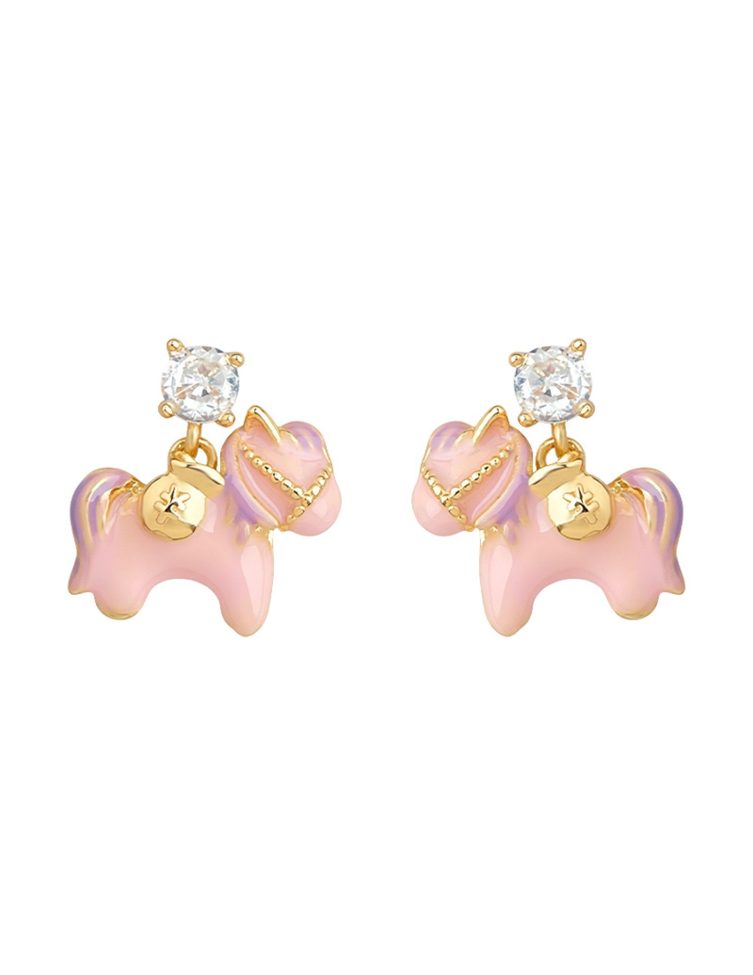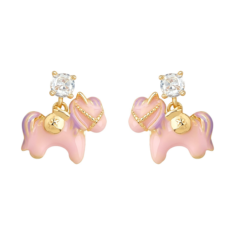 HELN124100007 溫柔甜美可愛粉小馬高顏值S925銀針鋯石彩繪琺瑯滴釉耳飾耳環