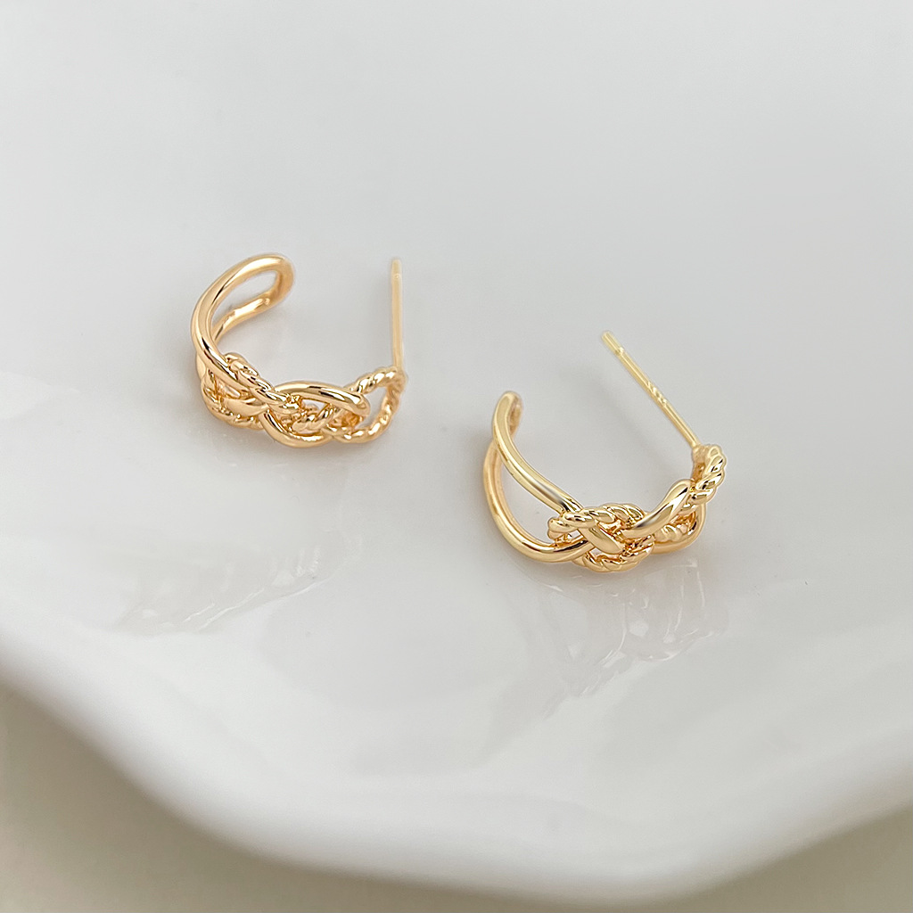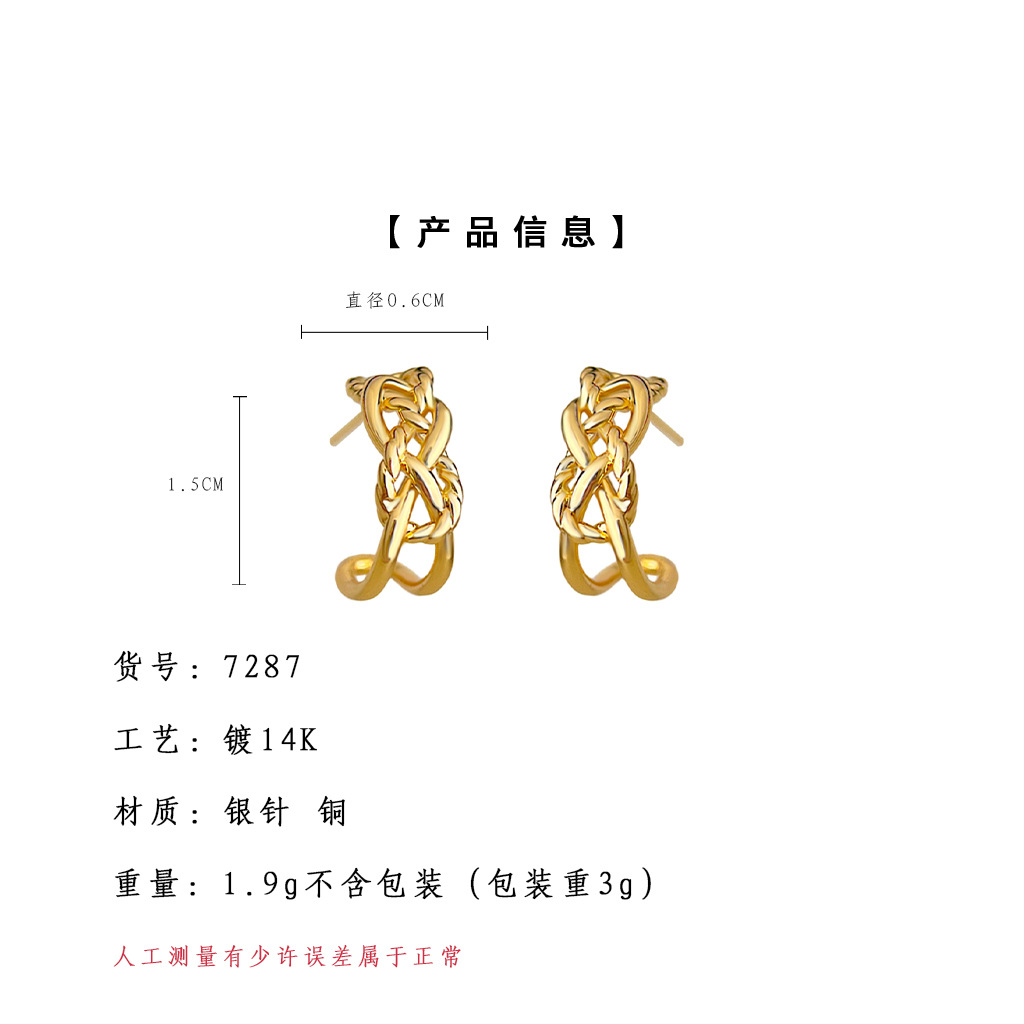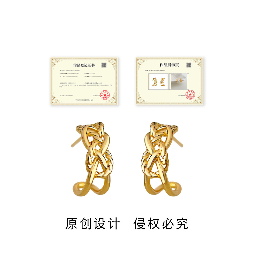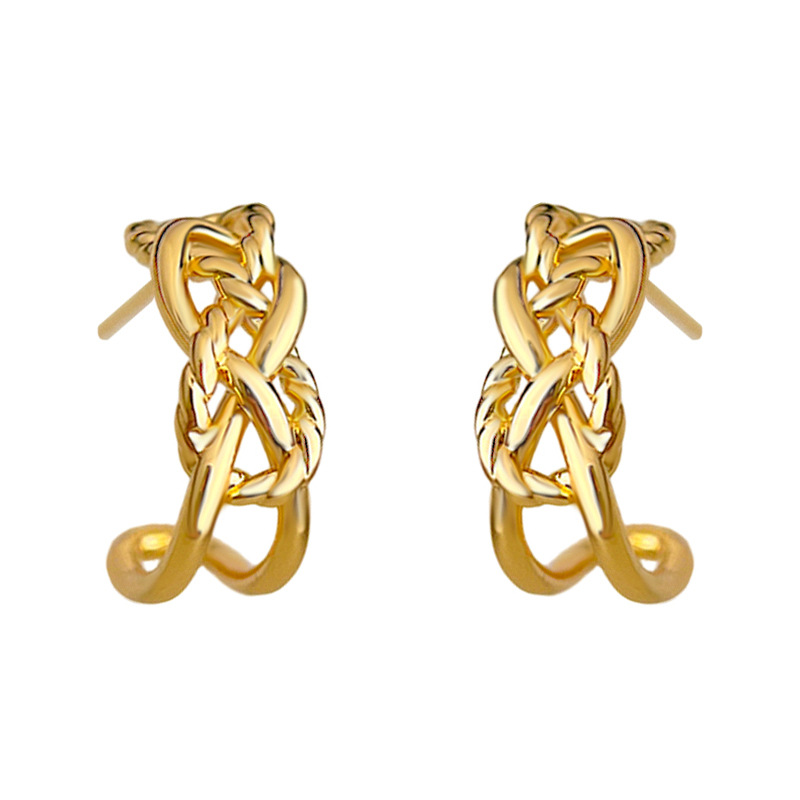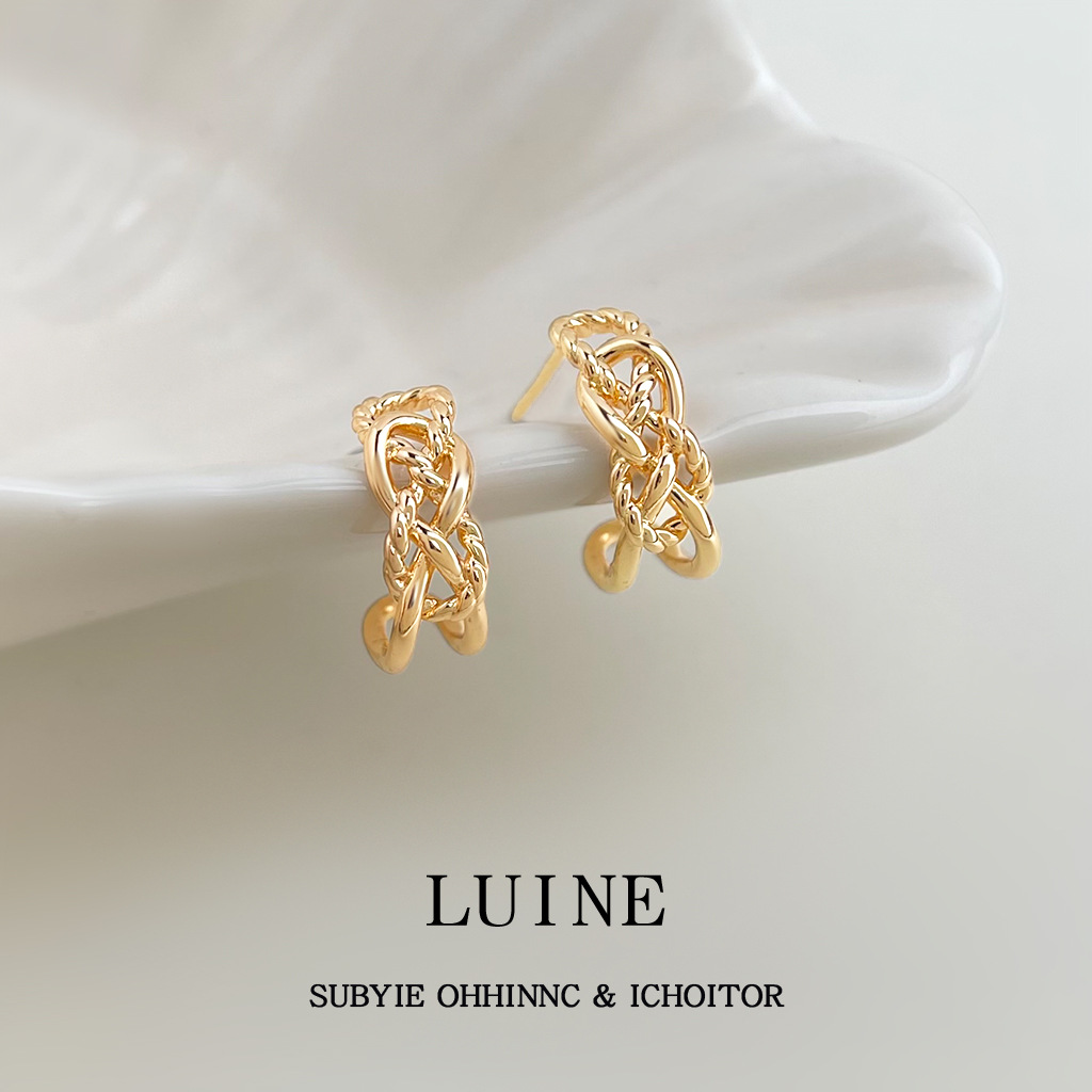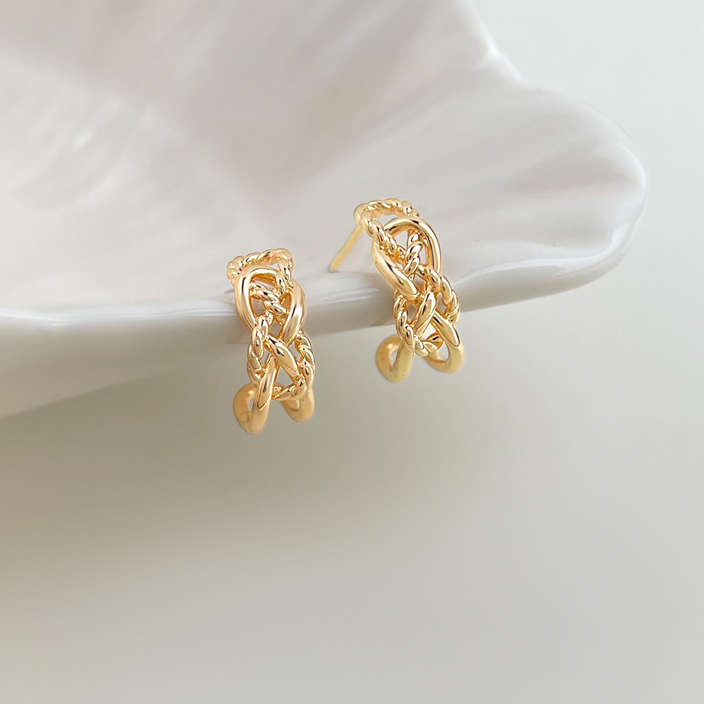 HELN124100282 極簡金屬鏤空寬鏈耳環金色輕奢小眾設計高級感新潮c形耳飾