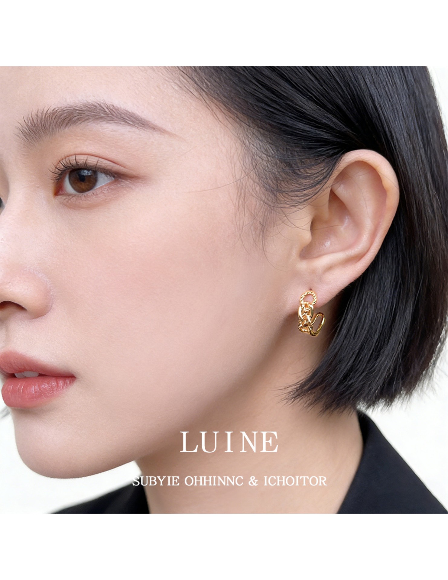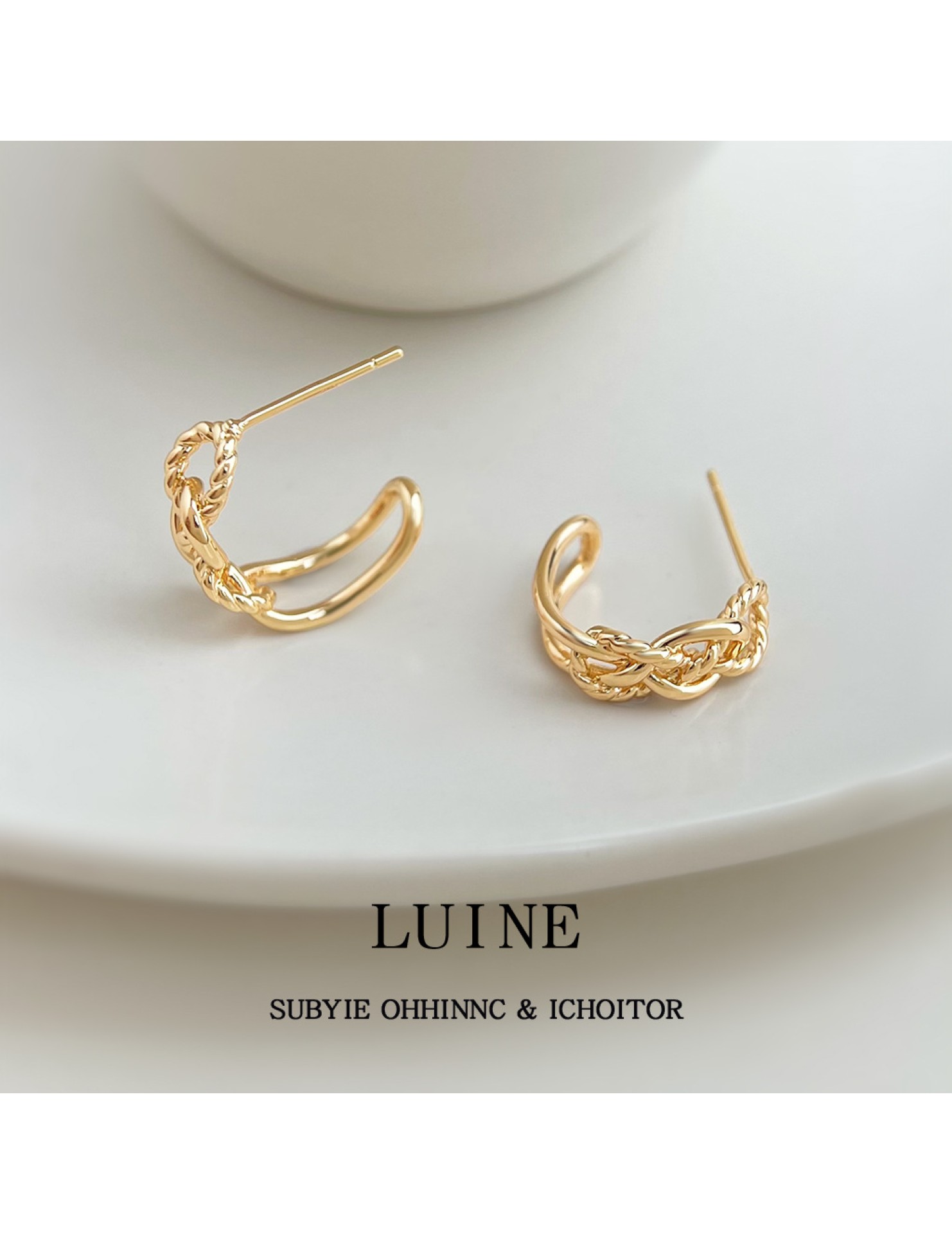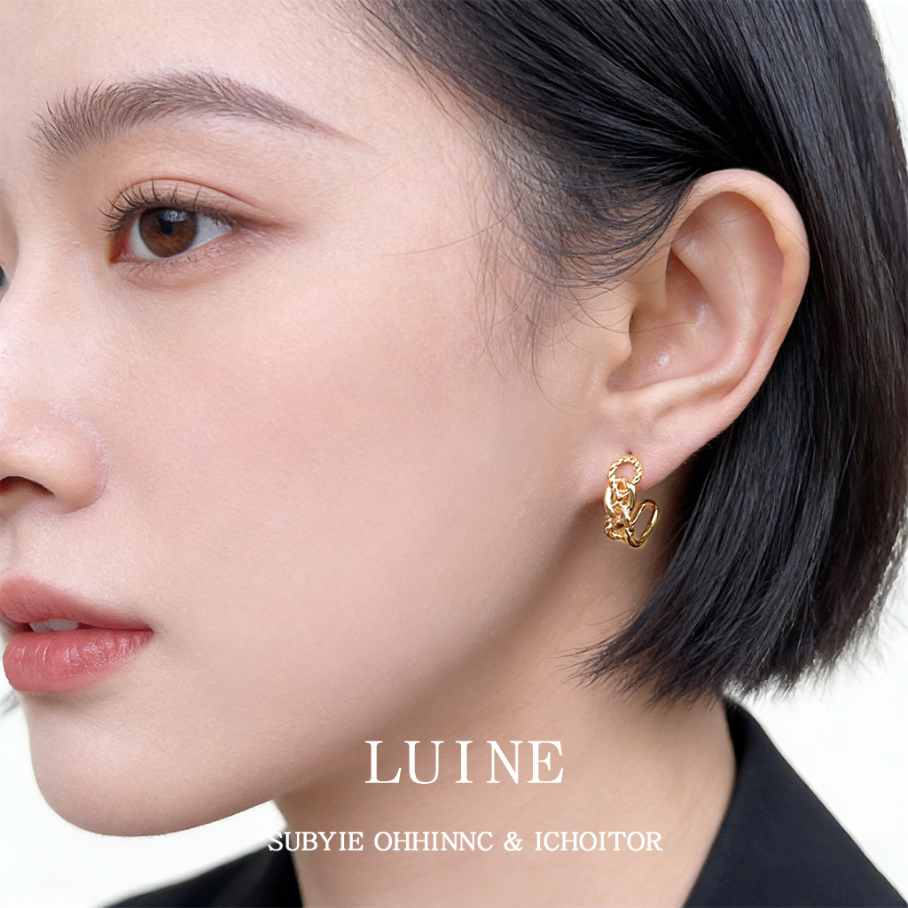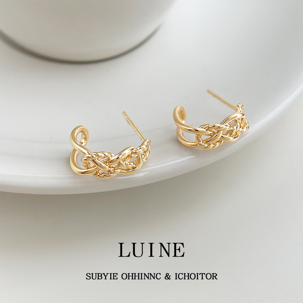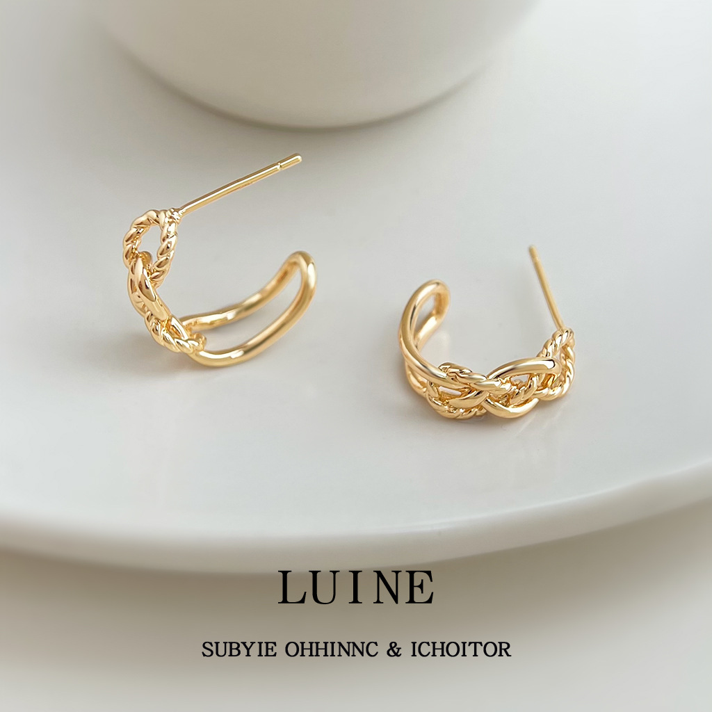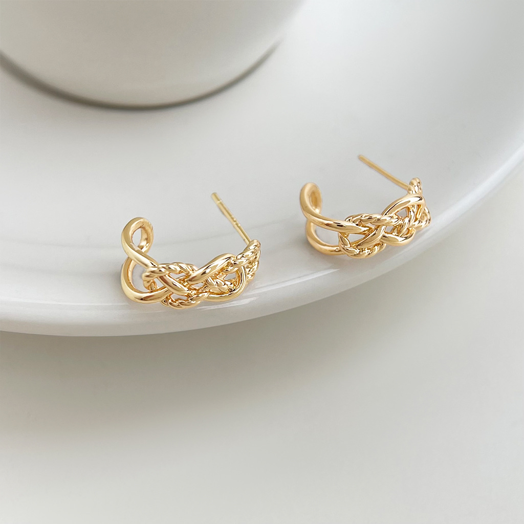 HELN124100282 極簡金屬鏤空寬鏈耳環金色輕奢小眾設計高級感新潮c形耳飾
