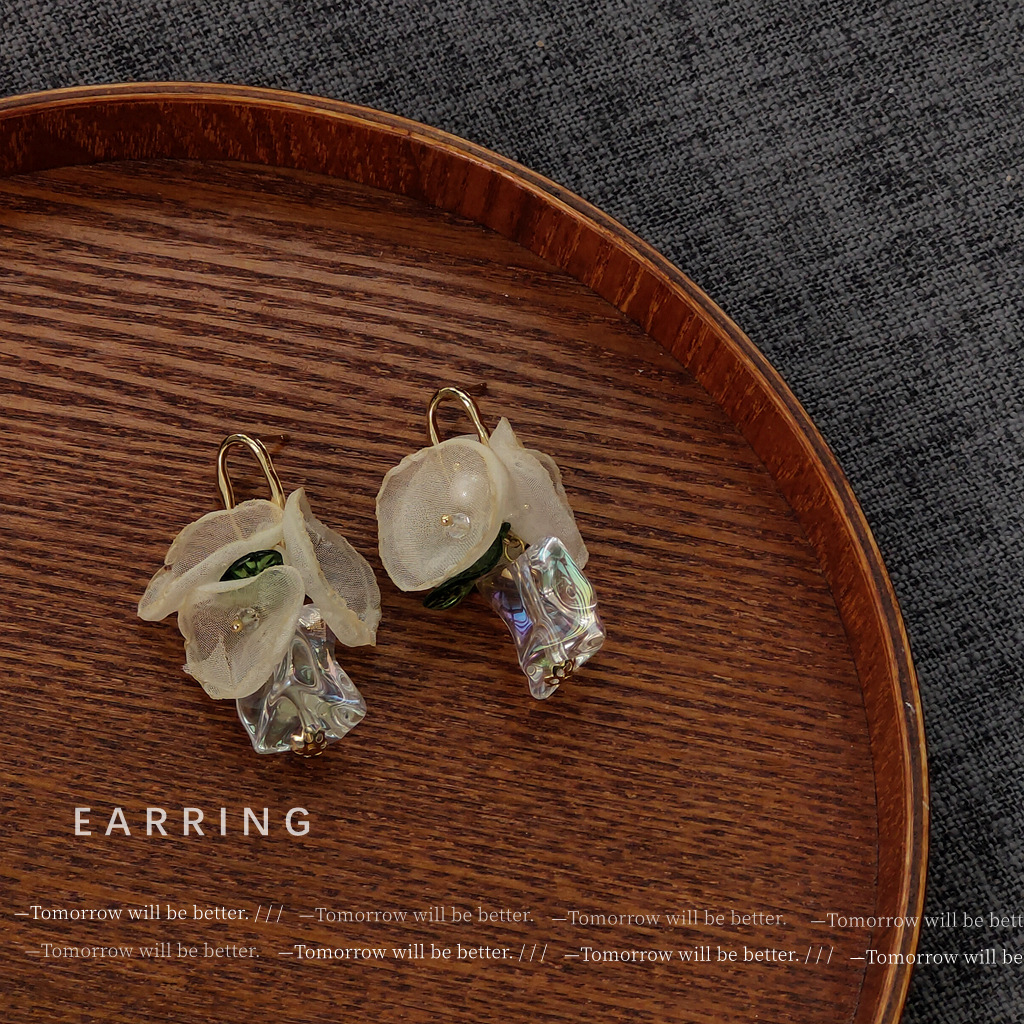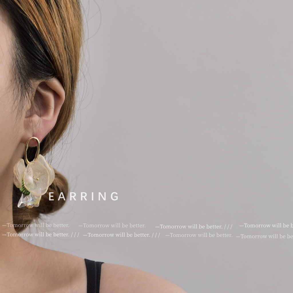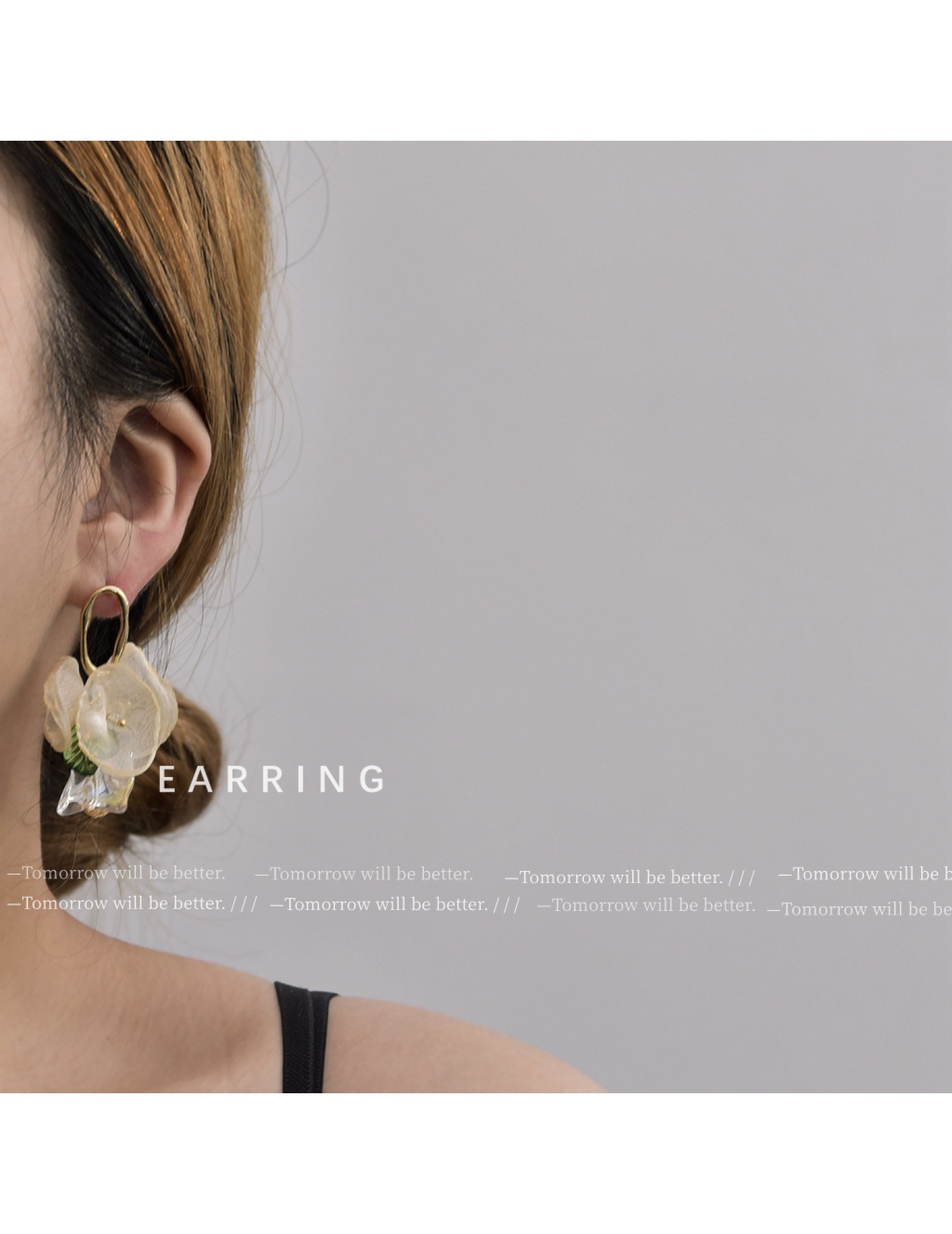 HELN124100286 925銀針鍍14K輕薄柔紗花朵亞克力耳環耳釘女復古森系耳飾