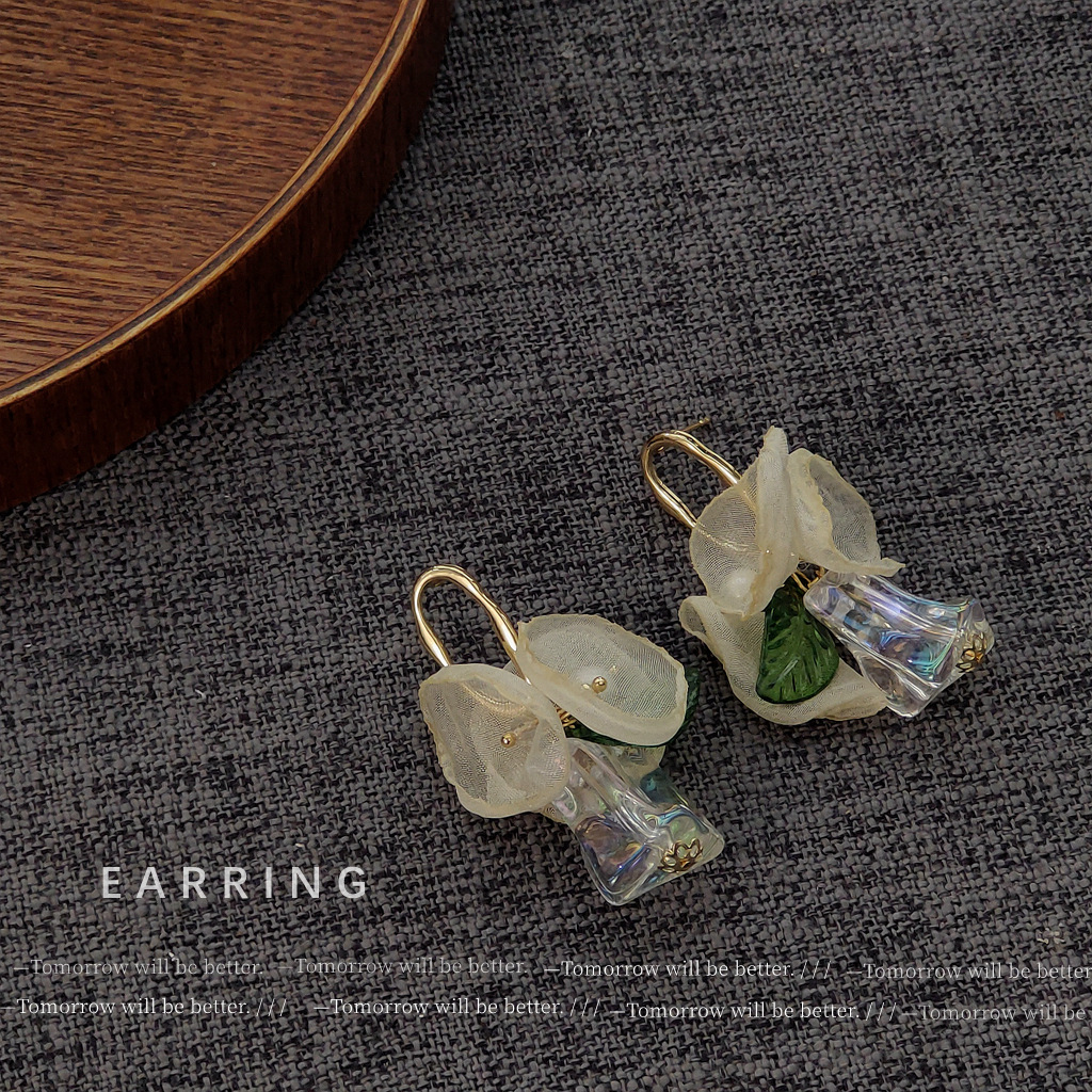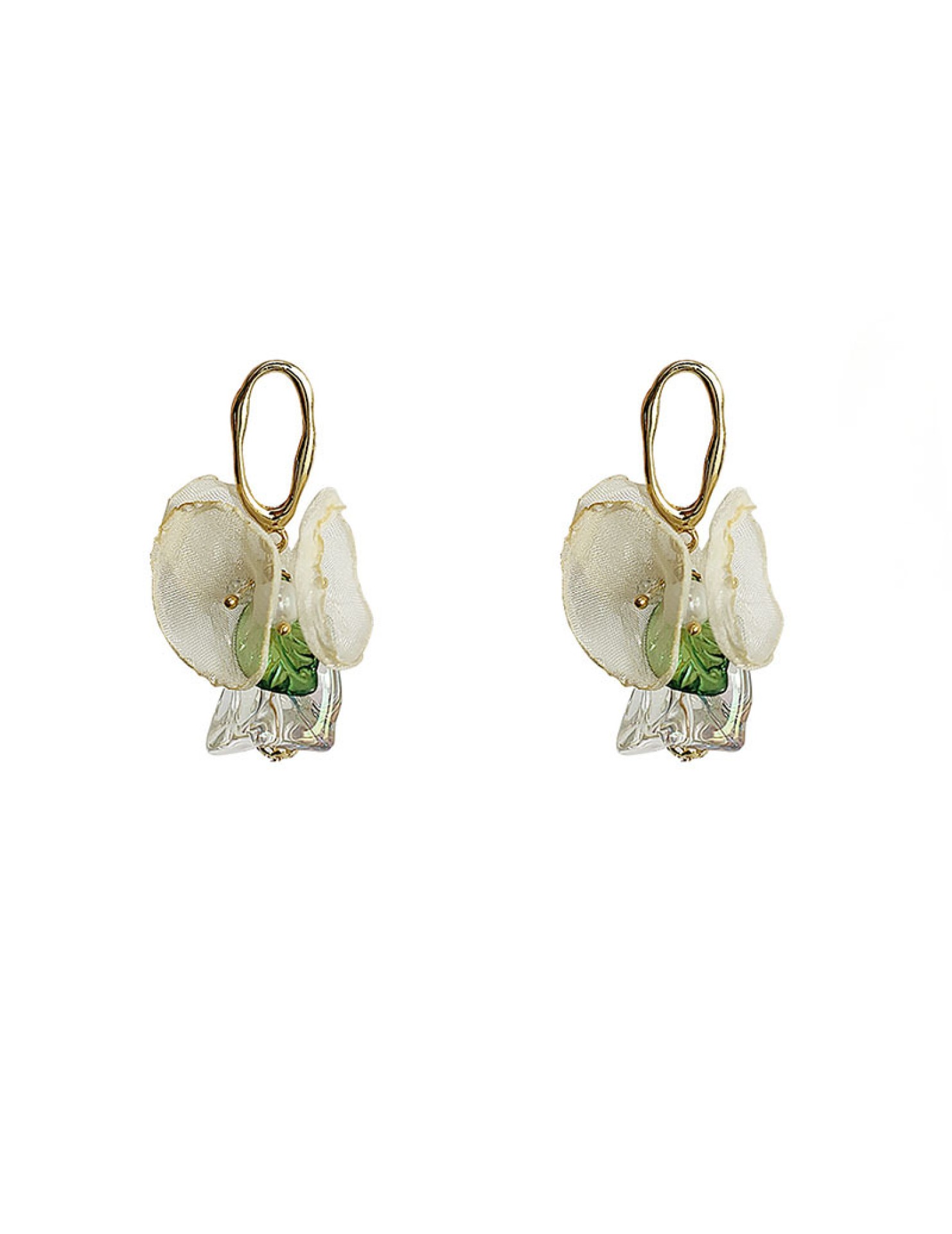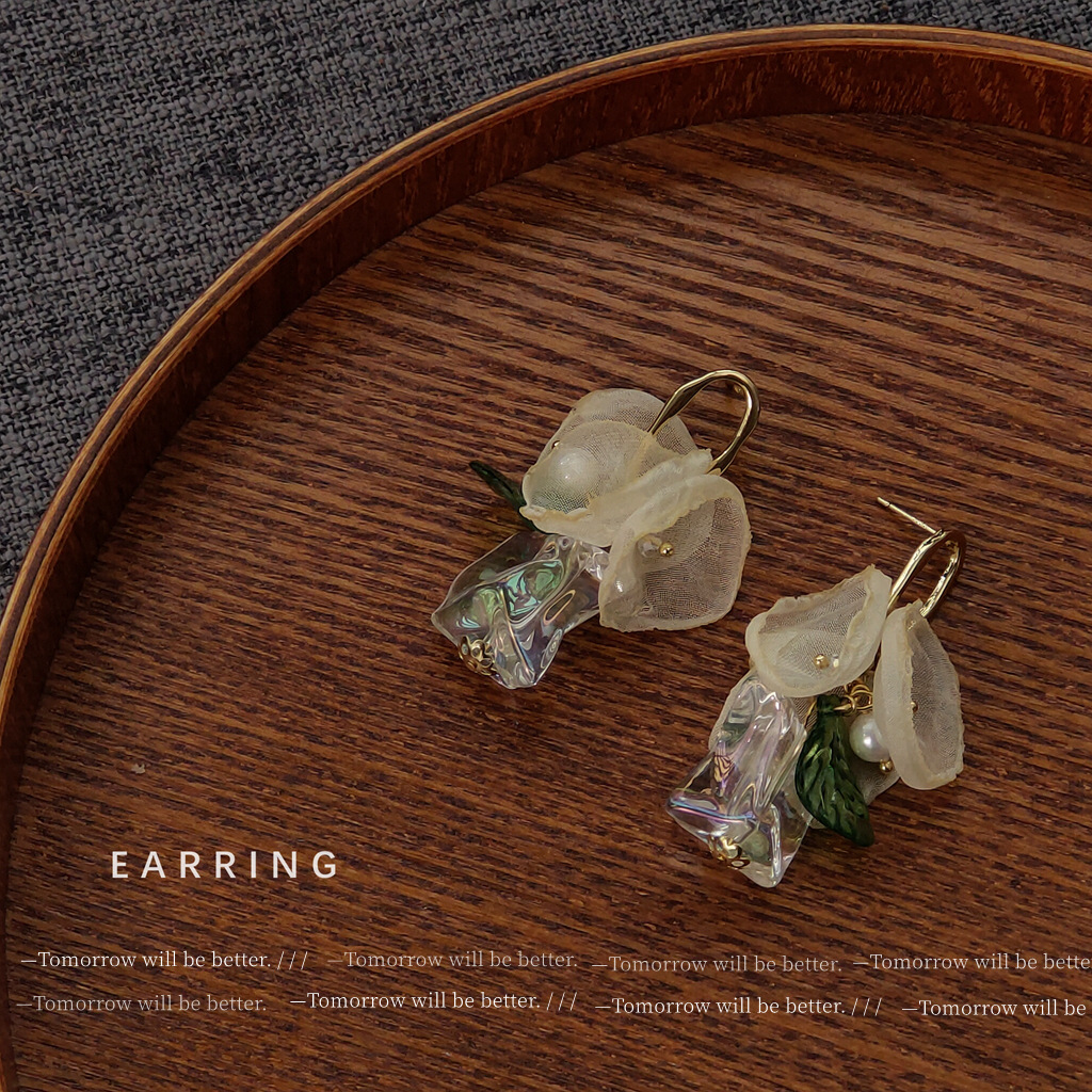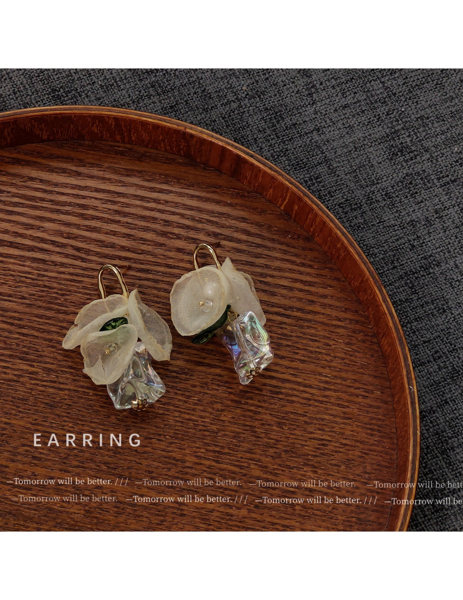 HELN124100286 925銀針鍍14K輕薄柔紗花朵亞克力耳環耳釘女復古森系耳飾