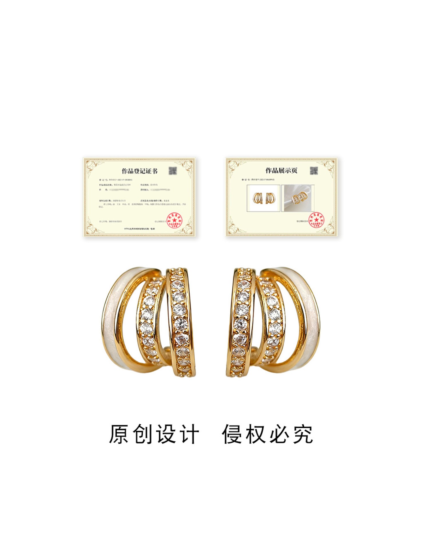 7297原創版權銀針幾何鋯石耳環