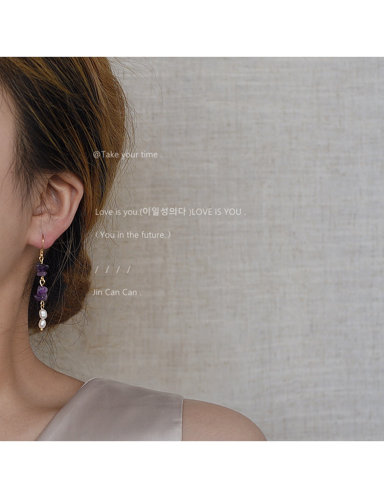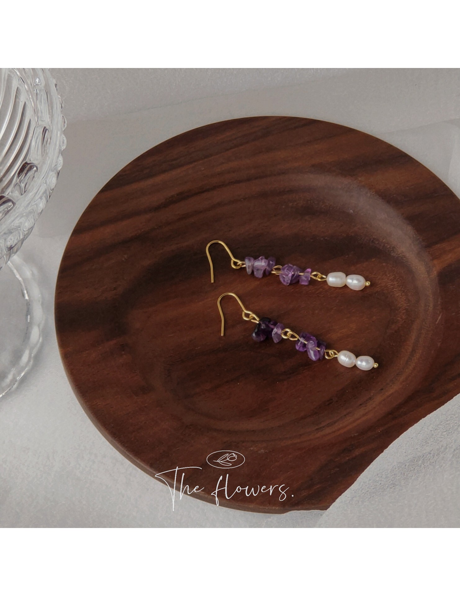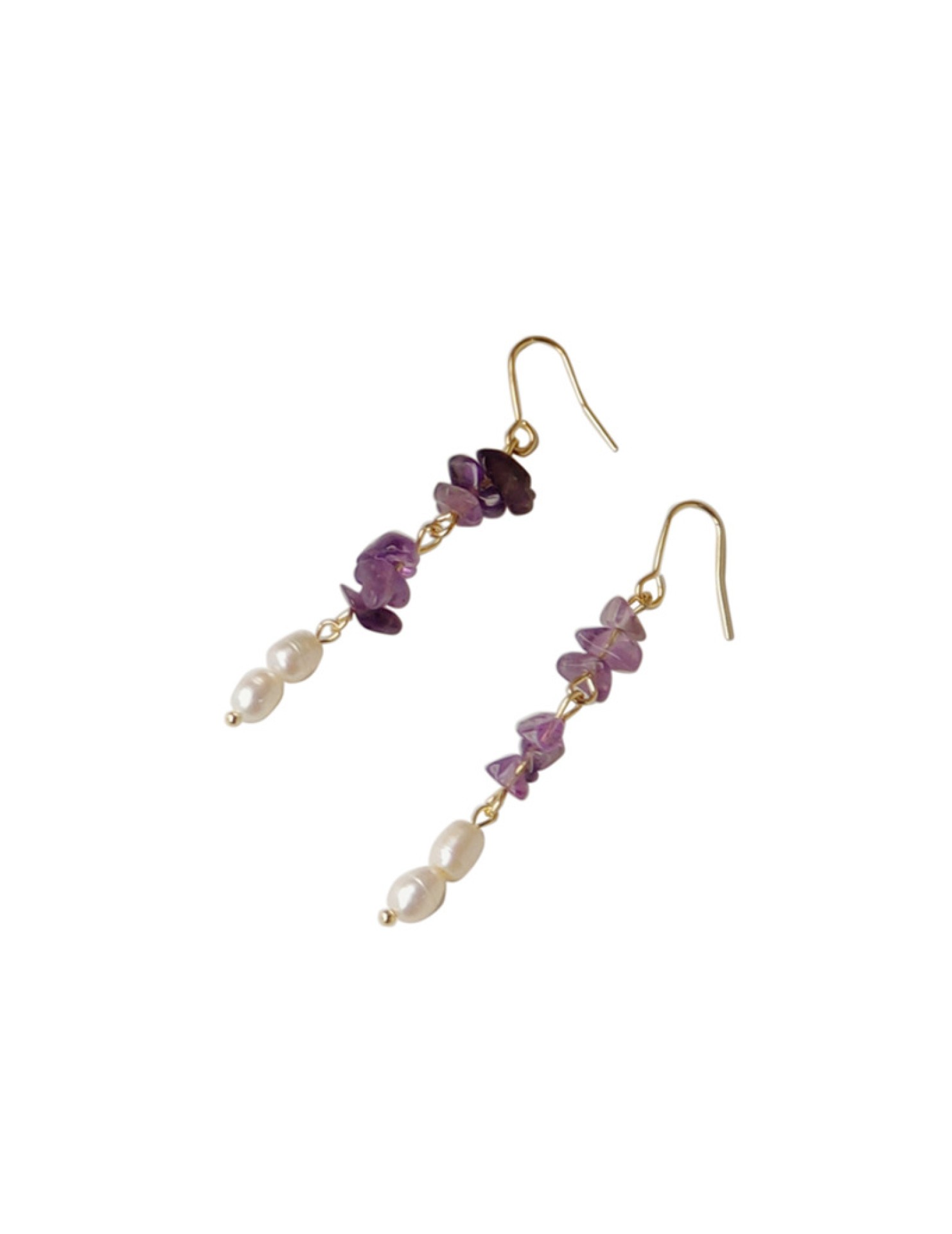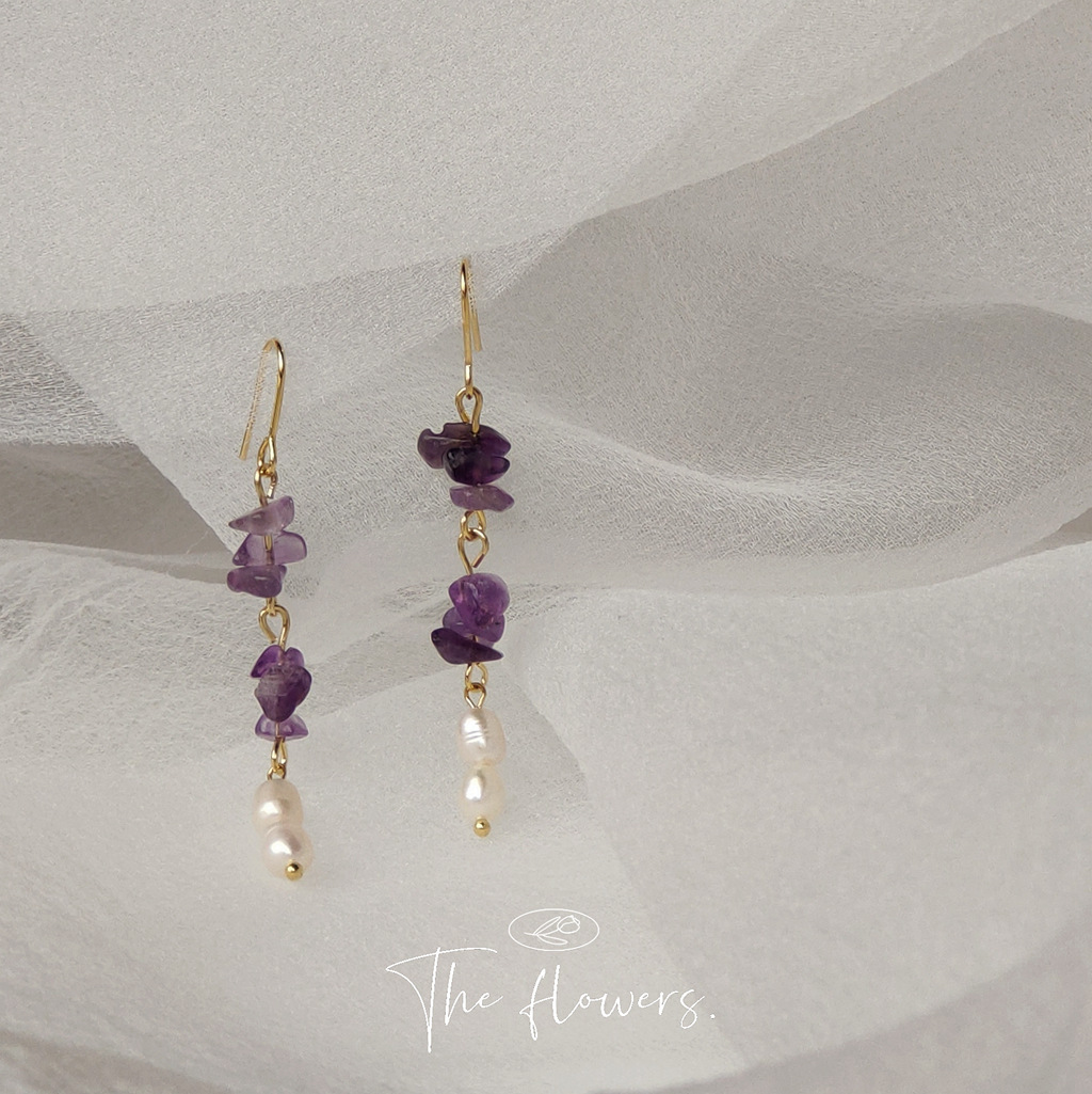 HELN124100298 [浪漫薰衣草]紫碎石淡水珍珠耳環 韓國時尚設計手作氣質長款耳飾