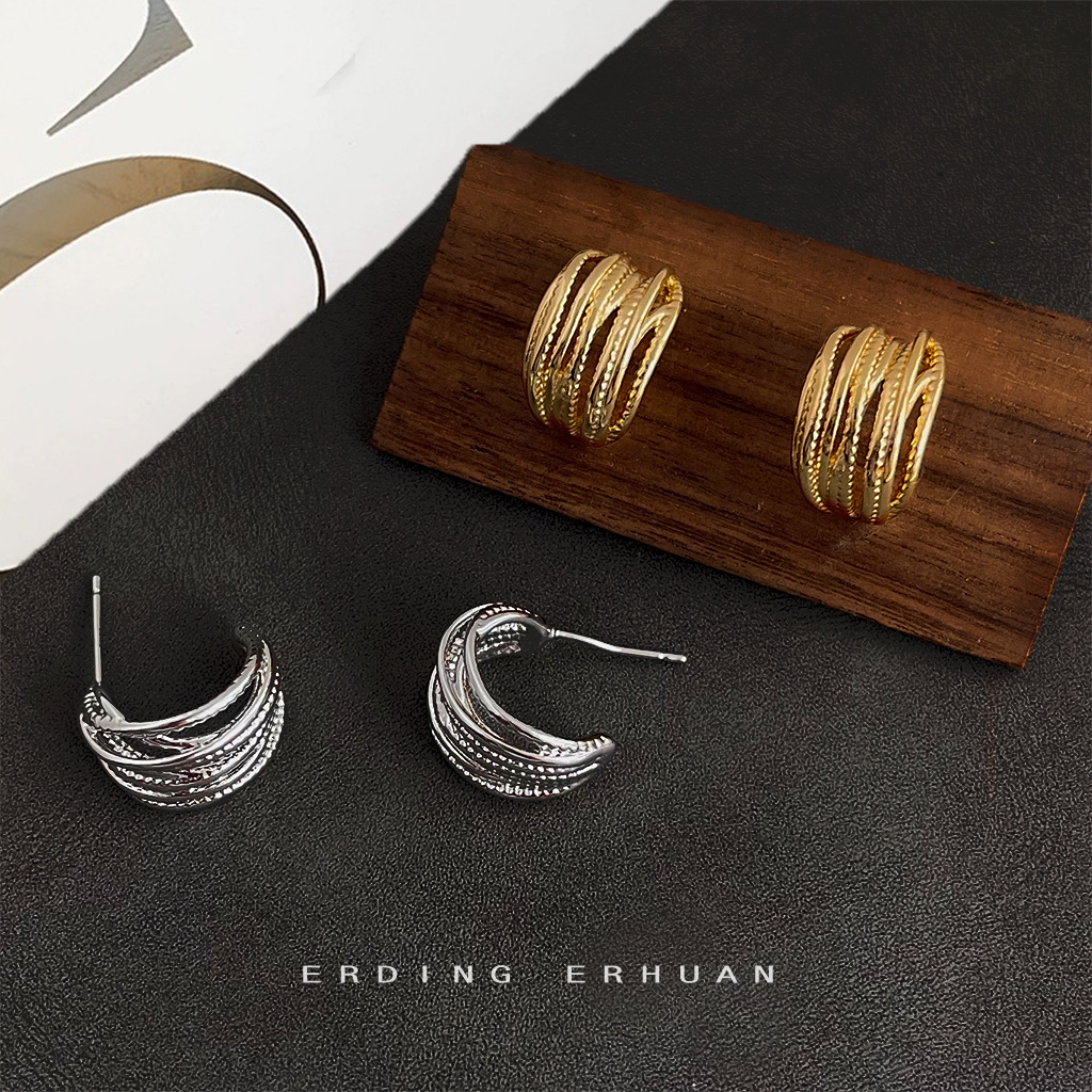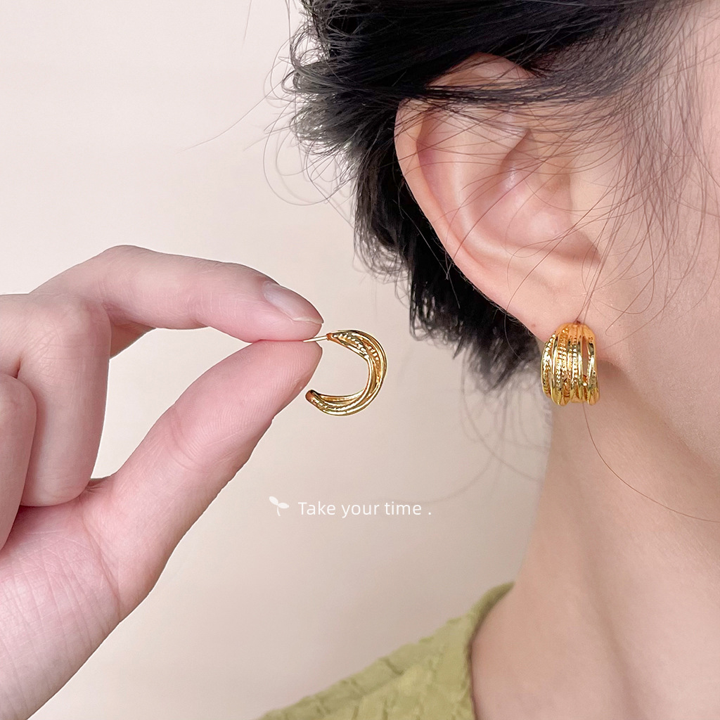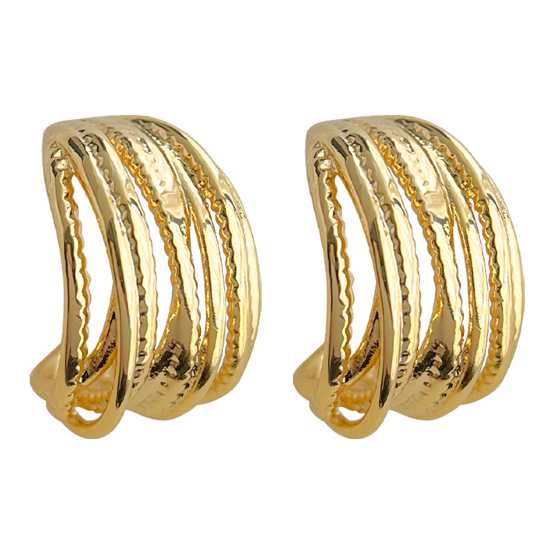 HELN124100308 銅光面電鍍14K線條幾何高級感簡約百搭耳環