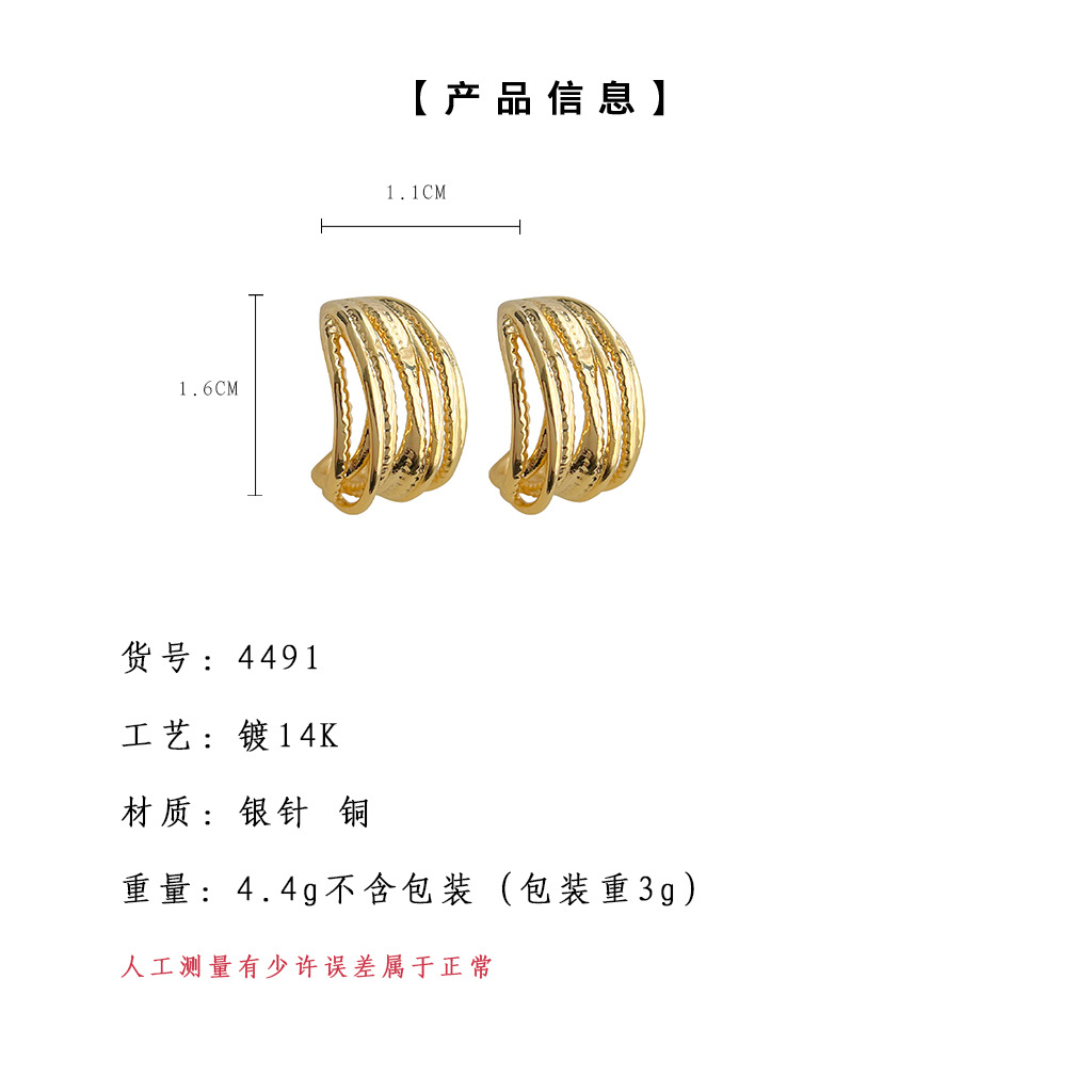 4491銀針線條耳環金色