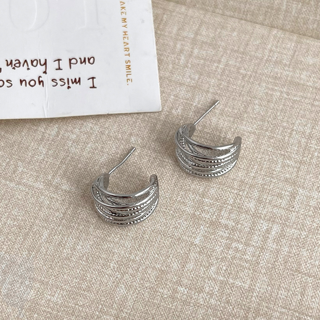 4492銀針線條耳環銀色
