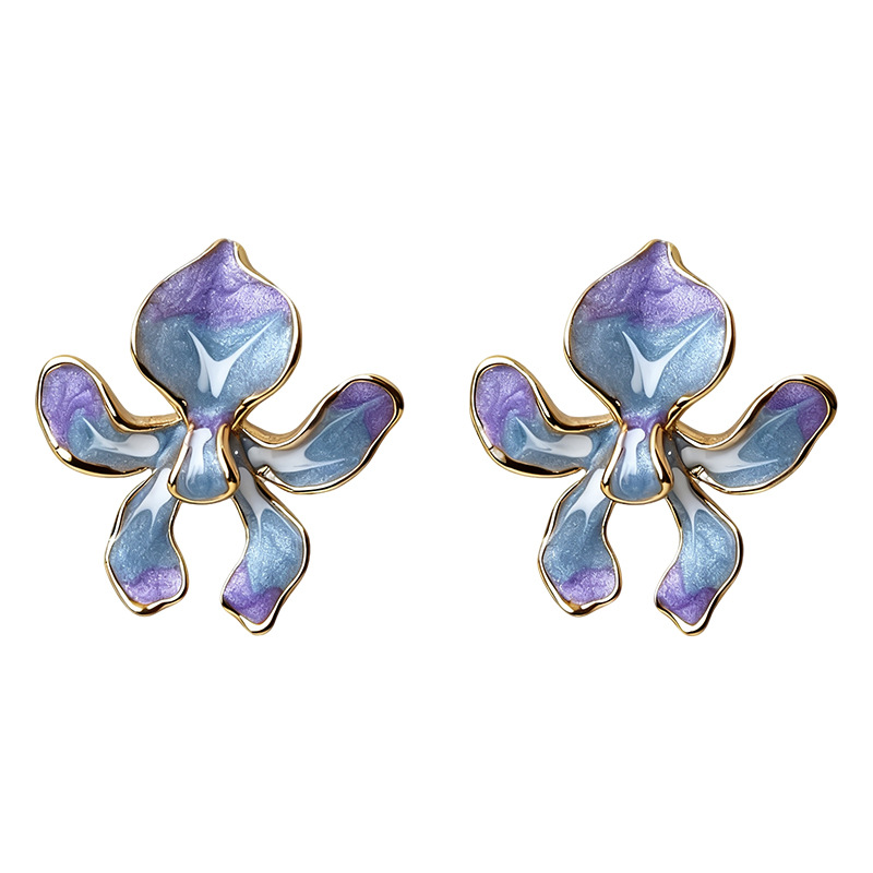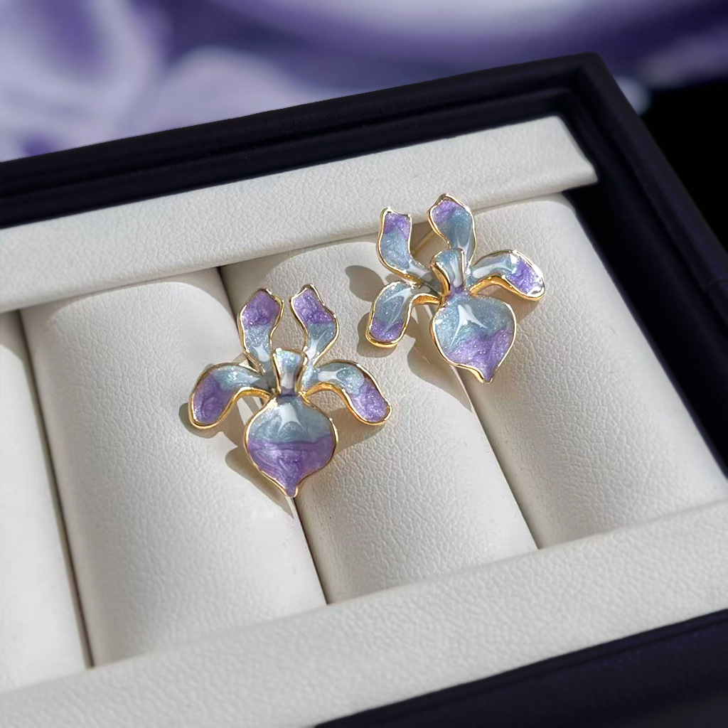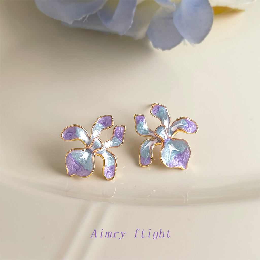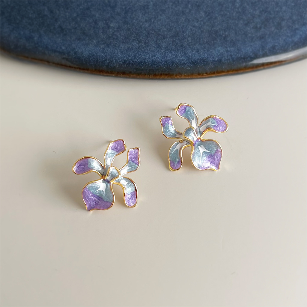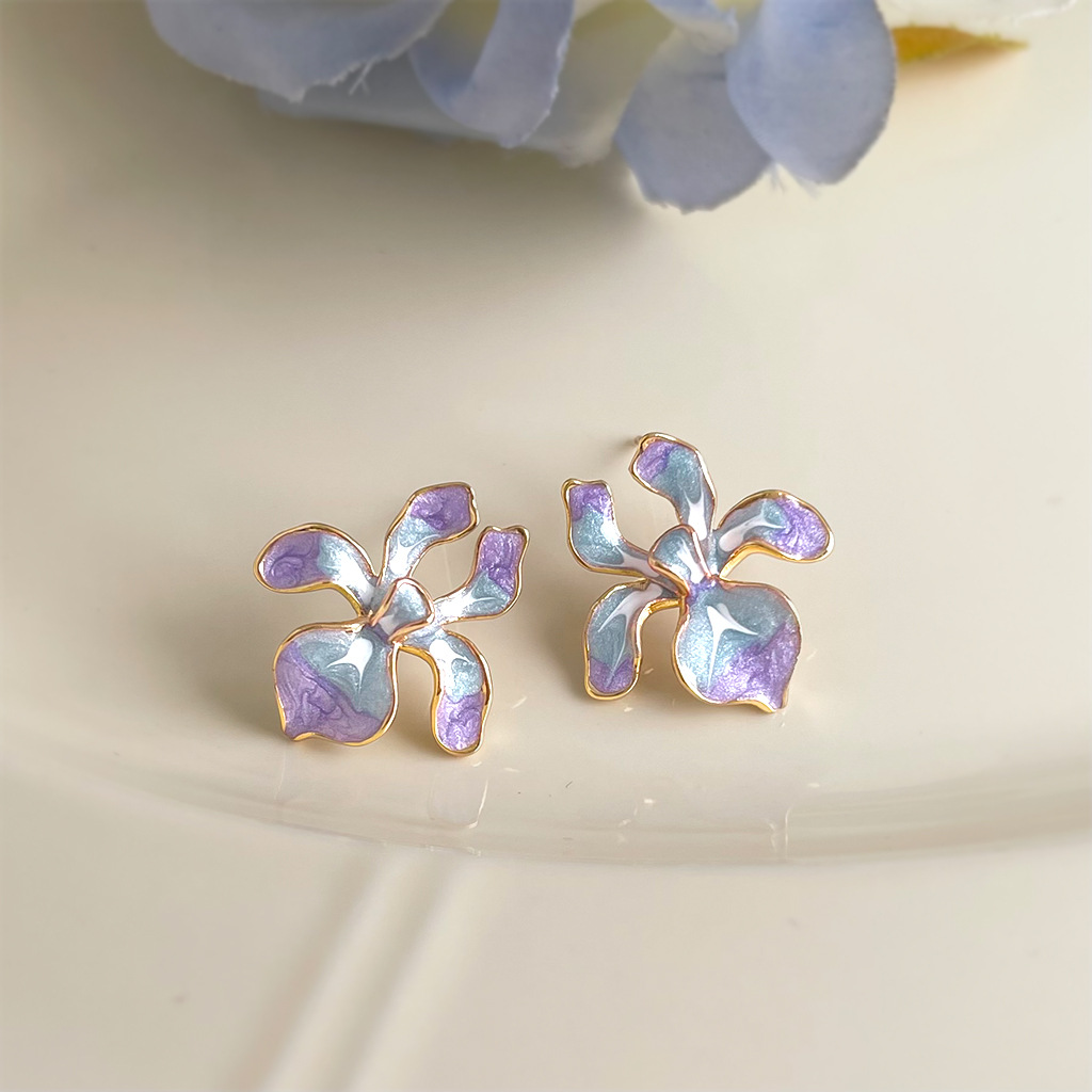 HELN124100318 鳶尾花系列手工彩繪琺瑯滴釉漸變色清新甜美耳飾s925銀針耳環