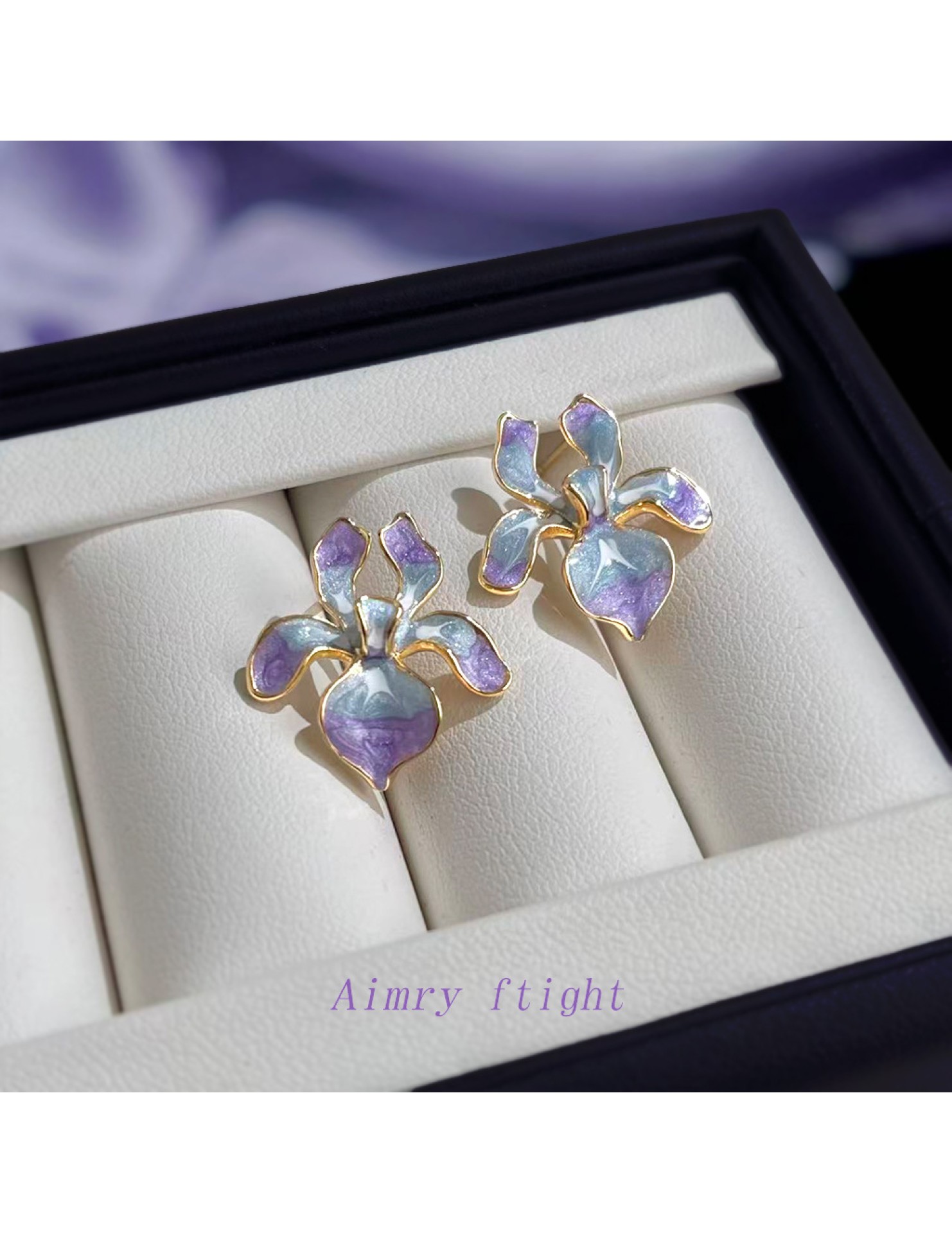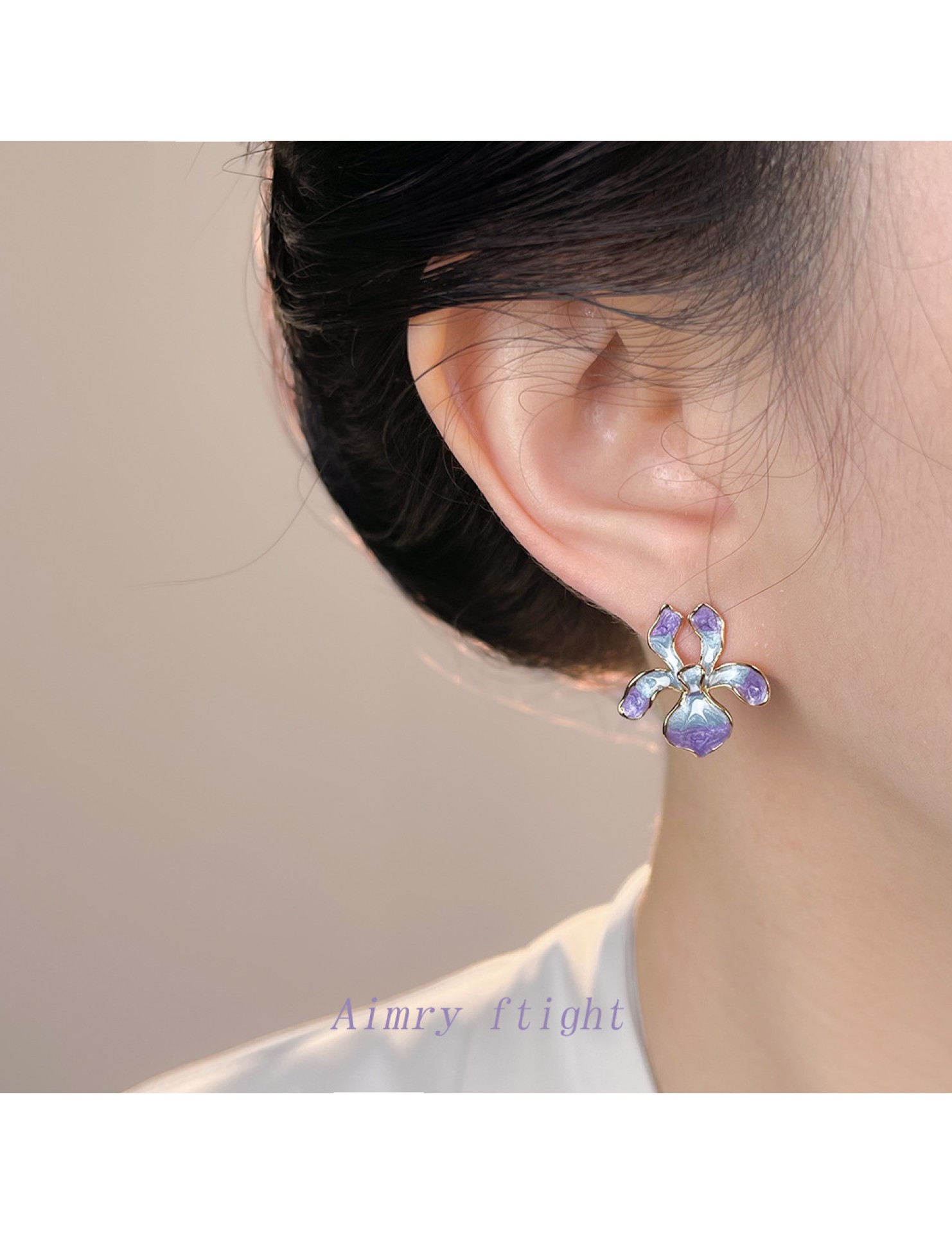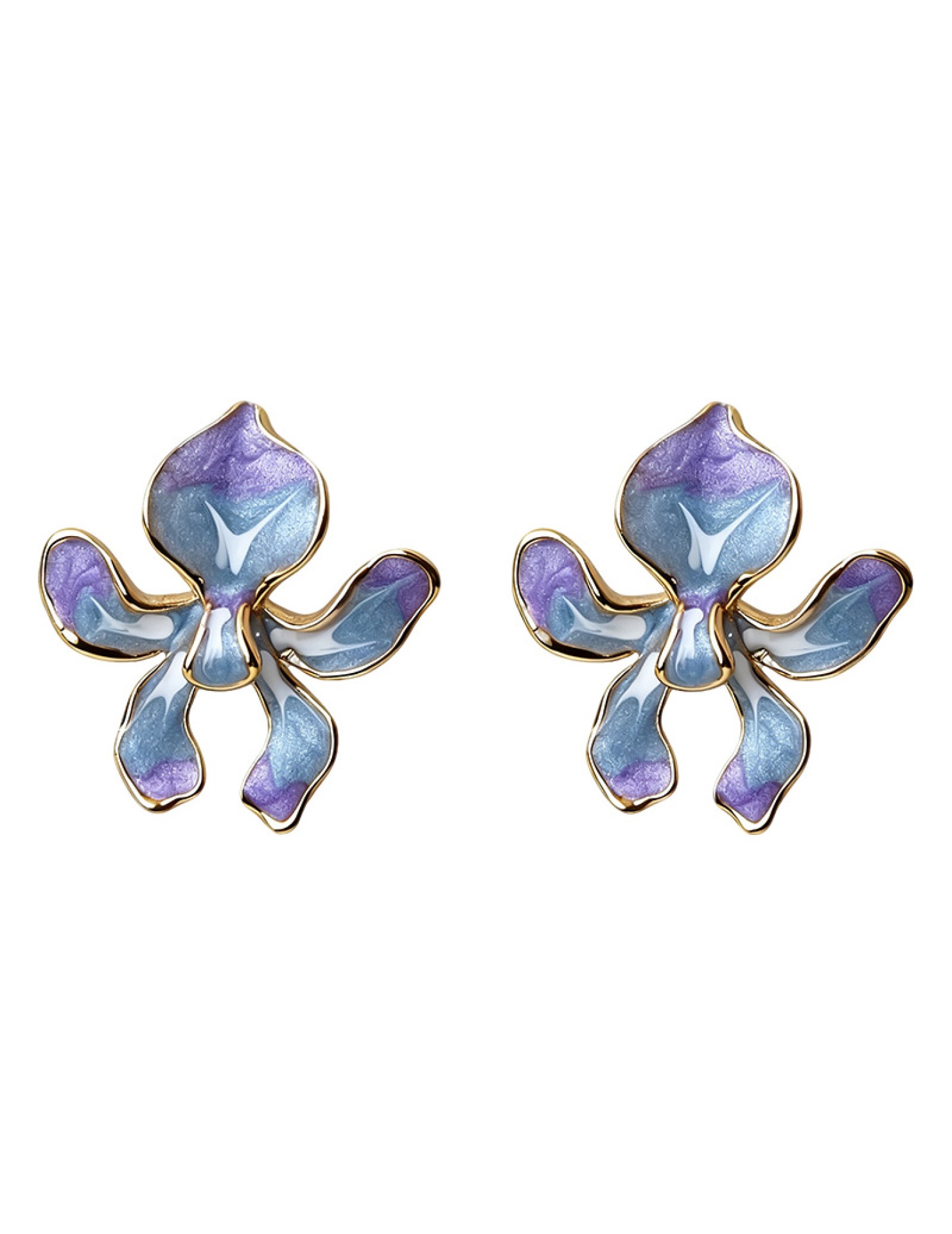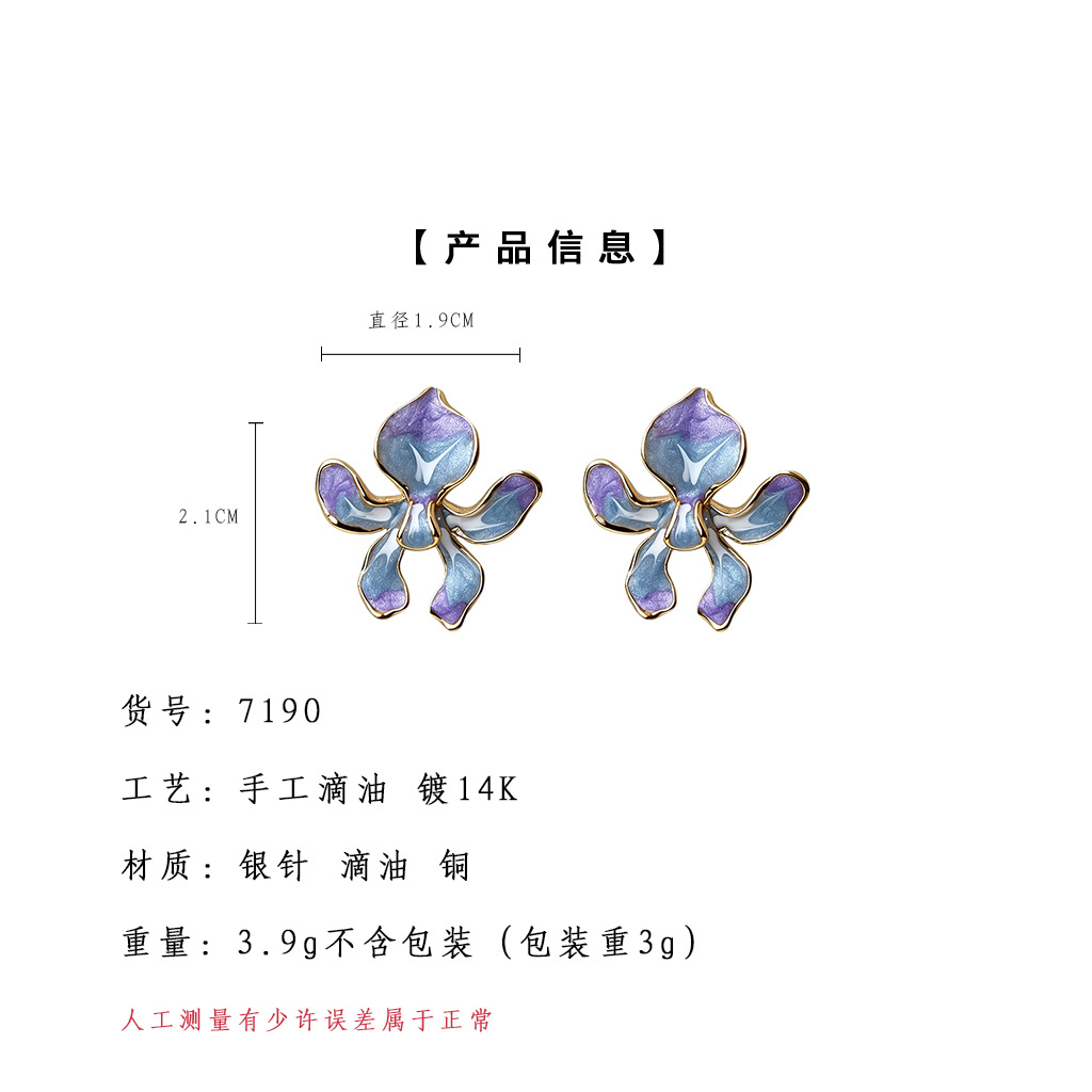 HELN124100318 鳶尾花系列手工彩繪琺瑯滴釉漸變色清新甜美耳飾s925銀針耳環