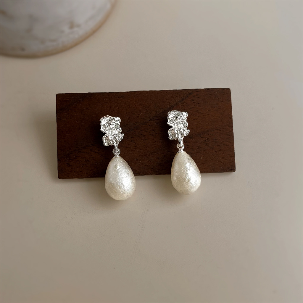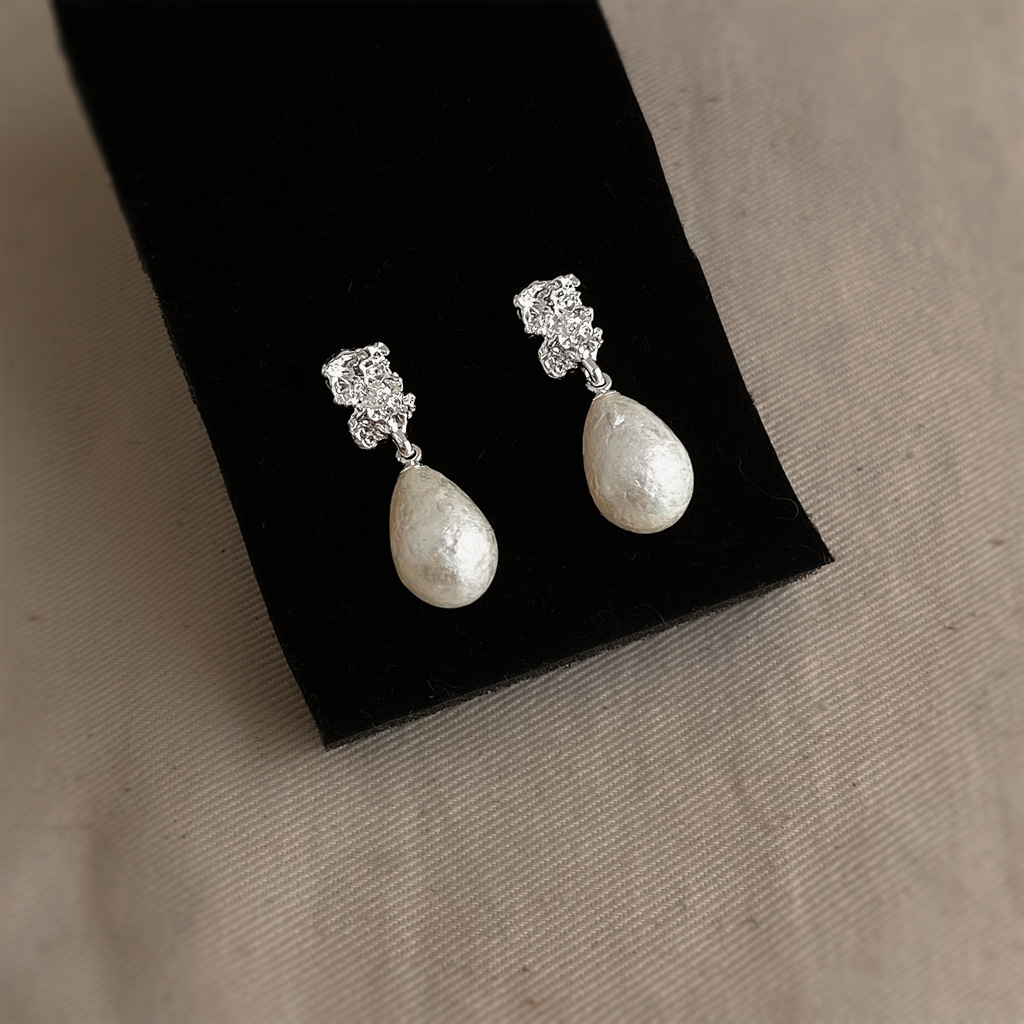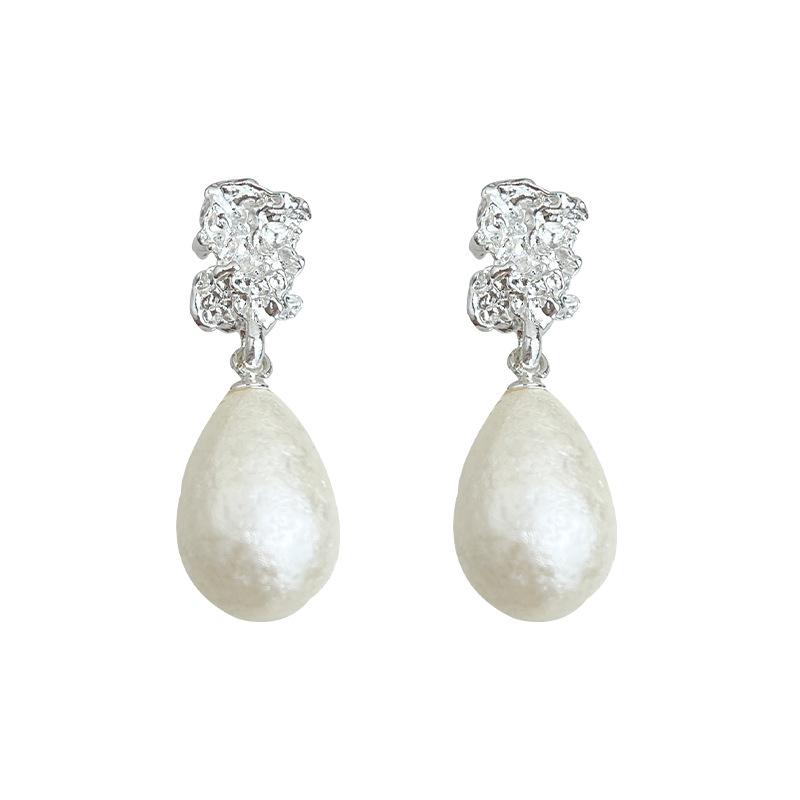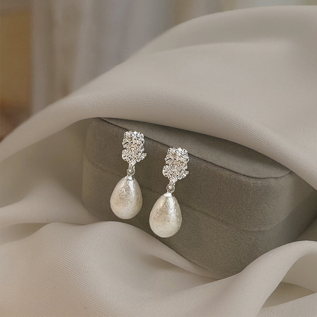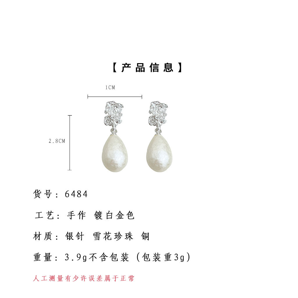 HELN124100321 法式肌理紋雪花珍珠水滴925銀針耳環氣質高級感 輕奢風耳飾女