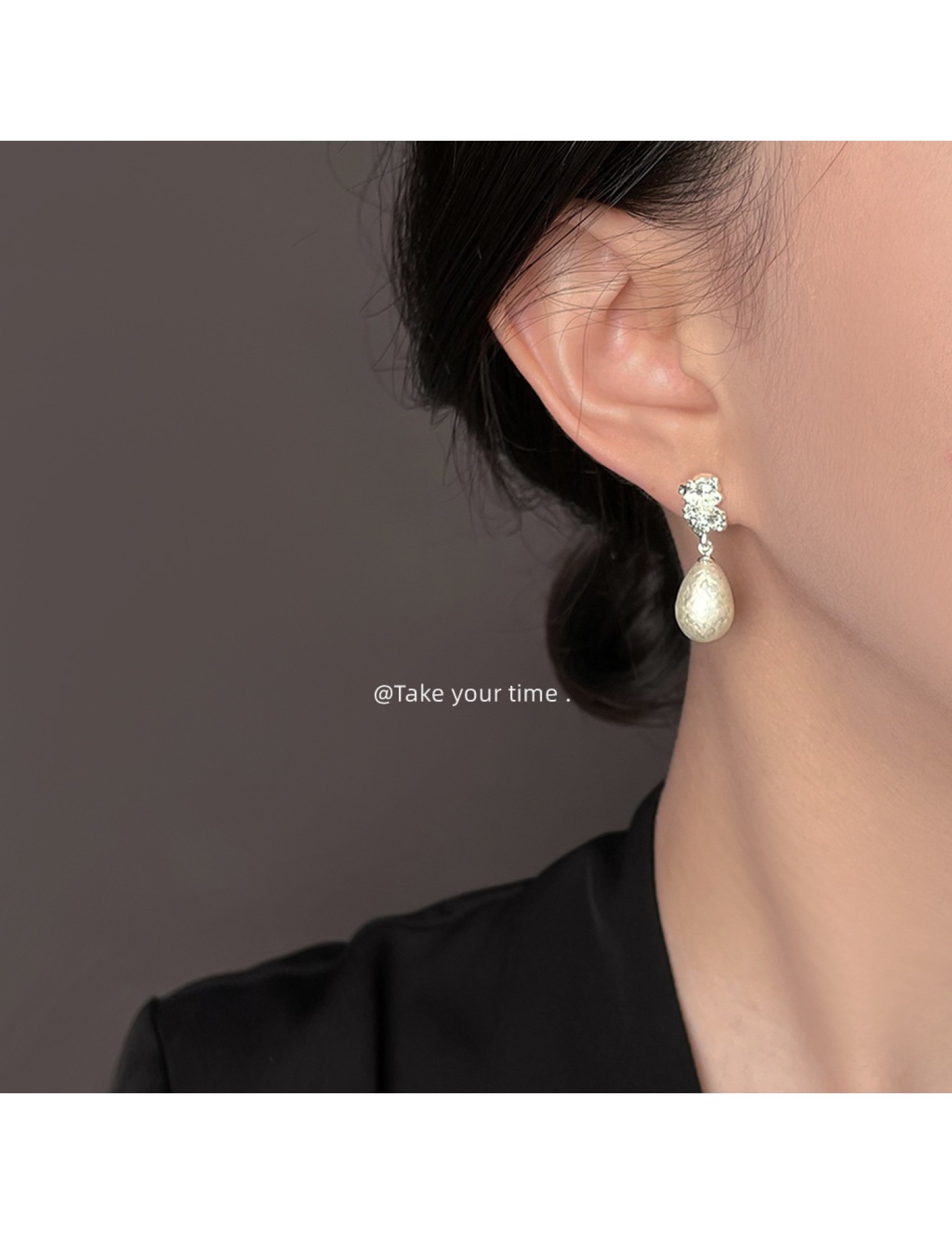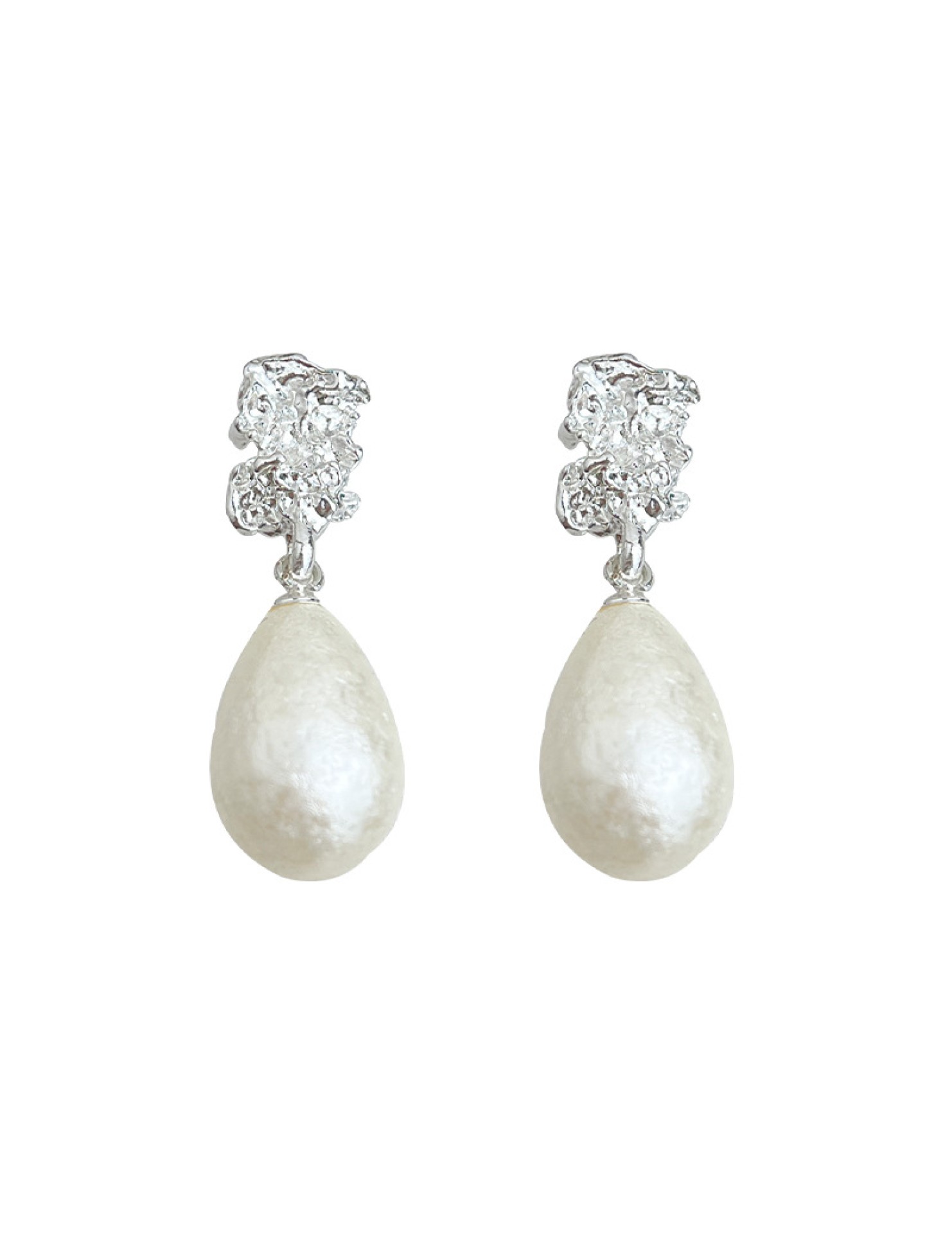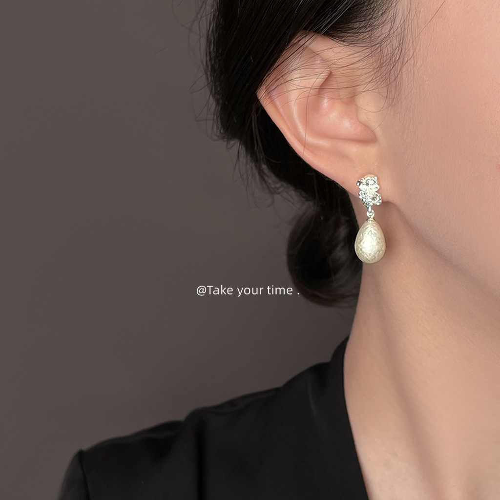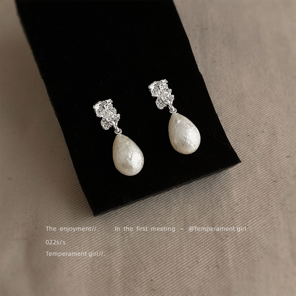 HELN124100321 法式肌理紋雪花珍珠水滴925銀針耳環氣質高級感 輕奢風耳飾女