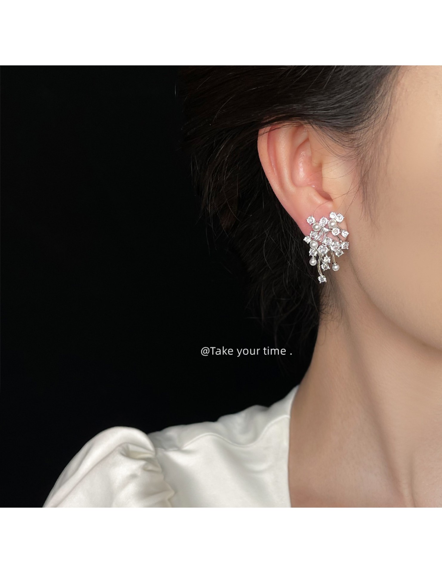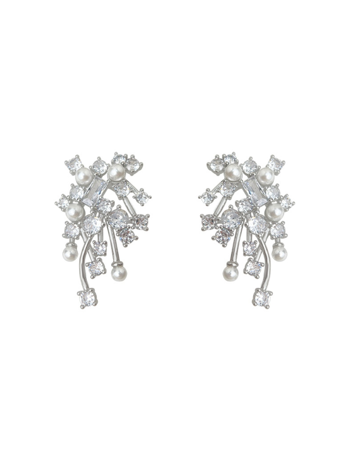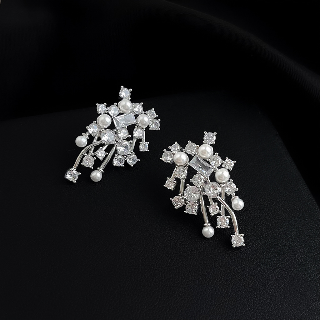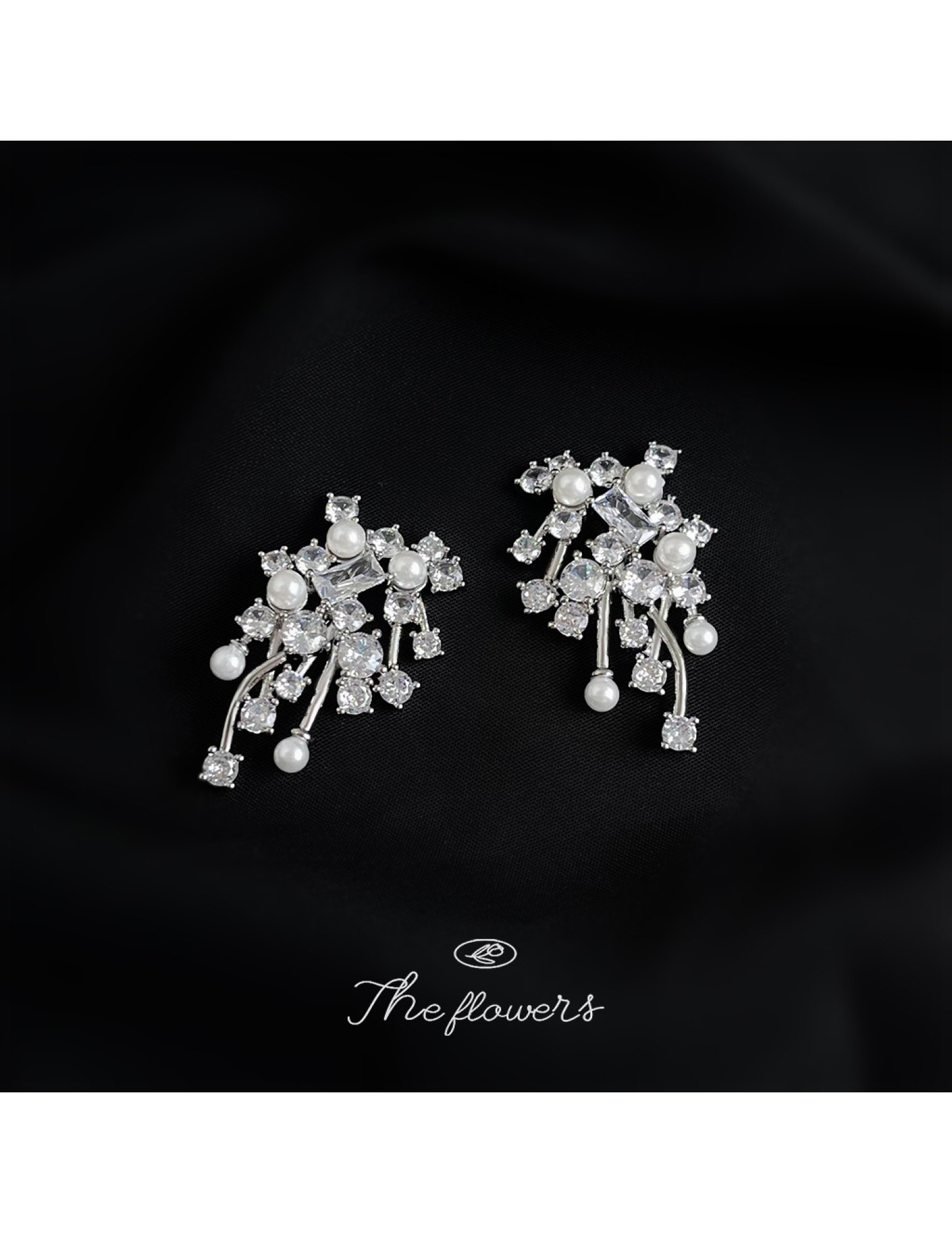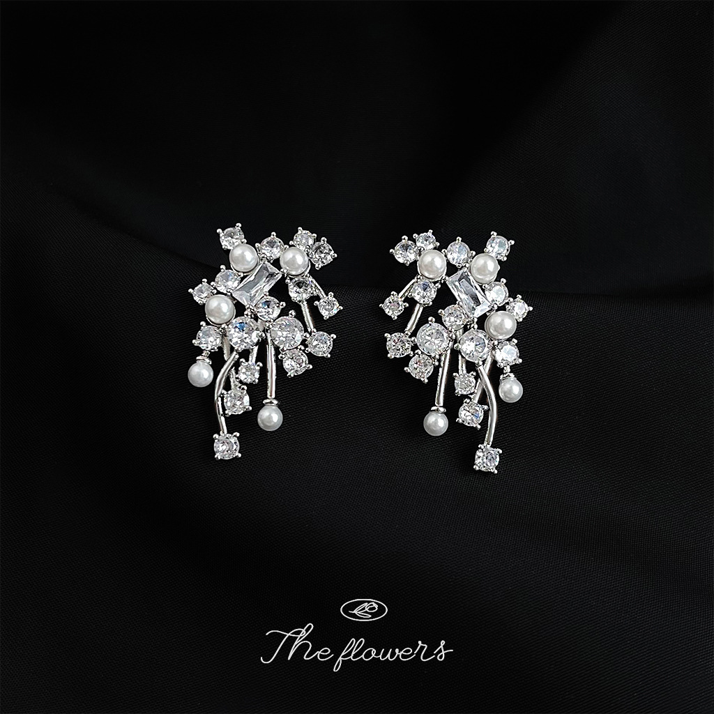HELN124100345 高級感碎花微鑲鋯石925銀針設計時尚通勤輕奢風耳飾 耳環