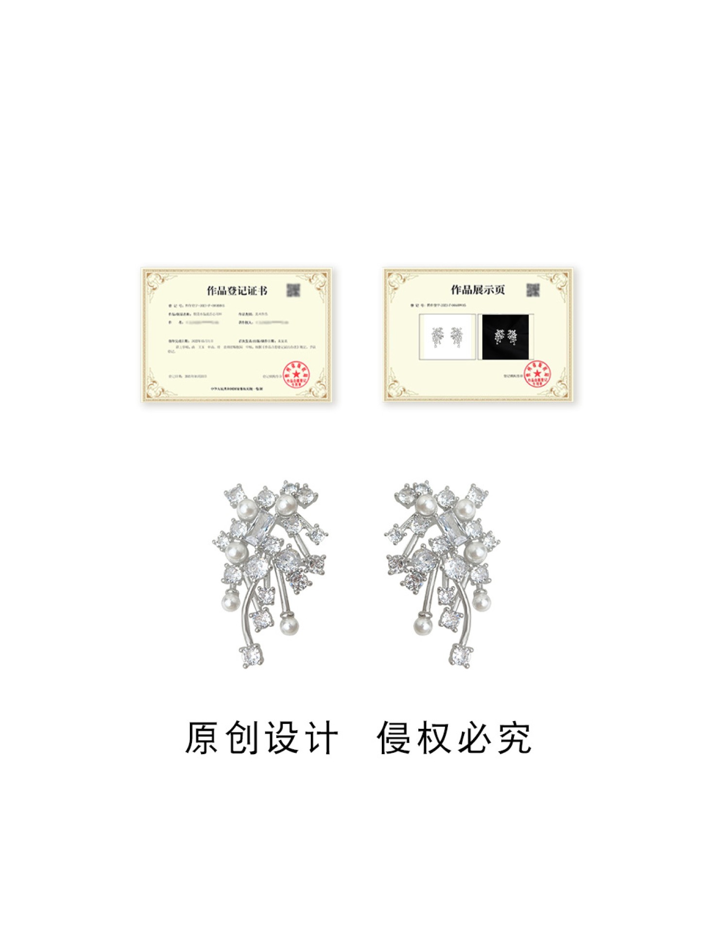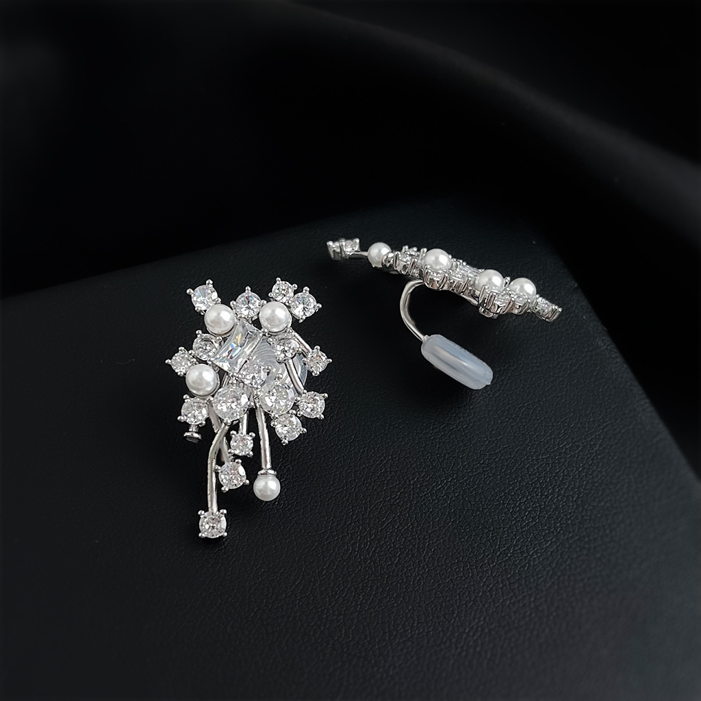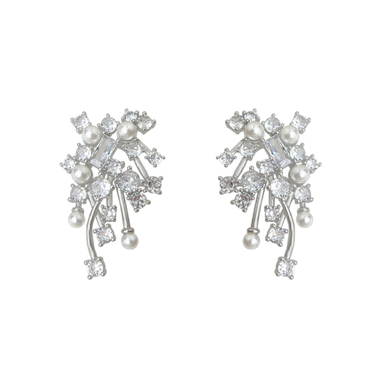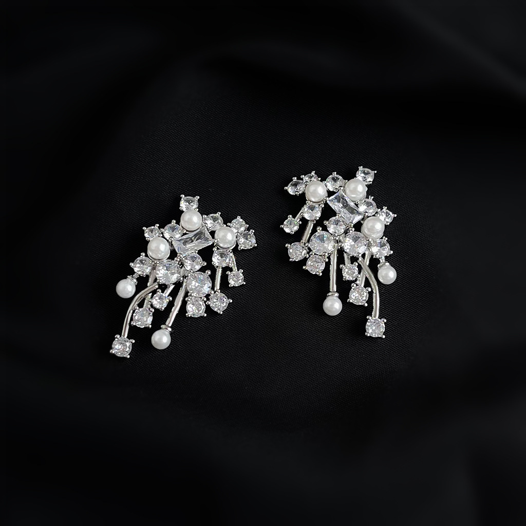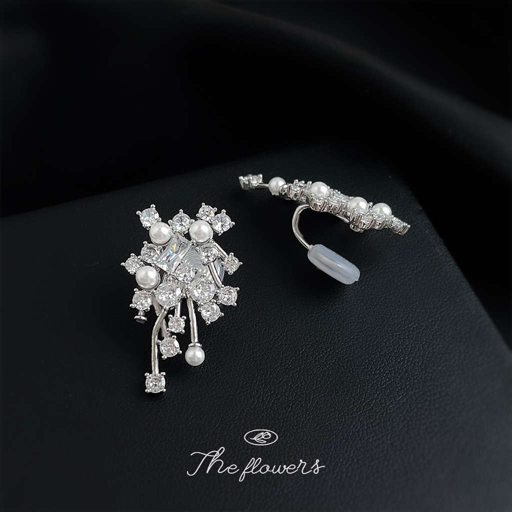 HELN124100345 高級感碎花微鑲鋯石925銀針設計時尚通勤輕奢風耳飾 耳環