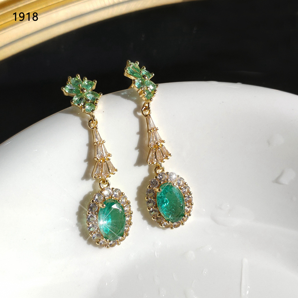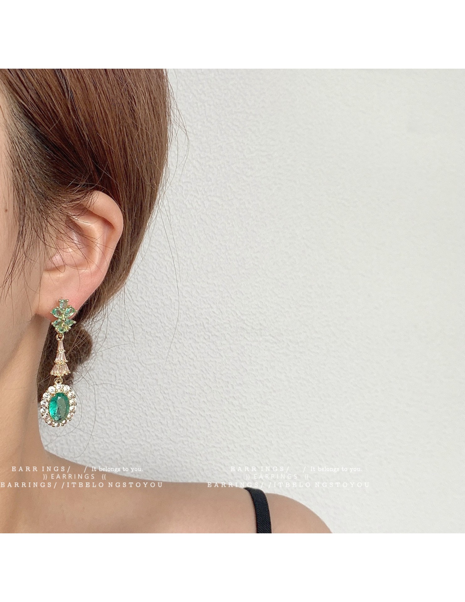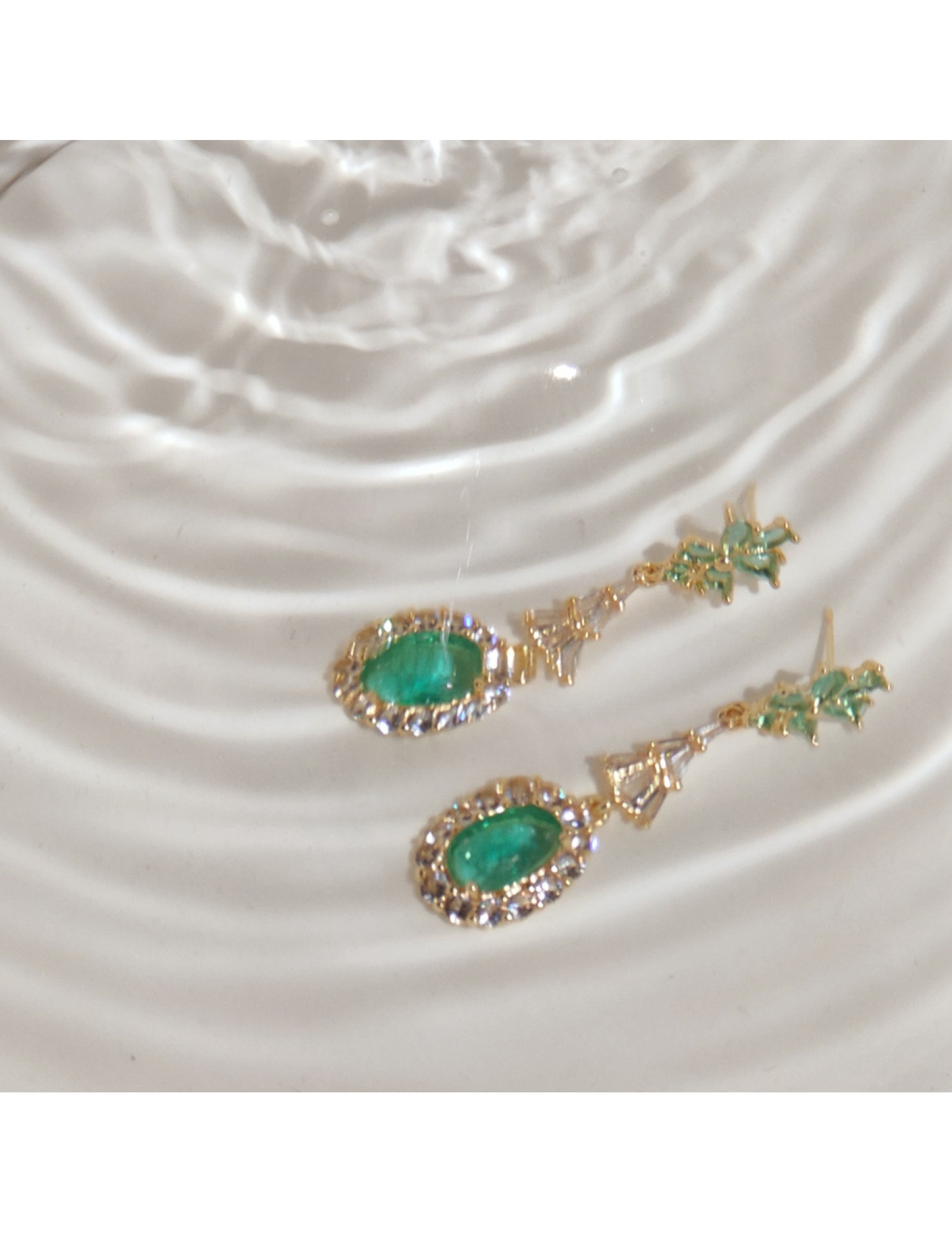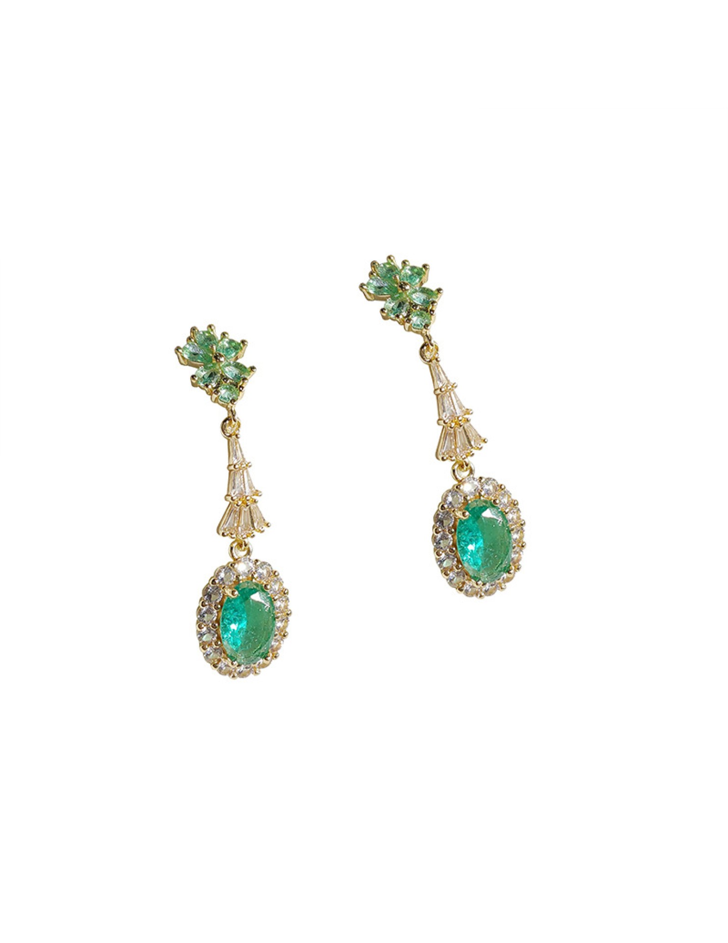 HELN124100352 925銀針鍍14K浪漫復古綠鋯石閃溫柔耳環氣質宮廷耳飾