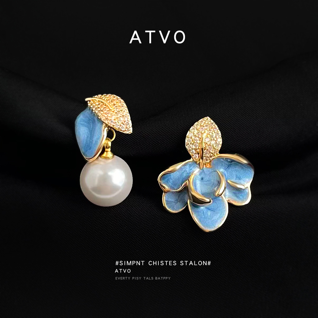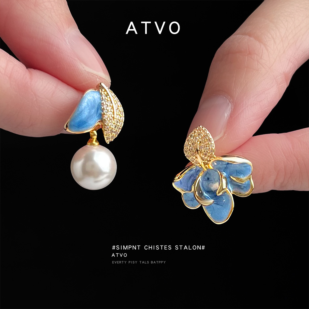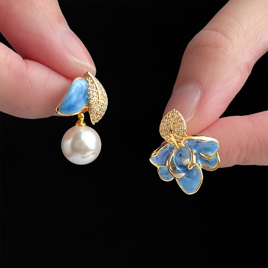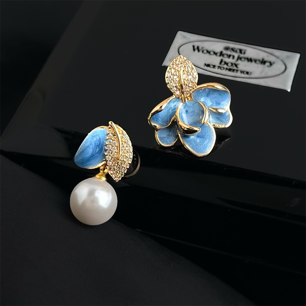 HELN124100373 琺瑯滴釉不對稱設計微鑲鋯石925銀針樹葉時尚高級感耳飾 耳環