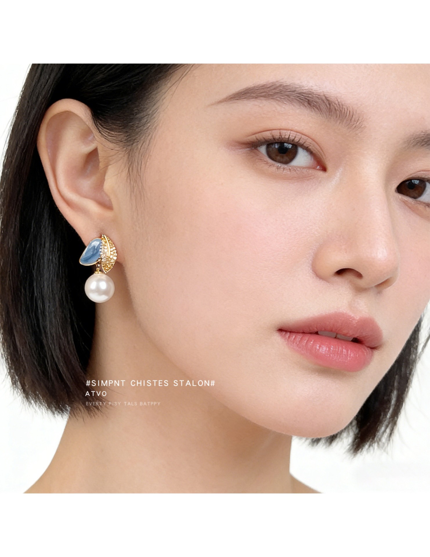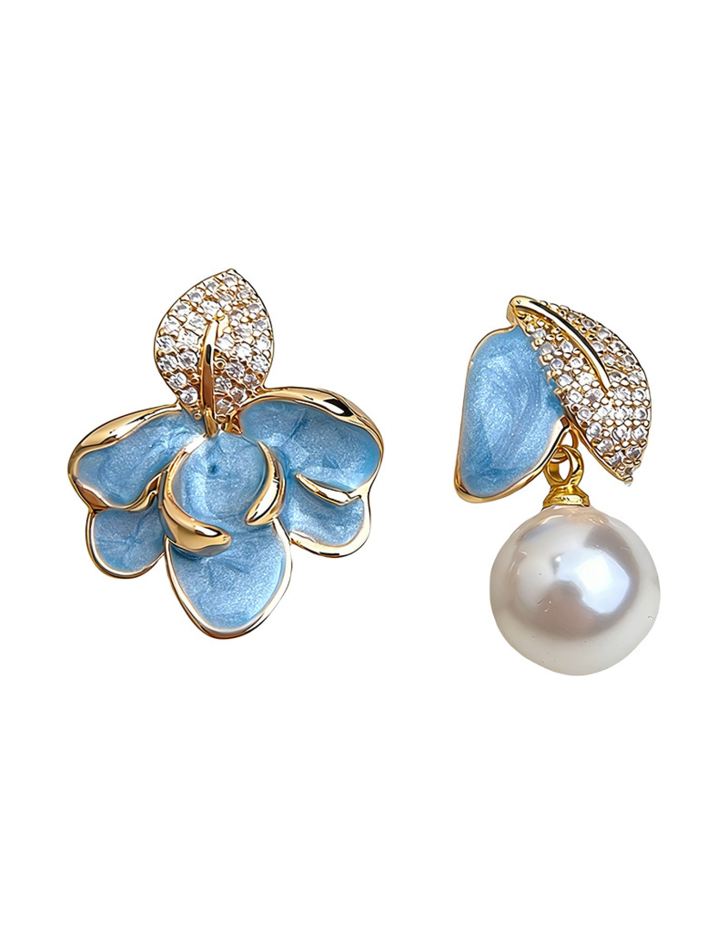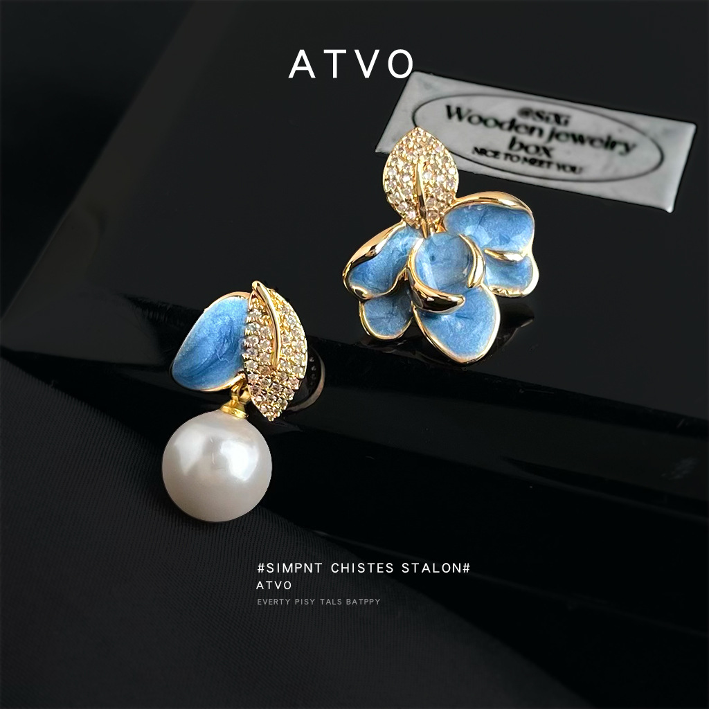HELN124100373 琺瑯滴釉不對稱設計微鑲鋯石925銀針樹葉時尚高級感耳飾 耳環
