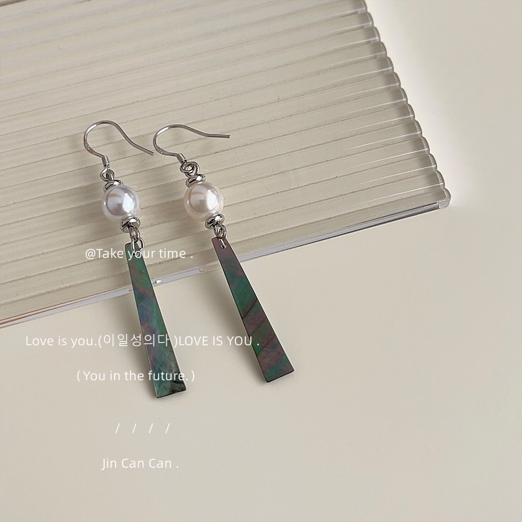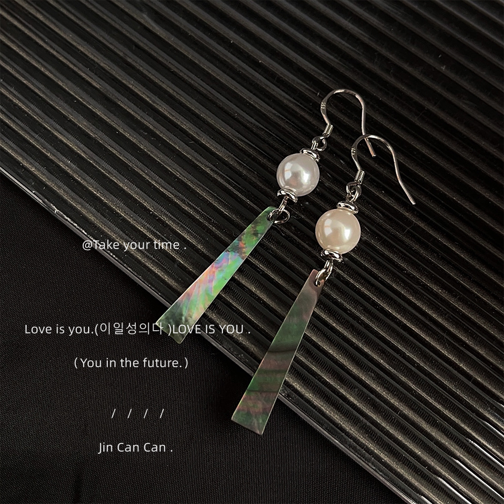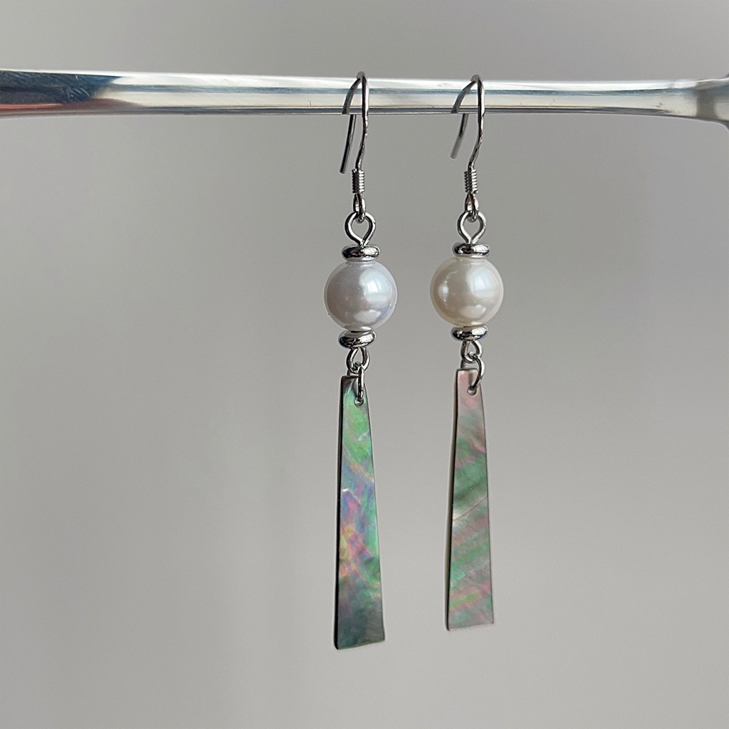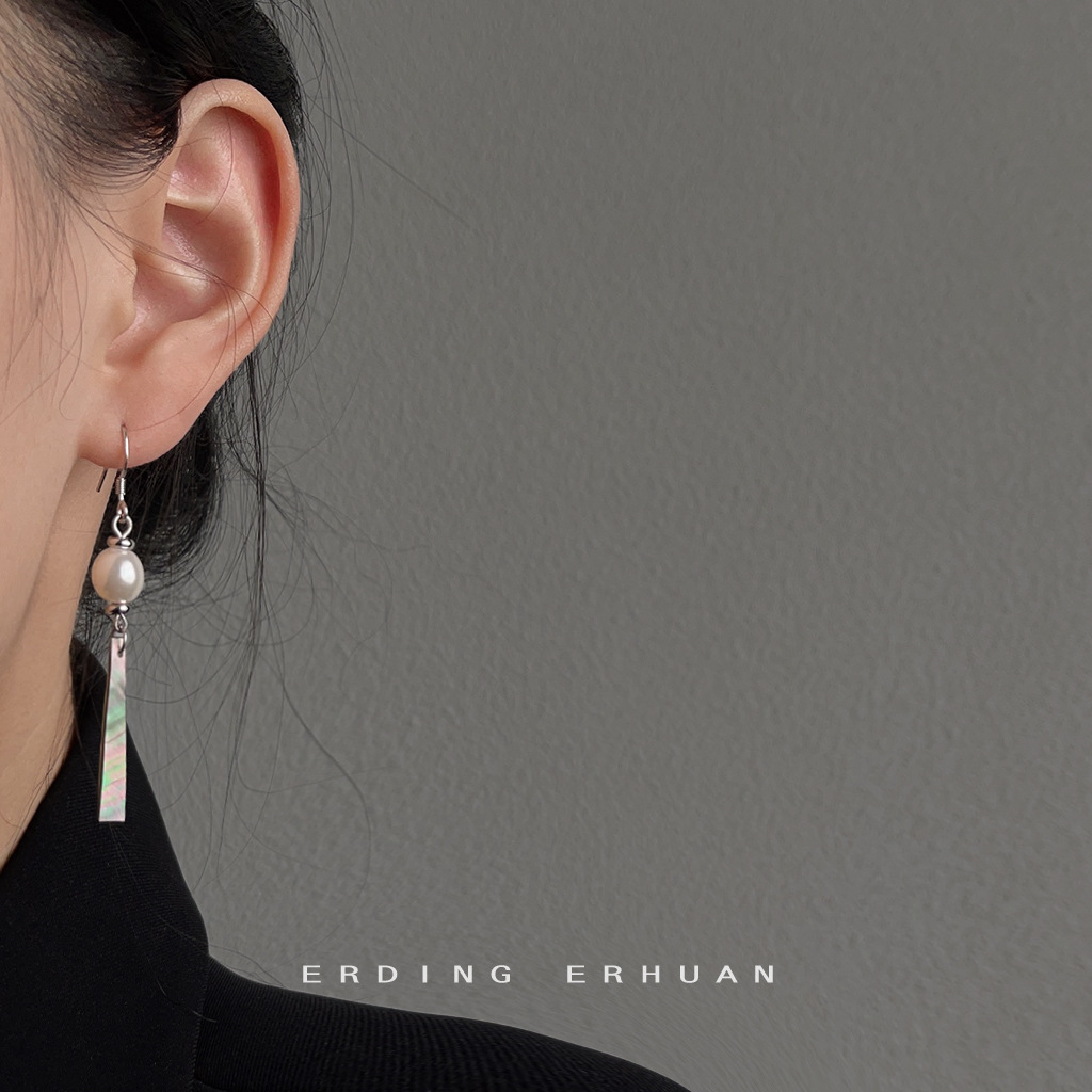 HELN124100375 新中式鮑魚貝手作設計感925銀針耳飾新款貝殼耳環2024年文藝飾品