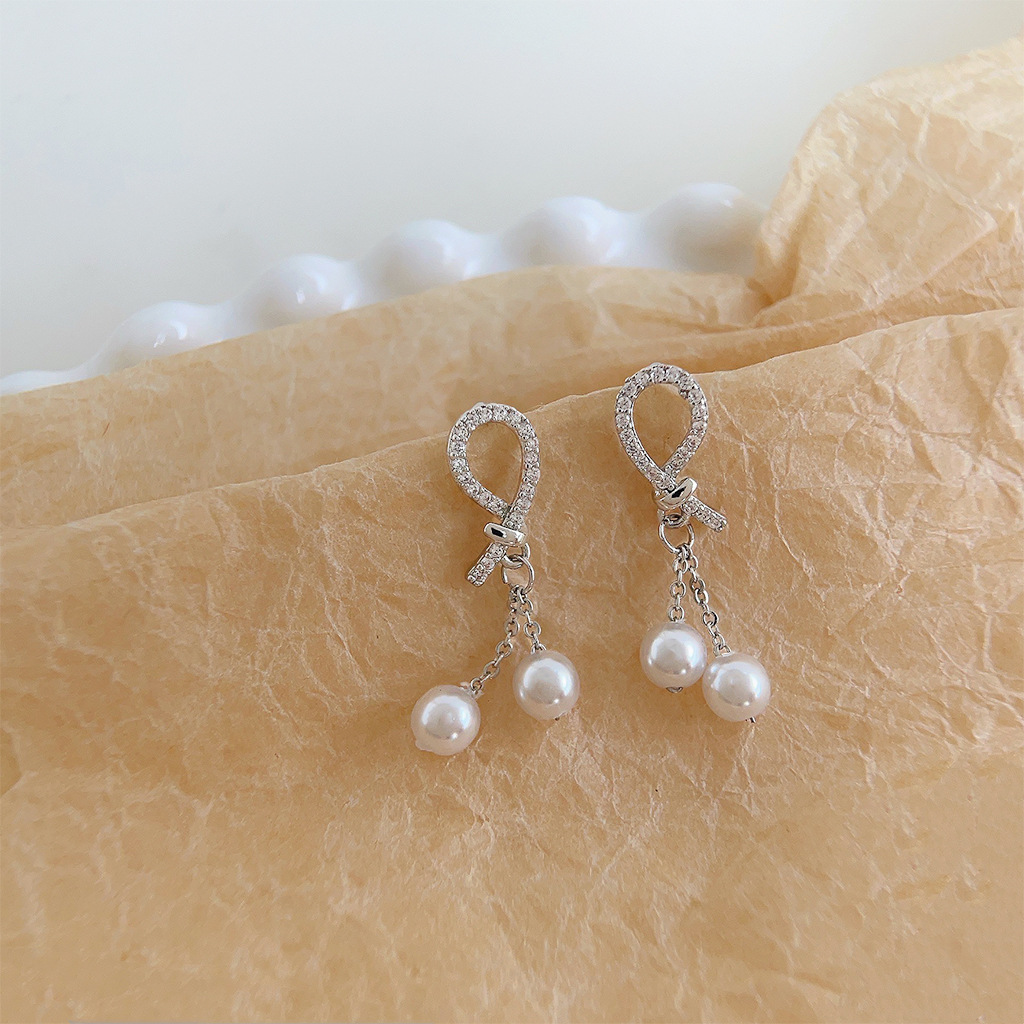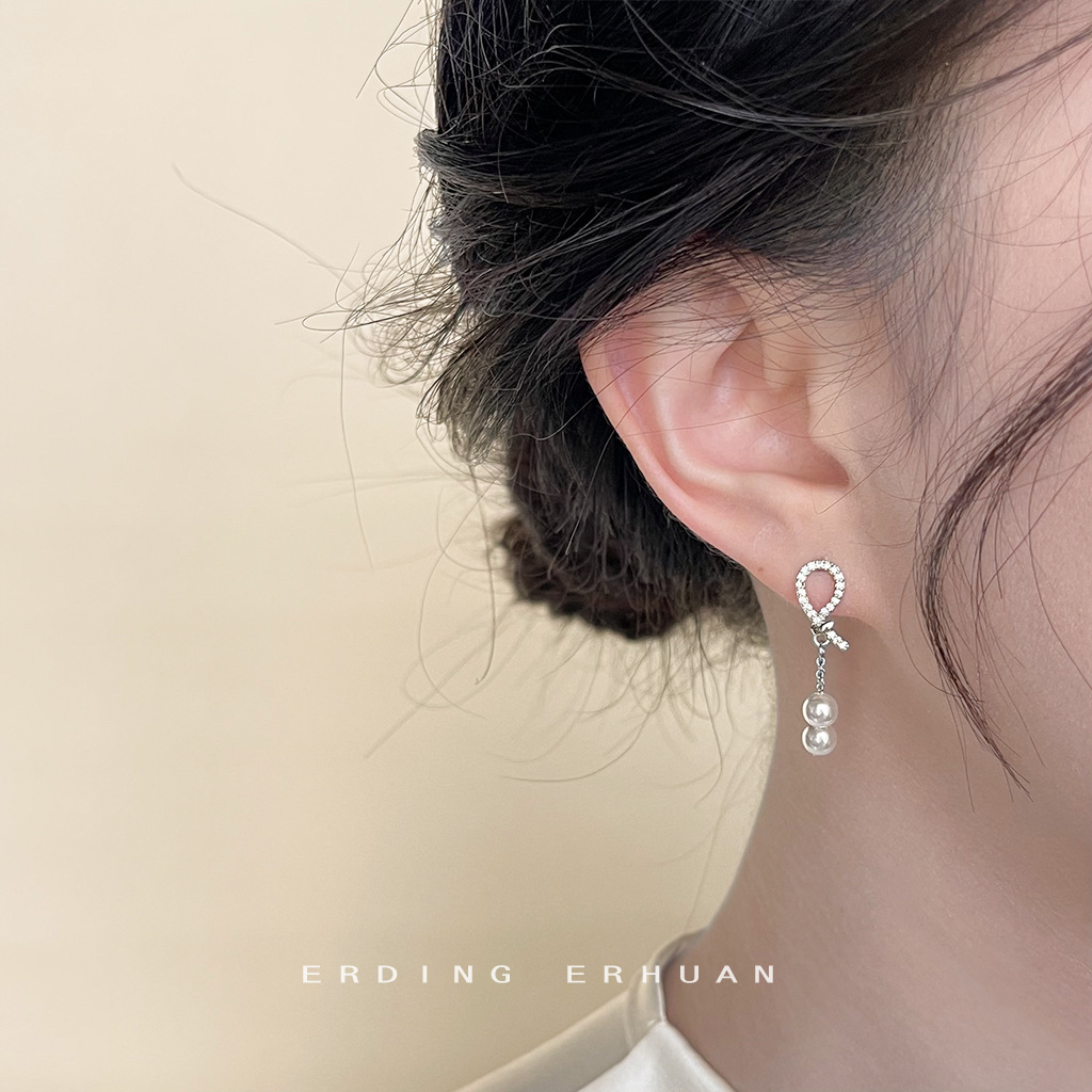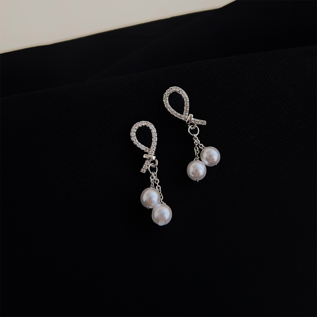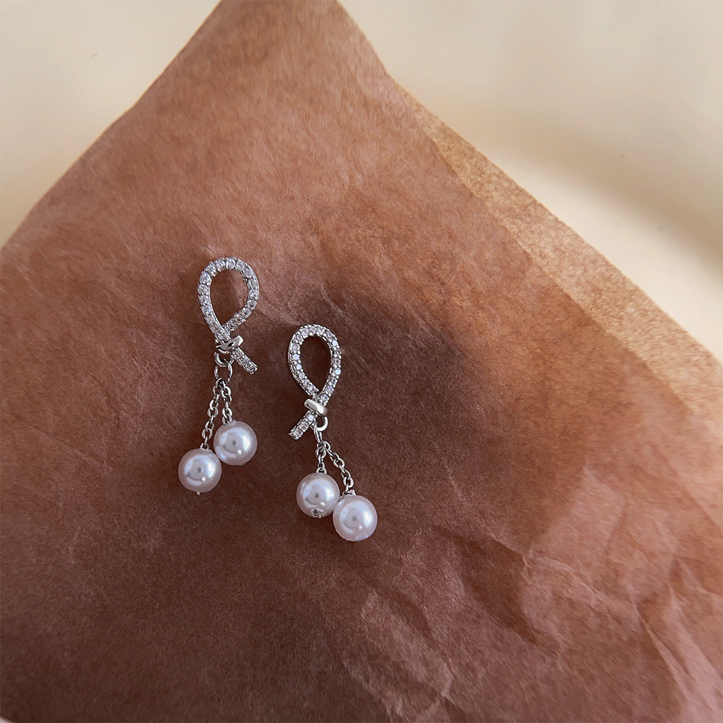 HELN124100382 微鑲鋯石輕奢風簡約日常通勤款個性設計繩結耳飾氣質時尚耳環