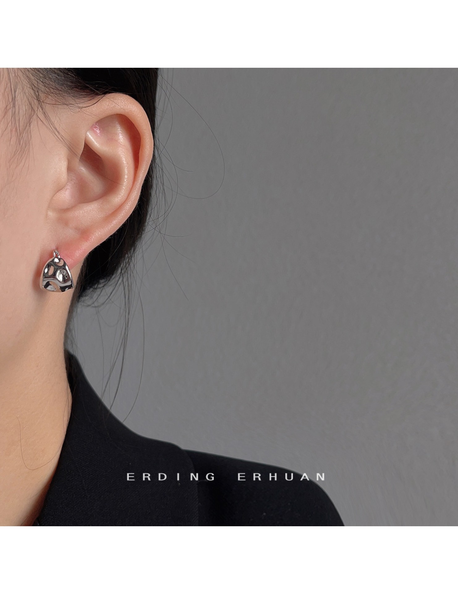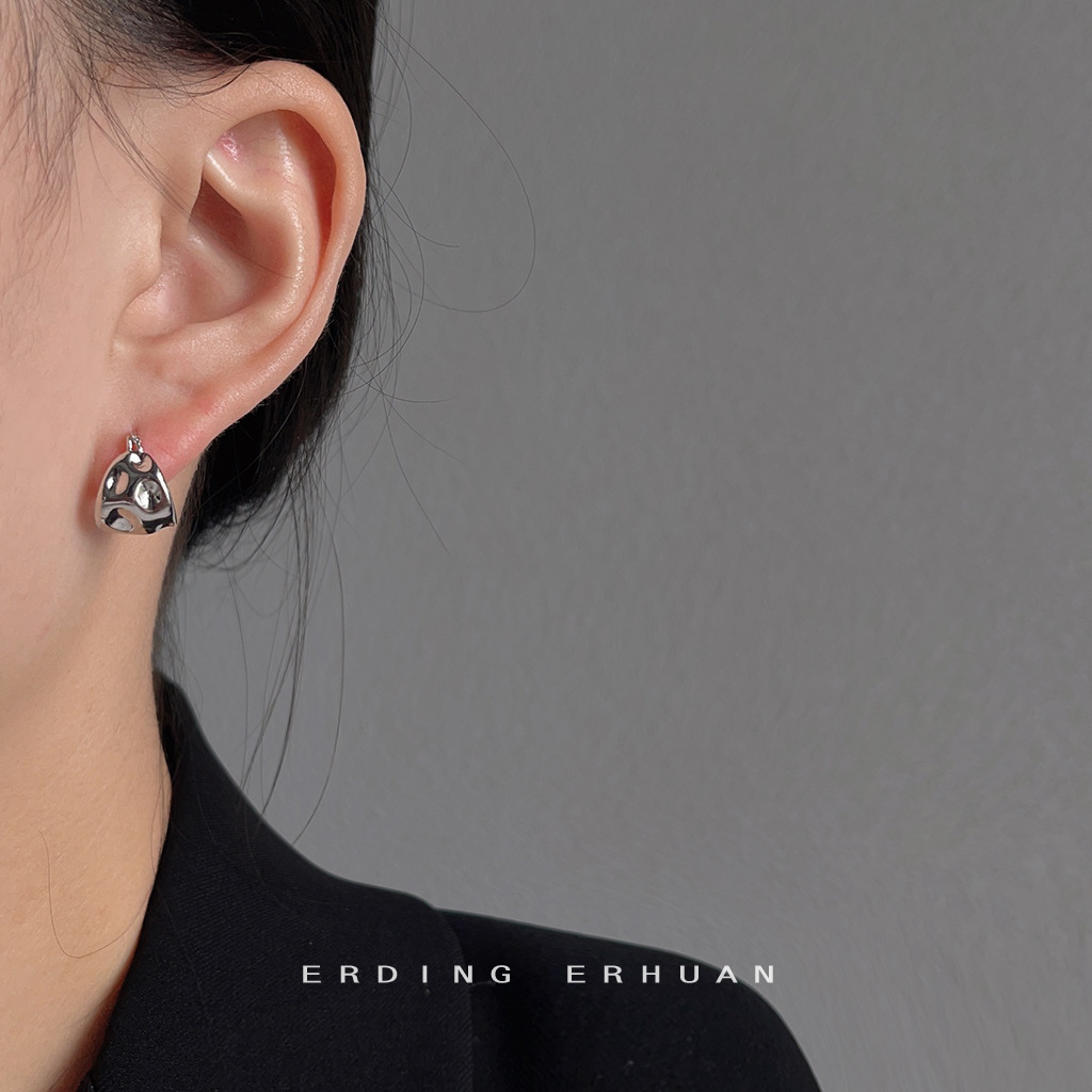 HELN124100233 甜酷風不規則凹凸面幾何耳扣簡約氣質百搭個性飾品女