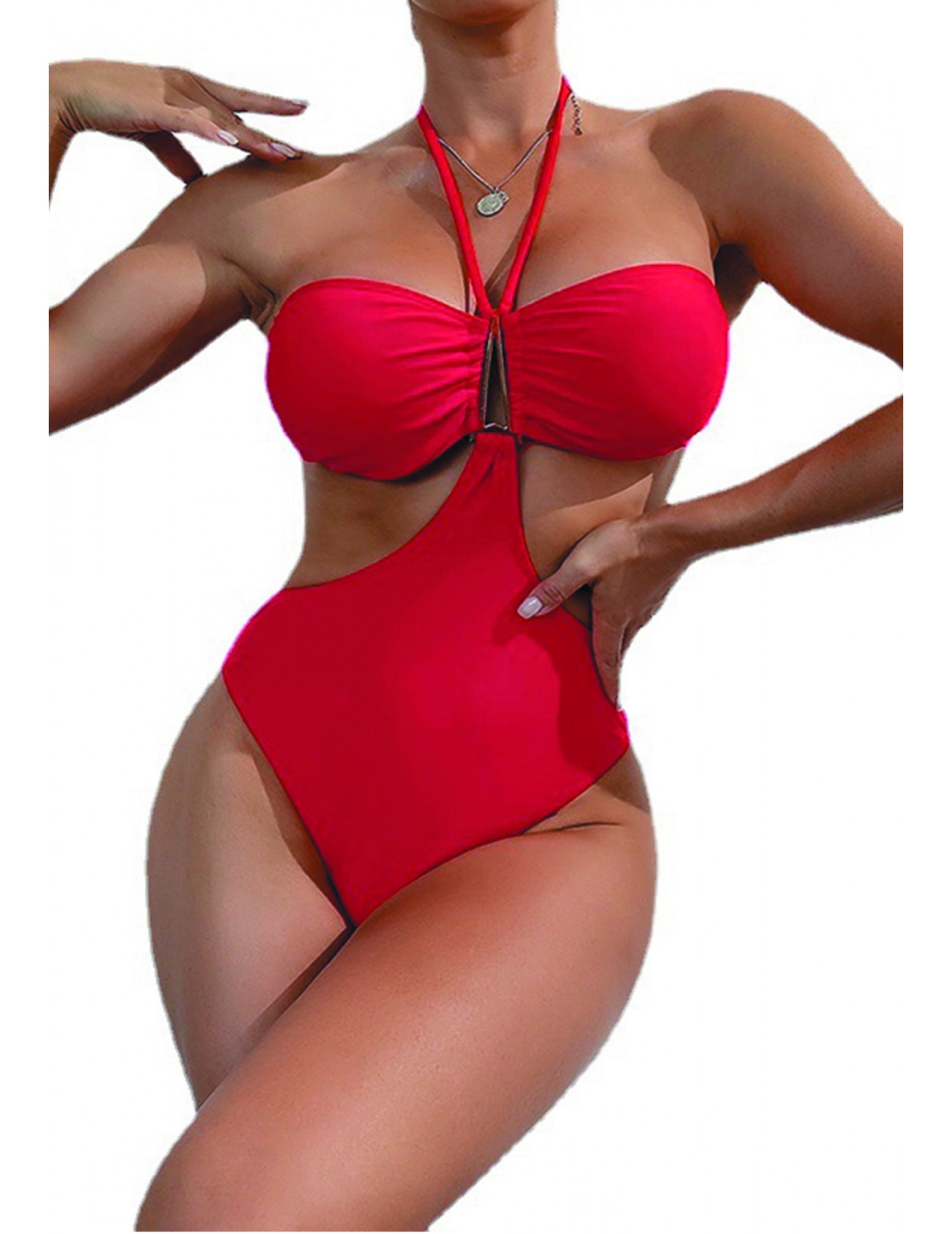 LYM3050歐洲時尚女士連體泳衣紅色