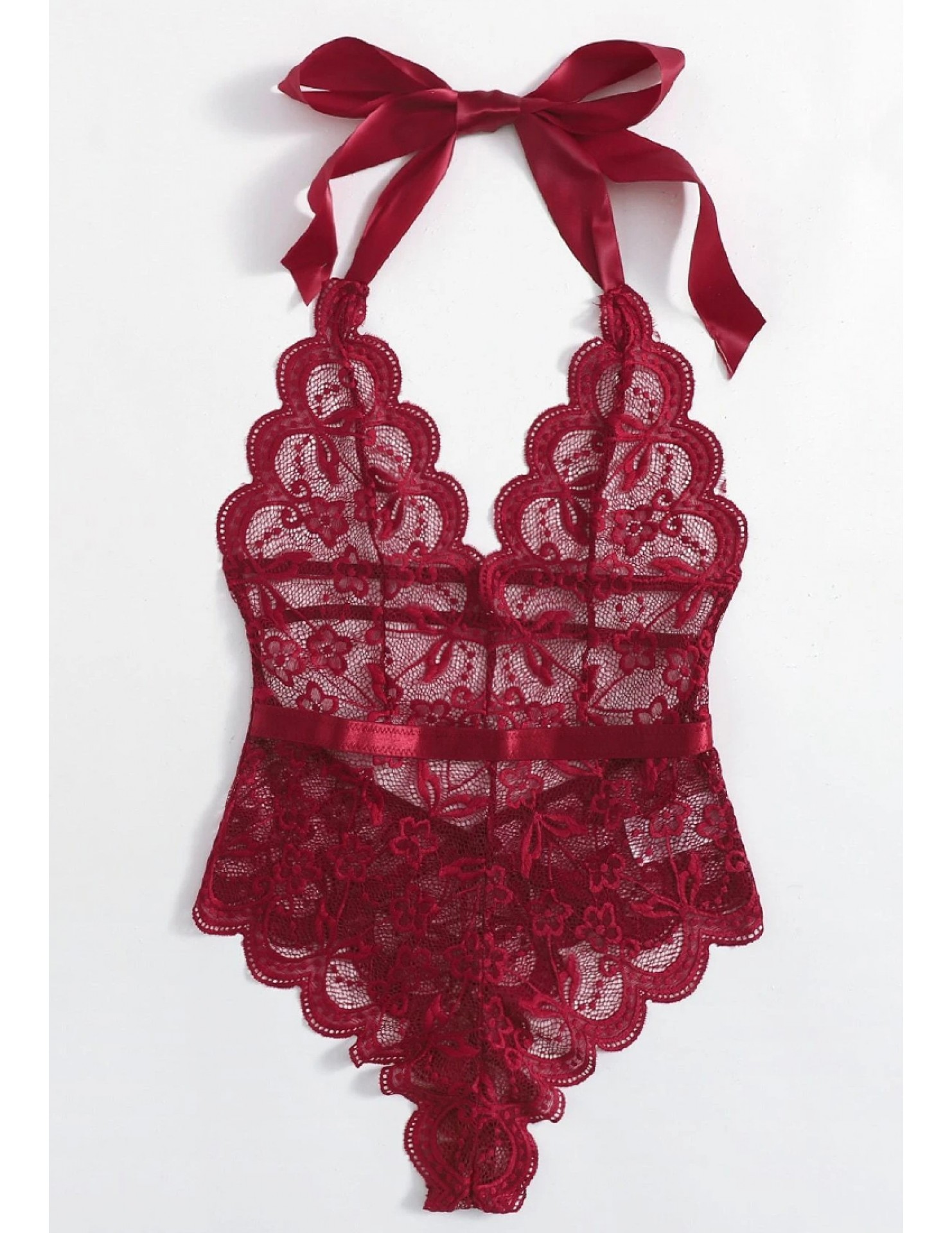 LDB4186-女士一件式性感蕾絲連體衣睡衣 (紅色)