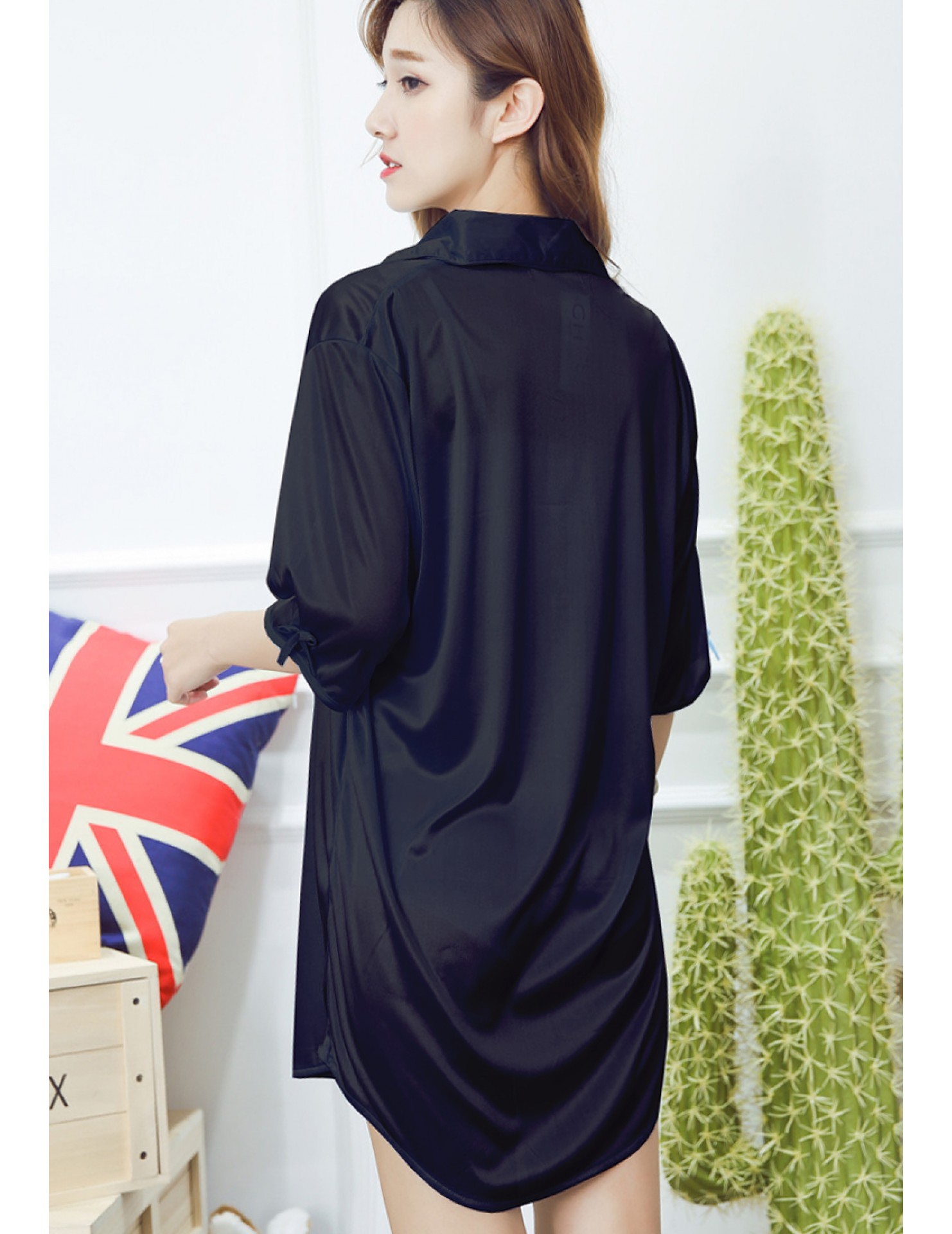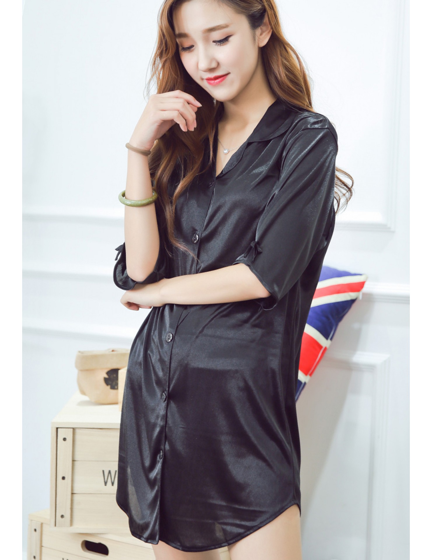 SWW9003-女士一件式居家睡裙 (黑色)