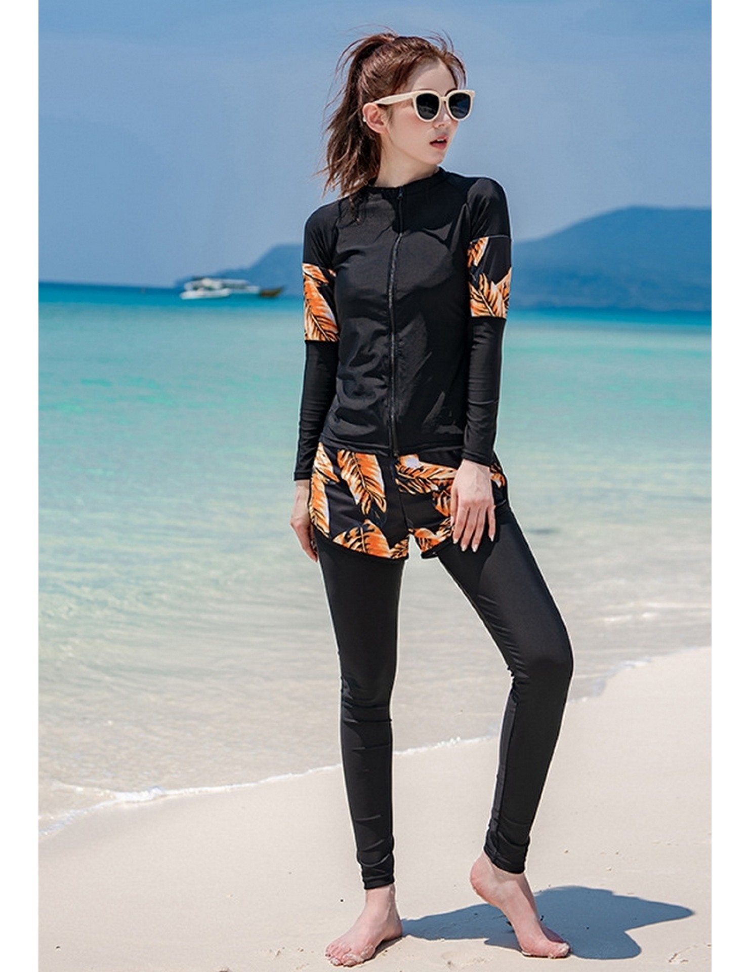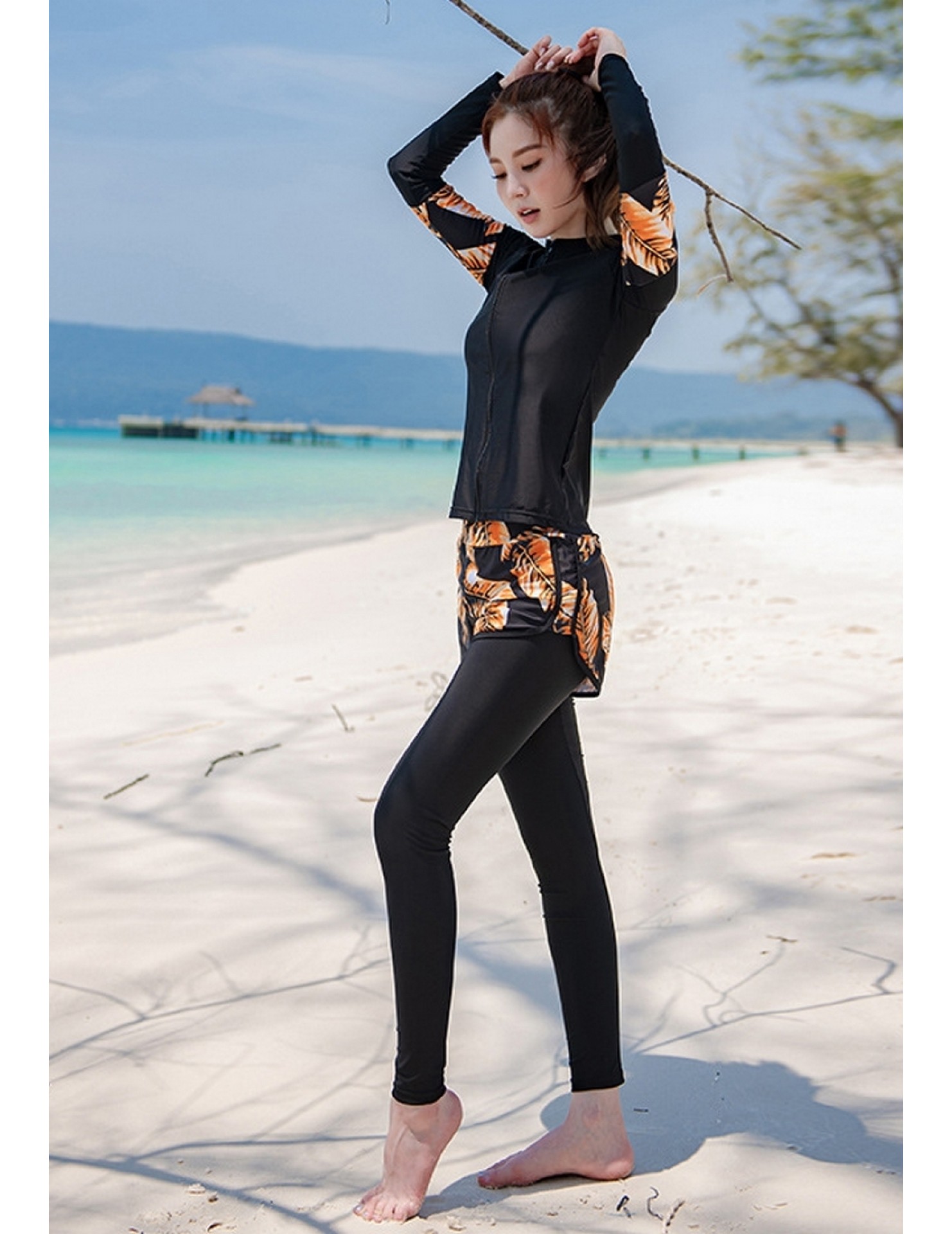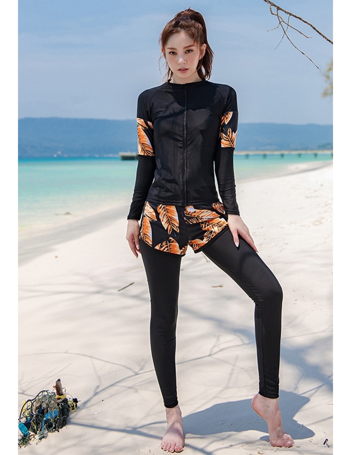 LNN5058 韓國女士長袖防曬泳衣 黑色