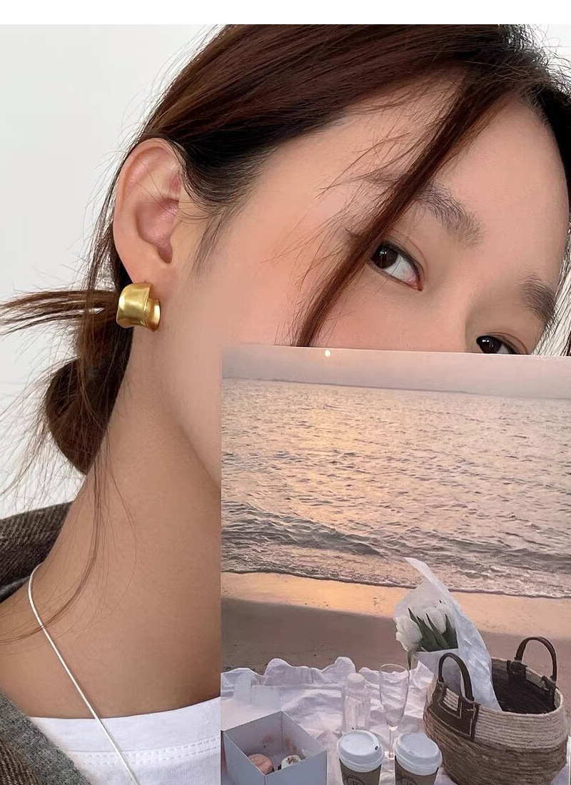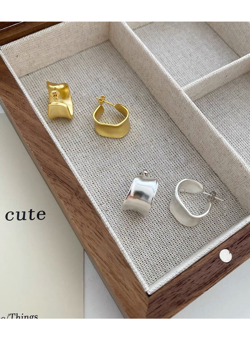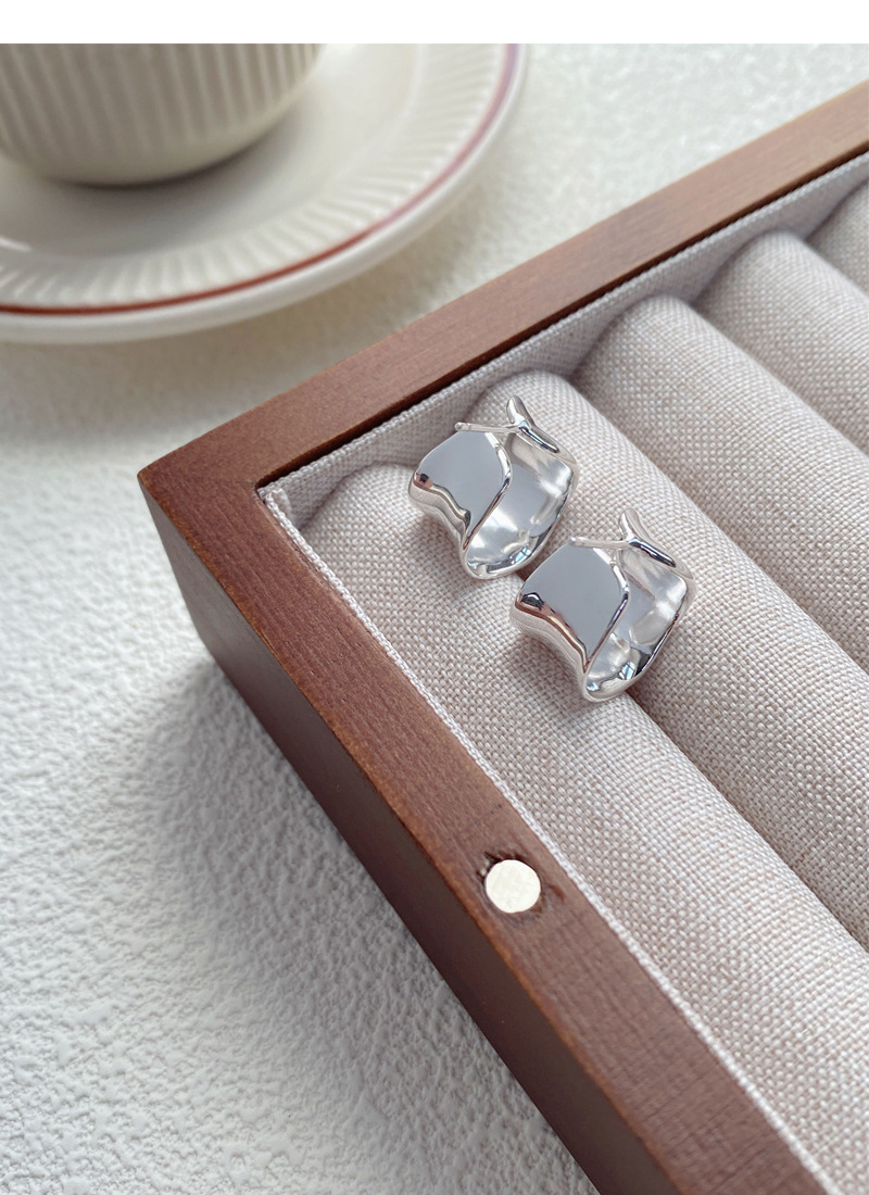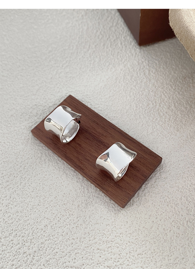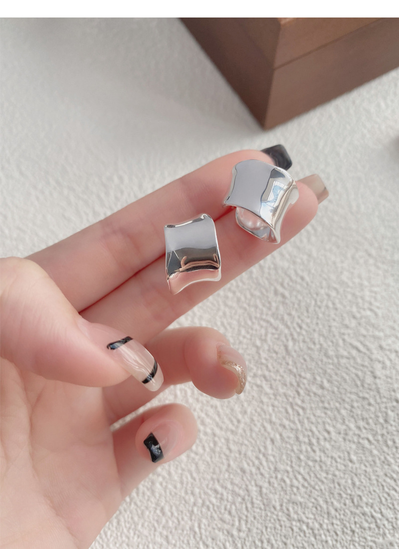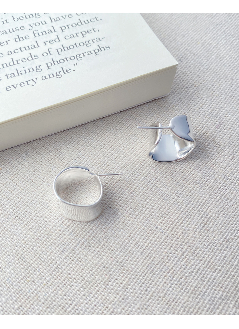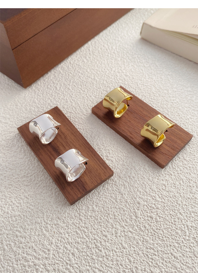 S925純銀重工不規則寬面弧形耳釘女生簡約輕奢耳環小眾日韓潮耳飾