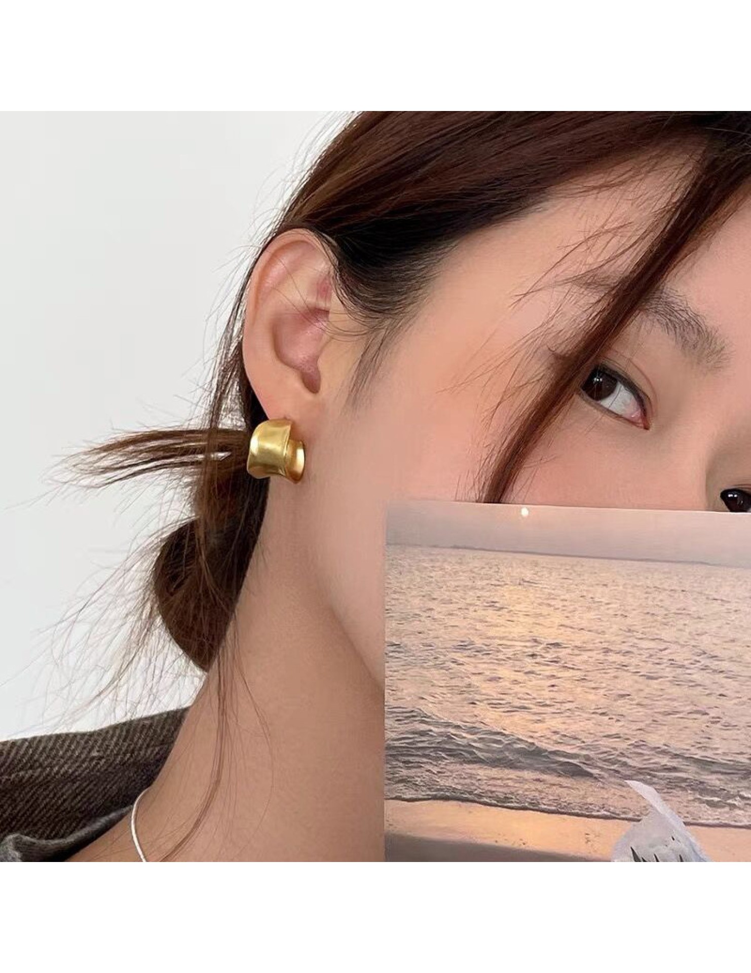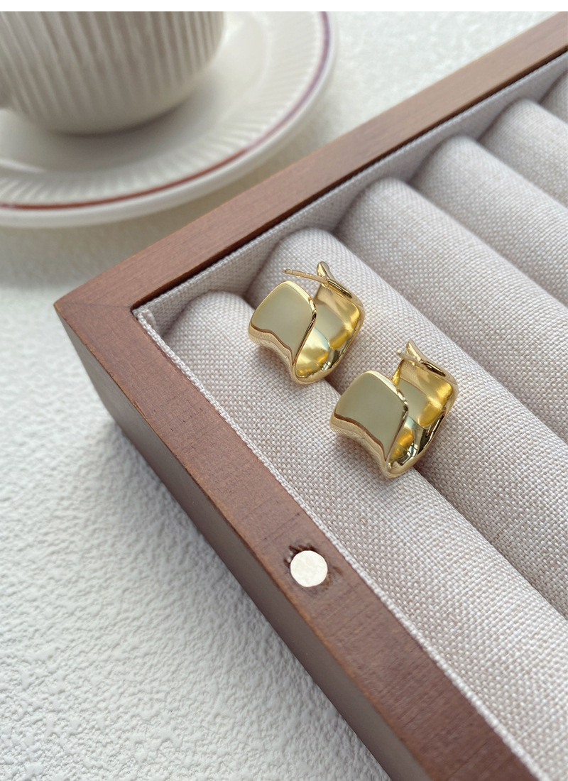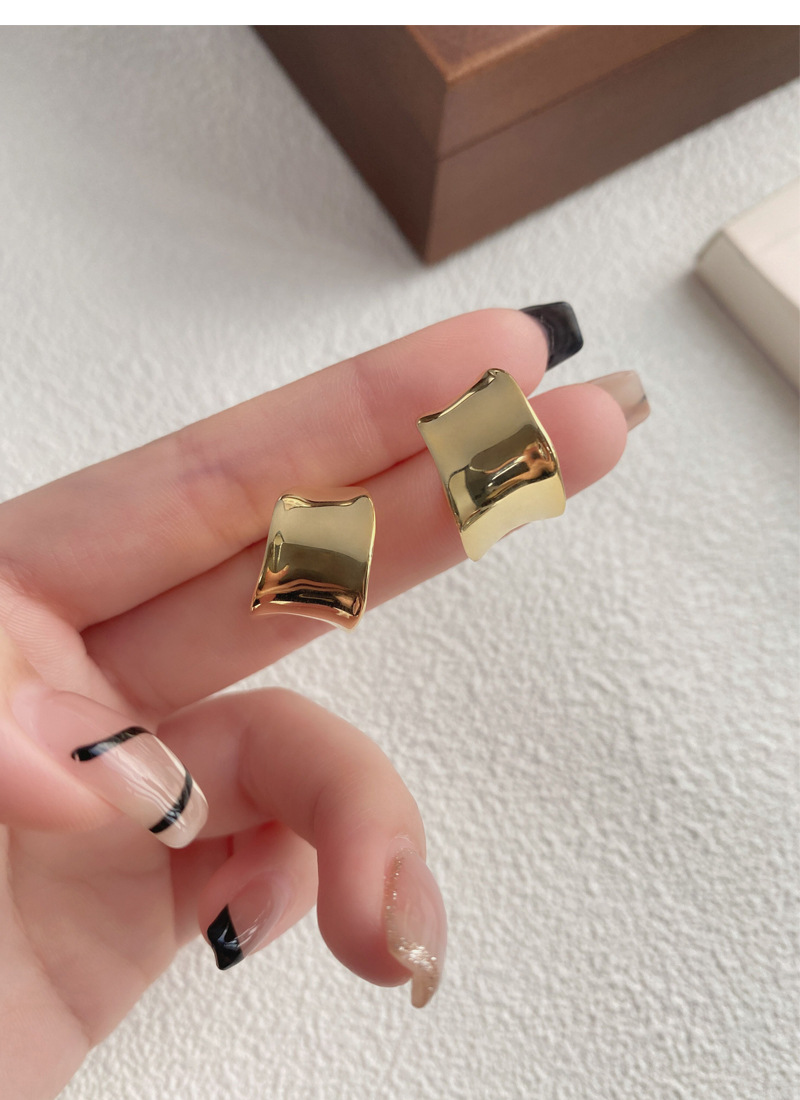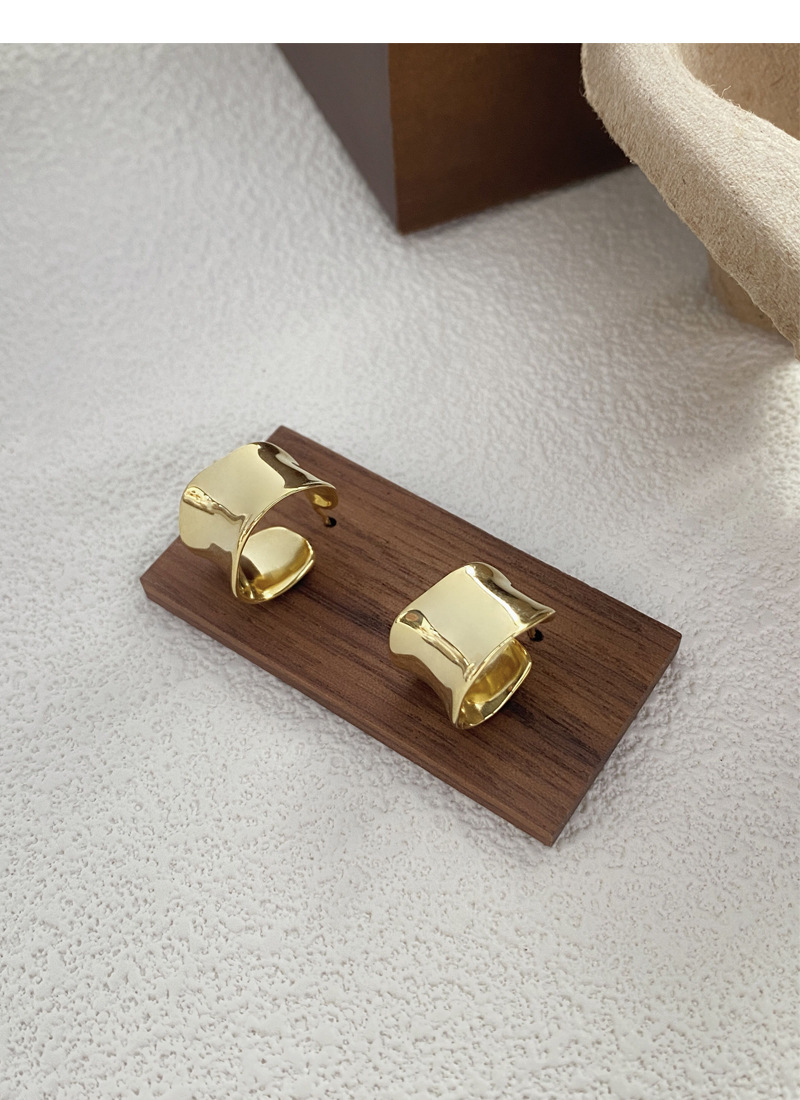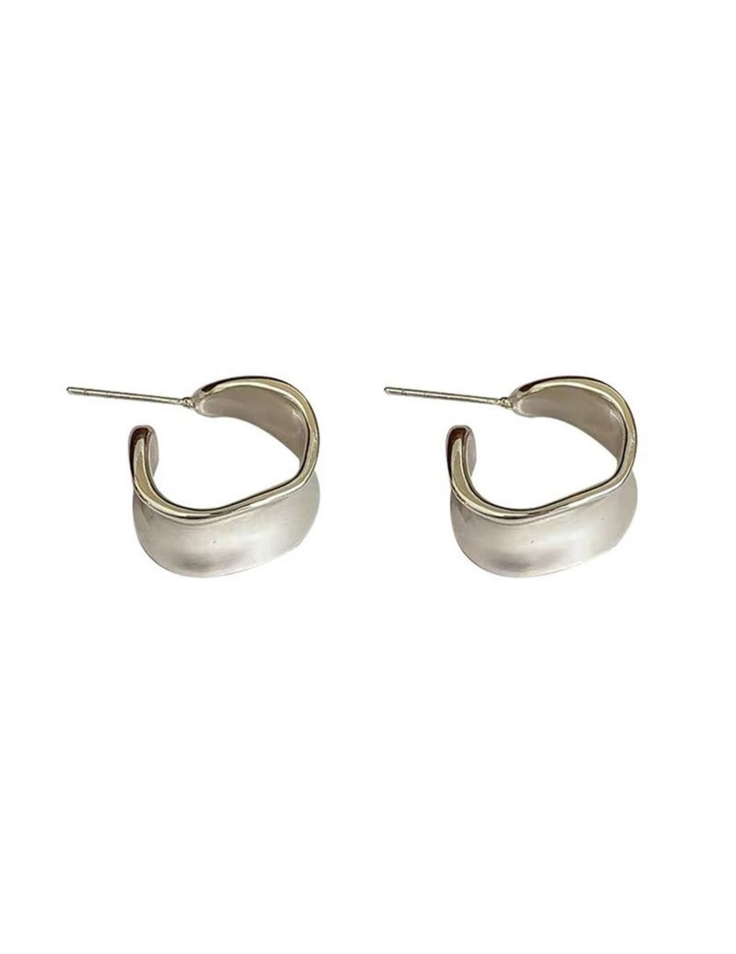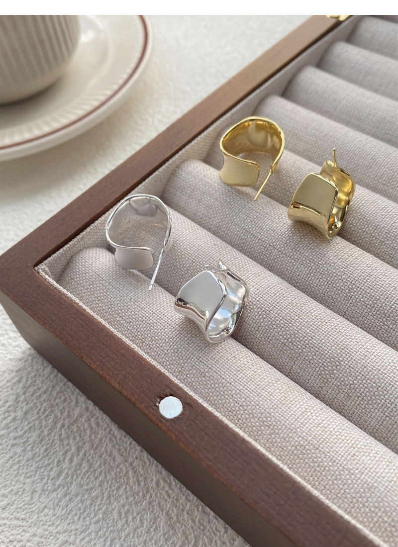 S925純銀重工不規則寬面弧形耳釘女生簡約輕奢耳環小眾日韓潮耳飾