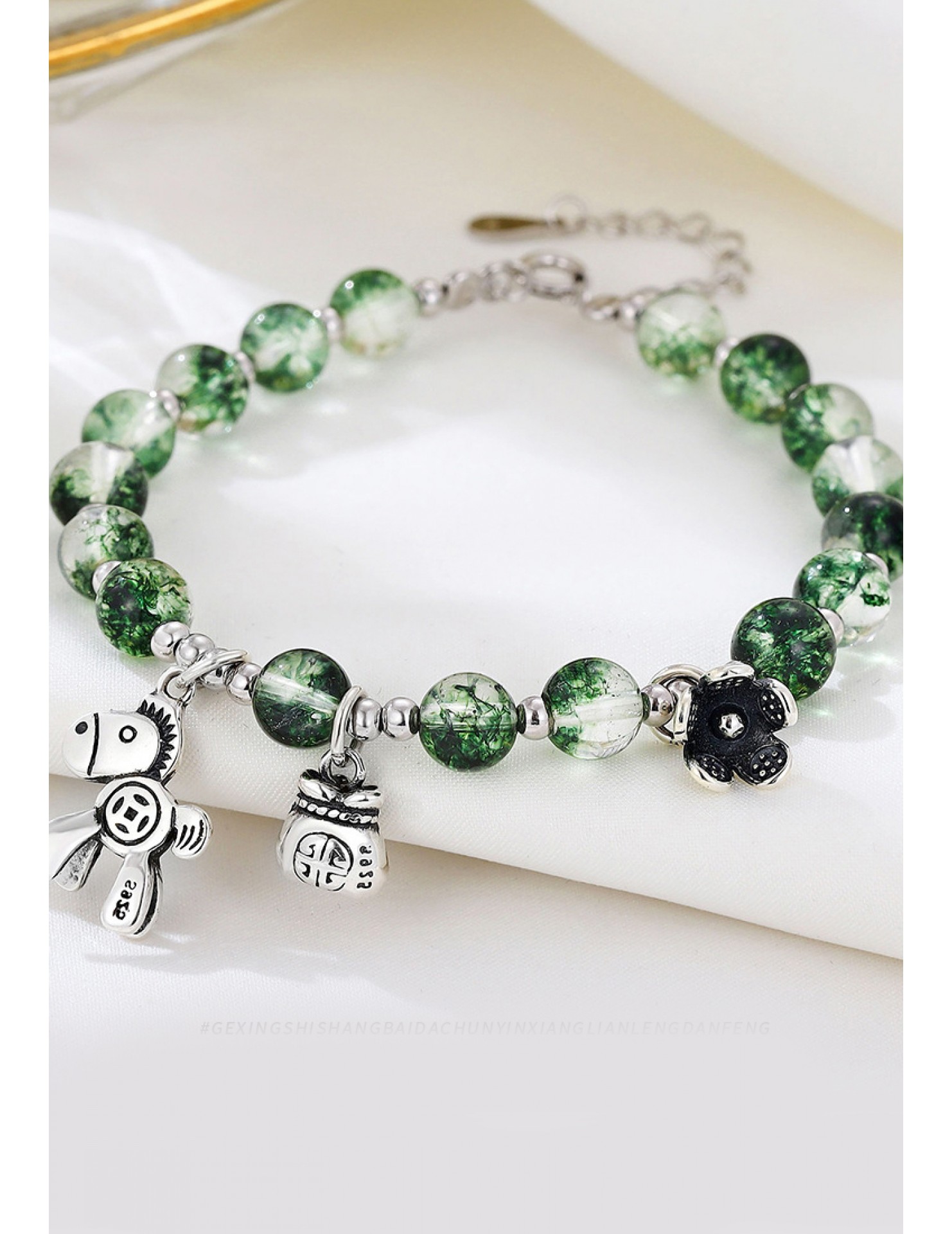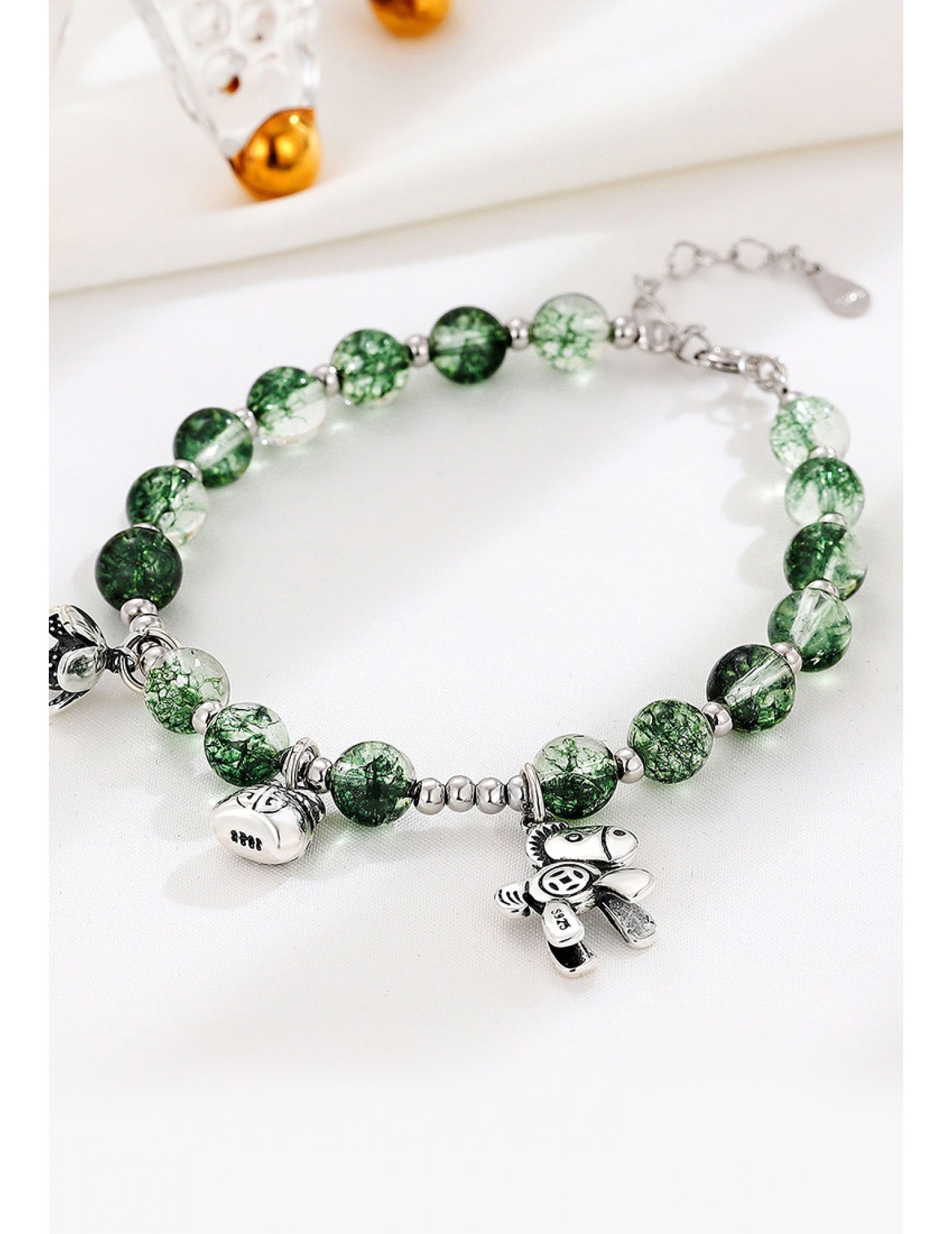 LDR2027 LYCKA S925銀綠幽靈水晶圓珠手鏈