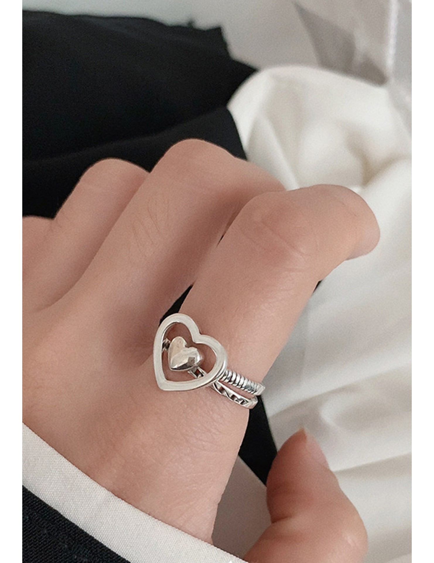 LDR2020-2 S925銀復古愛心開口戒指