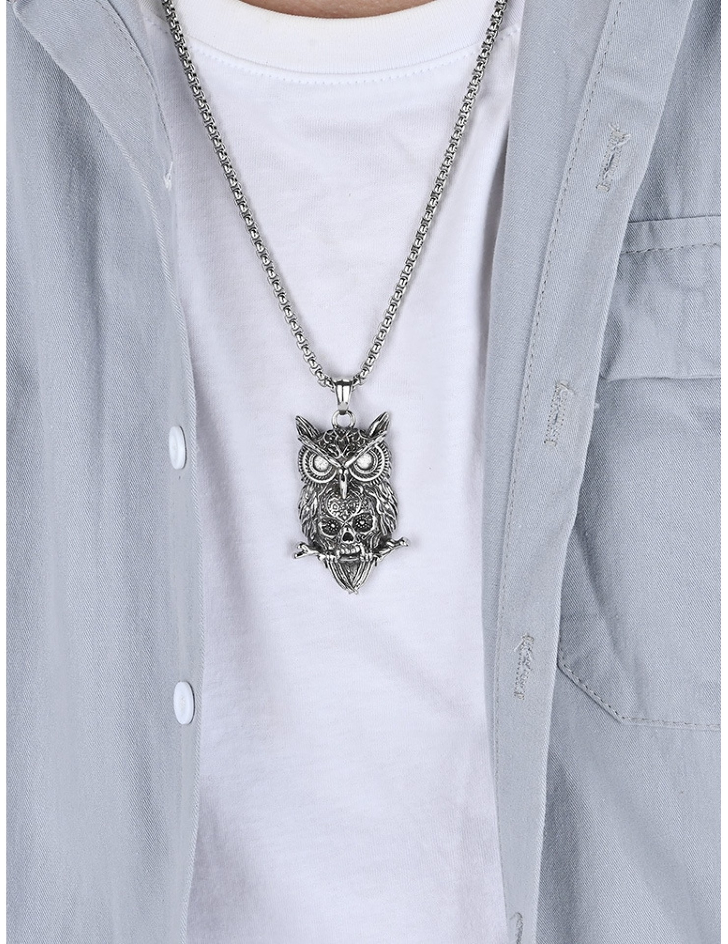 JSC3119 316L鈦鋼貓頭鷹骷髏頭項鏈