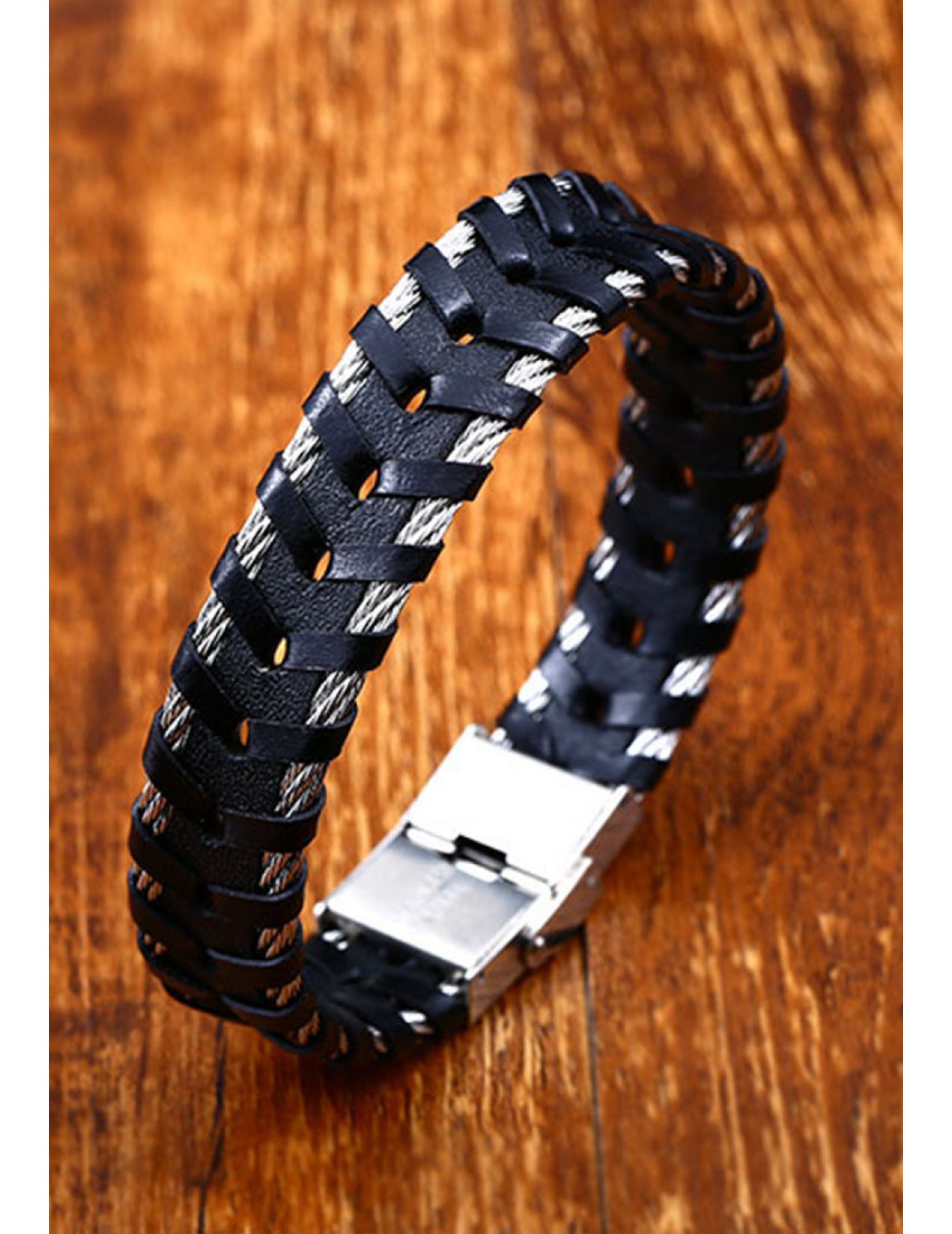 -重金屬設計真皮編織手鏈
