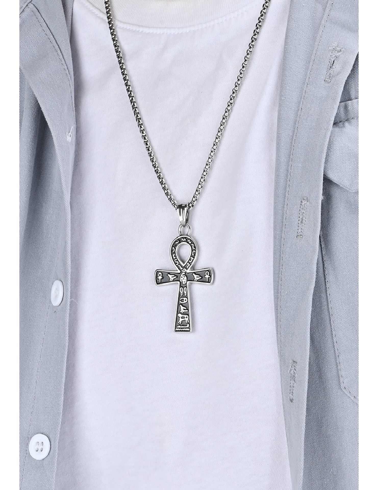 JSC3022 316L鈦鋼古埃及符號安卡十字架項鏈