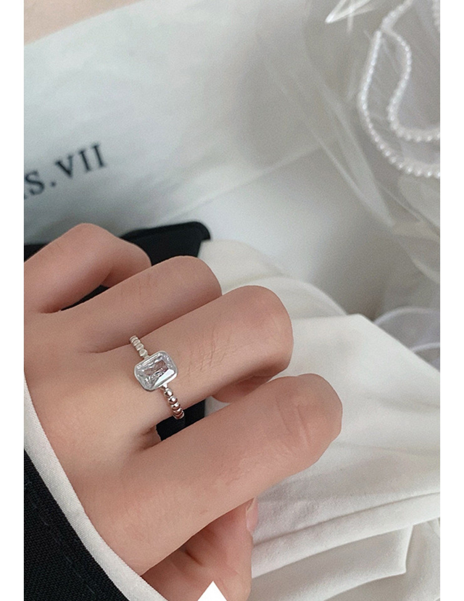 LDR2031 S925銀長方形開口戒指
