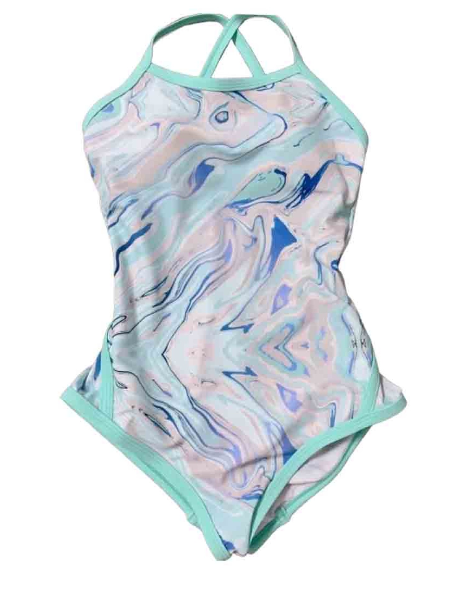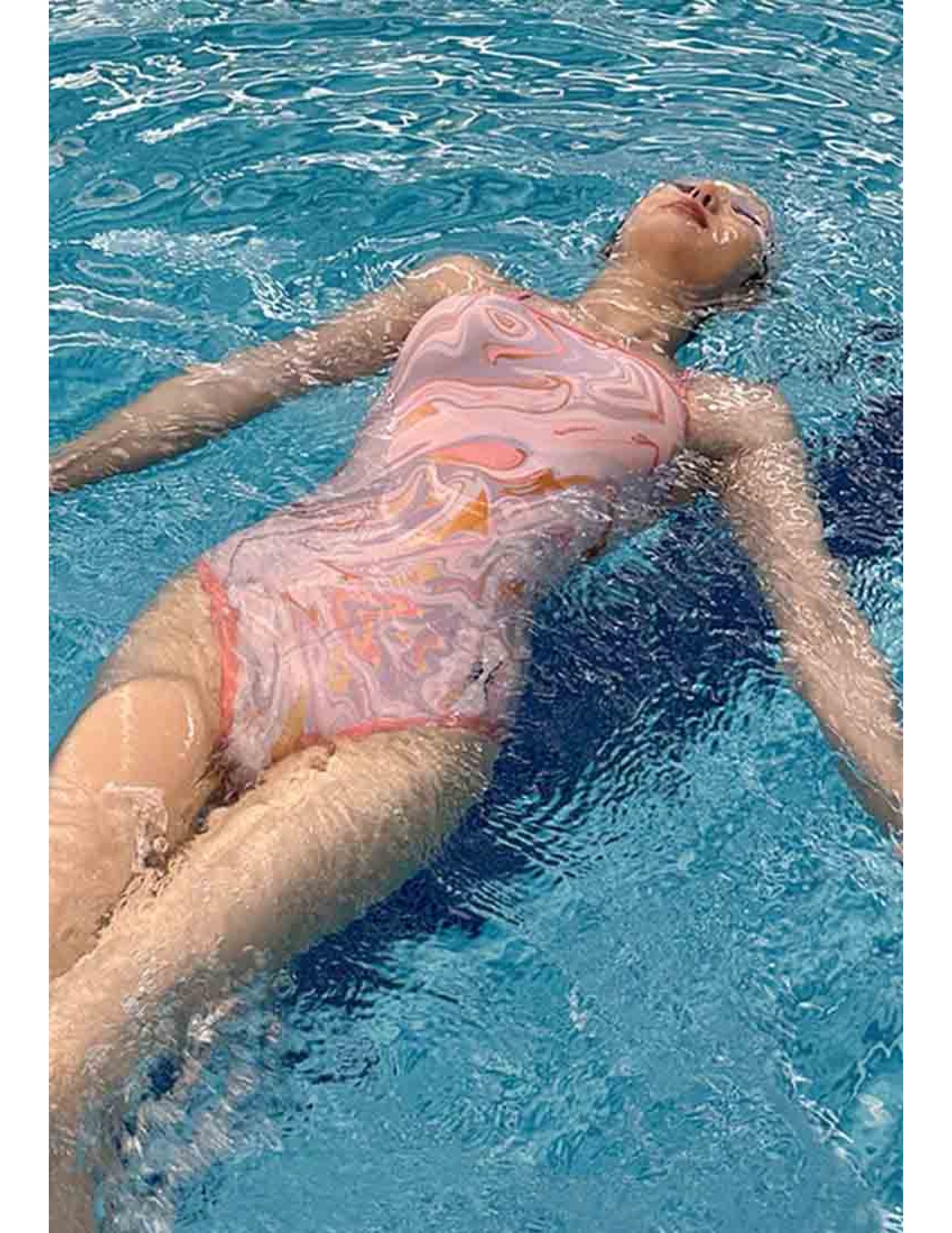 圖案質氨綸滌綸紡織物合體剪裁帶胸墊泳衣快乾材質洗滌說明:需要用手洗使用中性清潔劑
