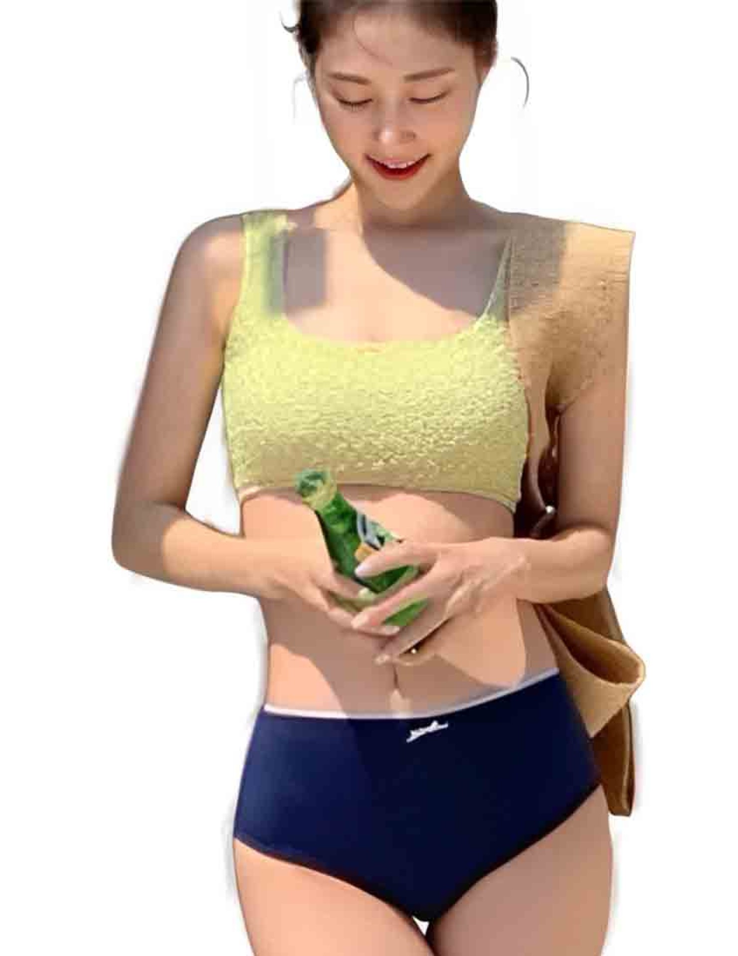 撞色質氨綸滌綸紡織物合體剪裁帶胸墊泳衣快乾材質洗滌說明:需要用手洗使用中性清潔劑