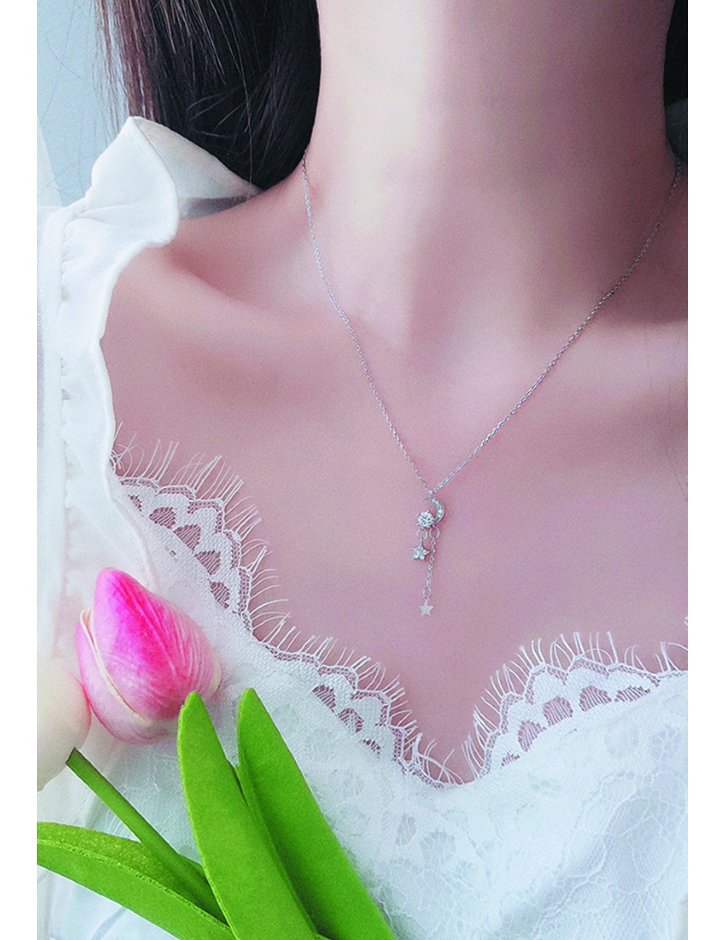 LDR4121 S925純銀星星月亮流蘇項鏈