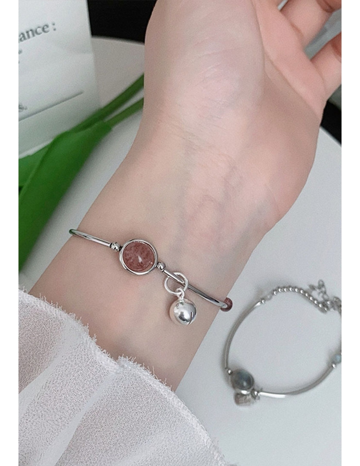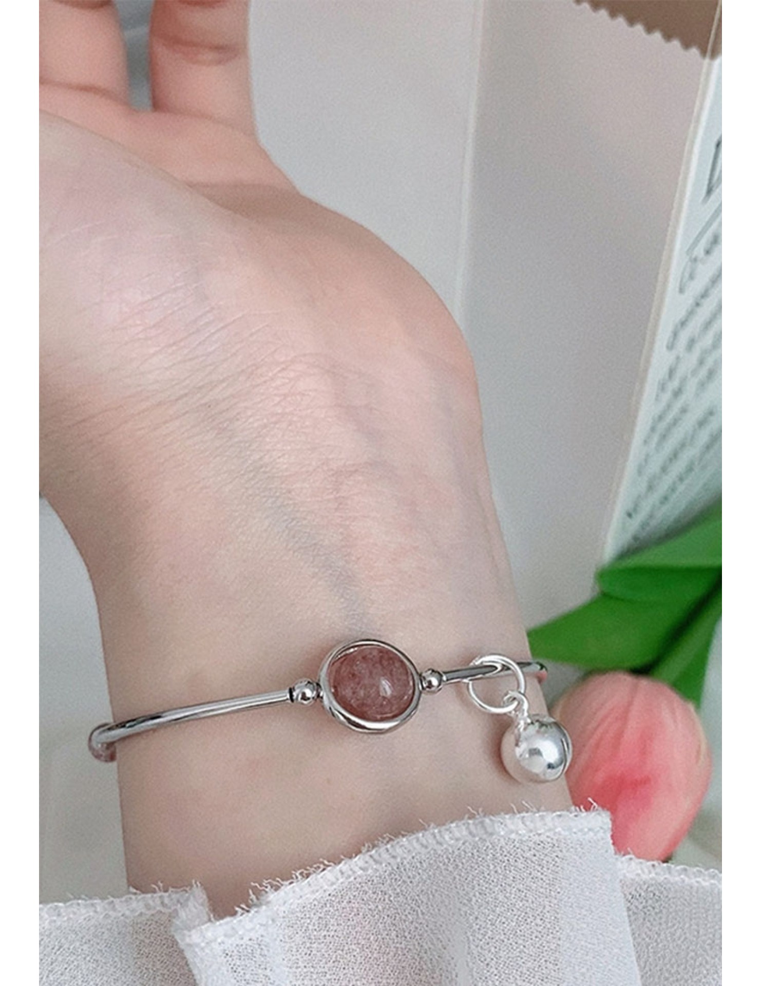 優質防過敏S925純銀粉紅色水晶製成