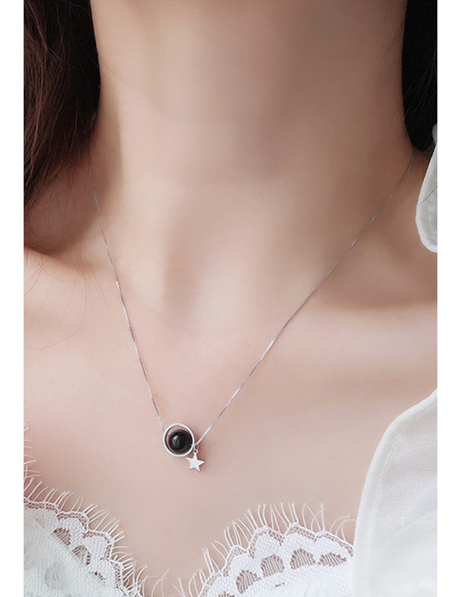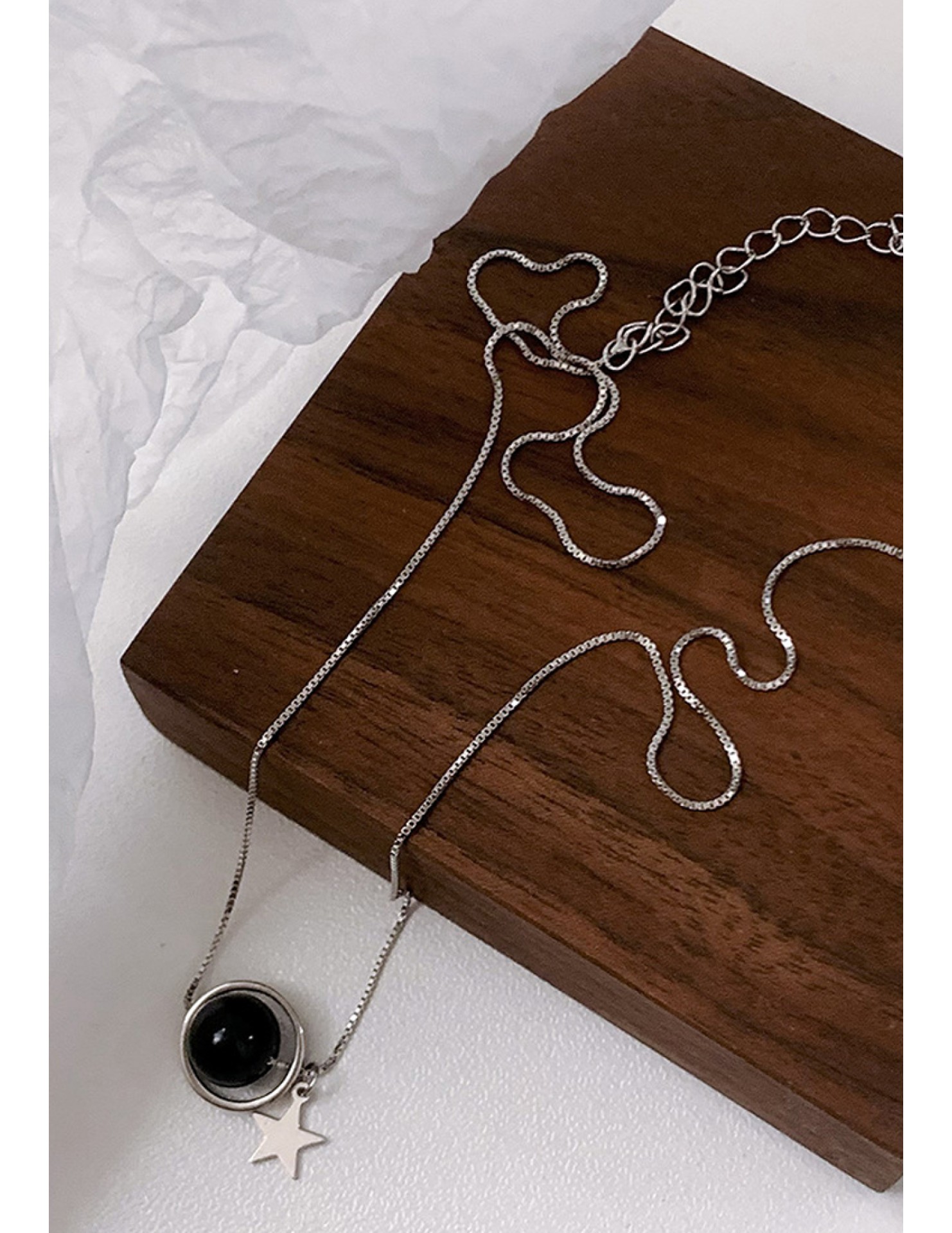 LDR6223S S925純銀地球儀黑瑪瑙星星項鏈