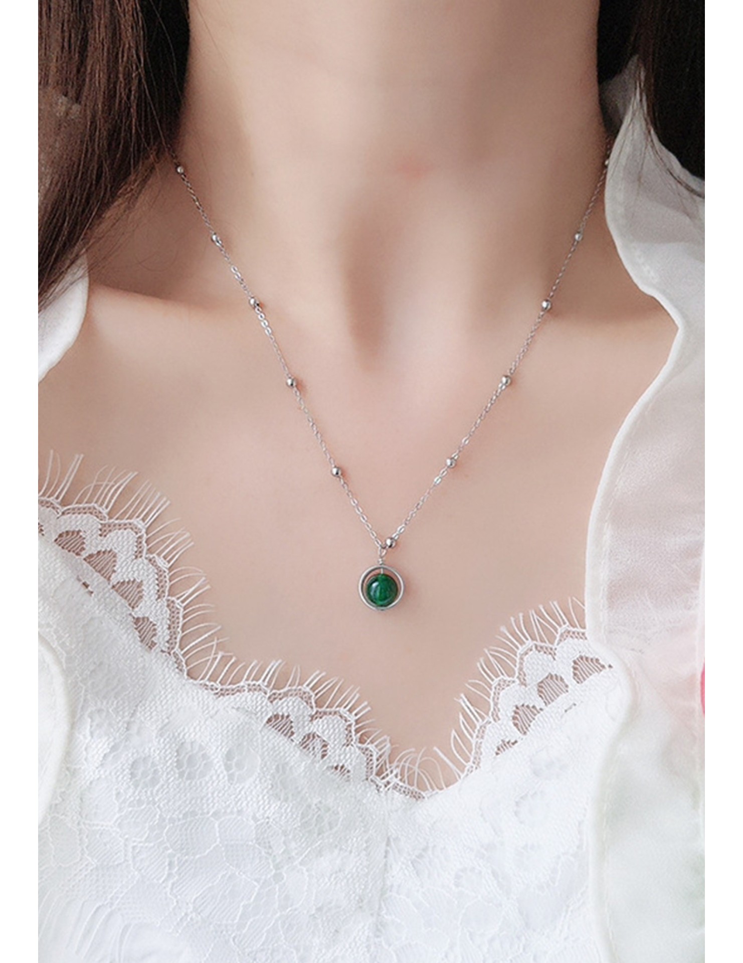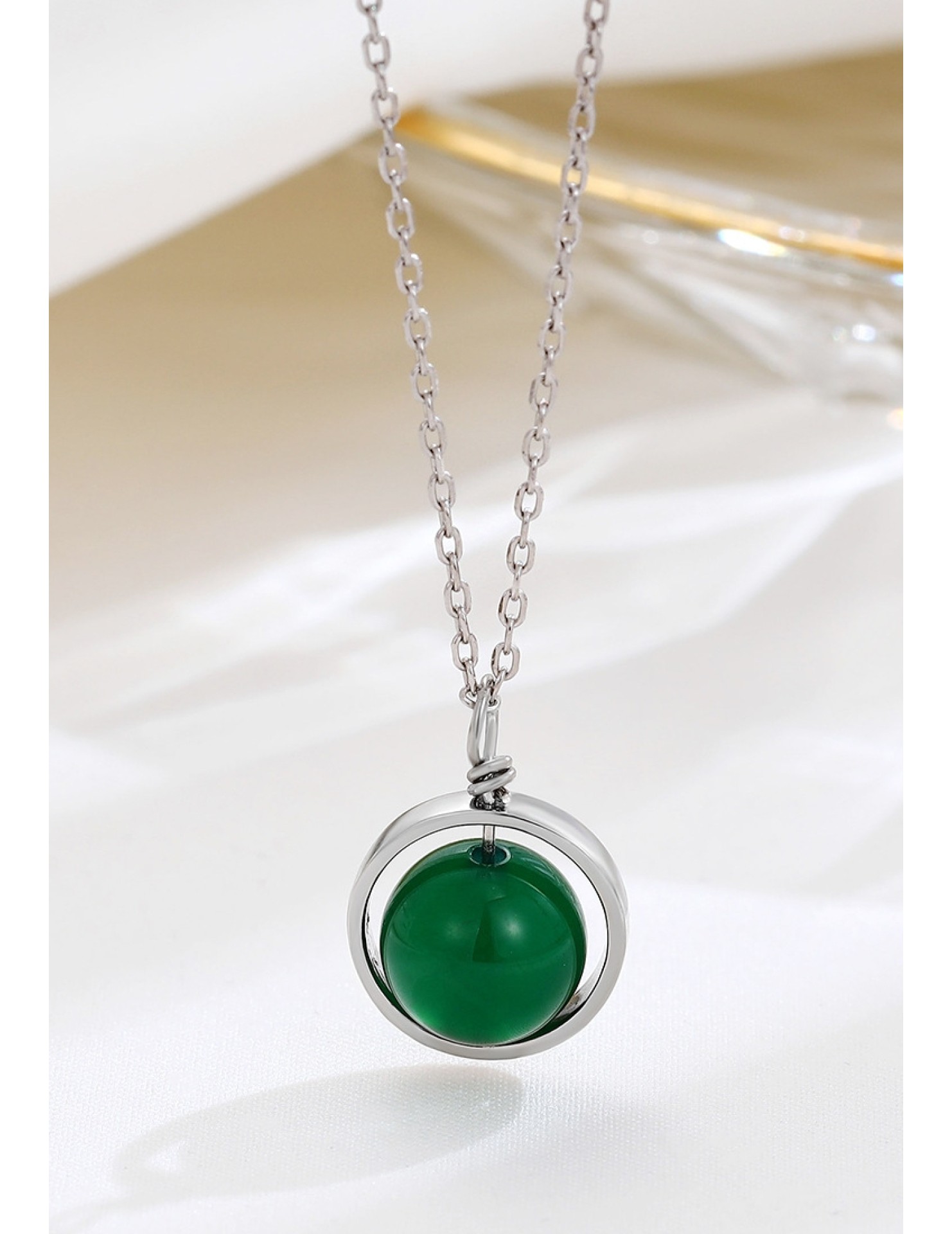 LDR6229P S925純銀地球儀綠瑪瑙項鏈