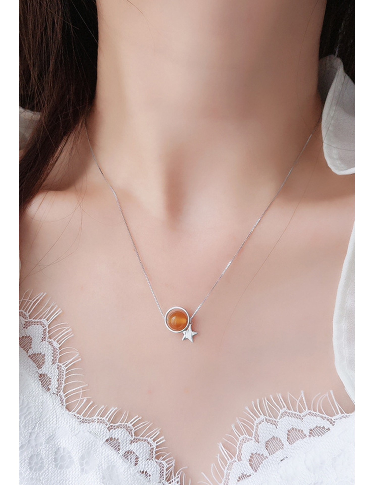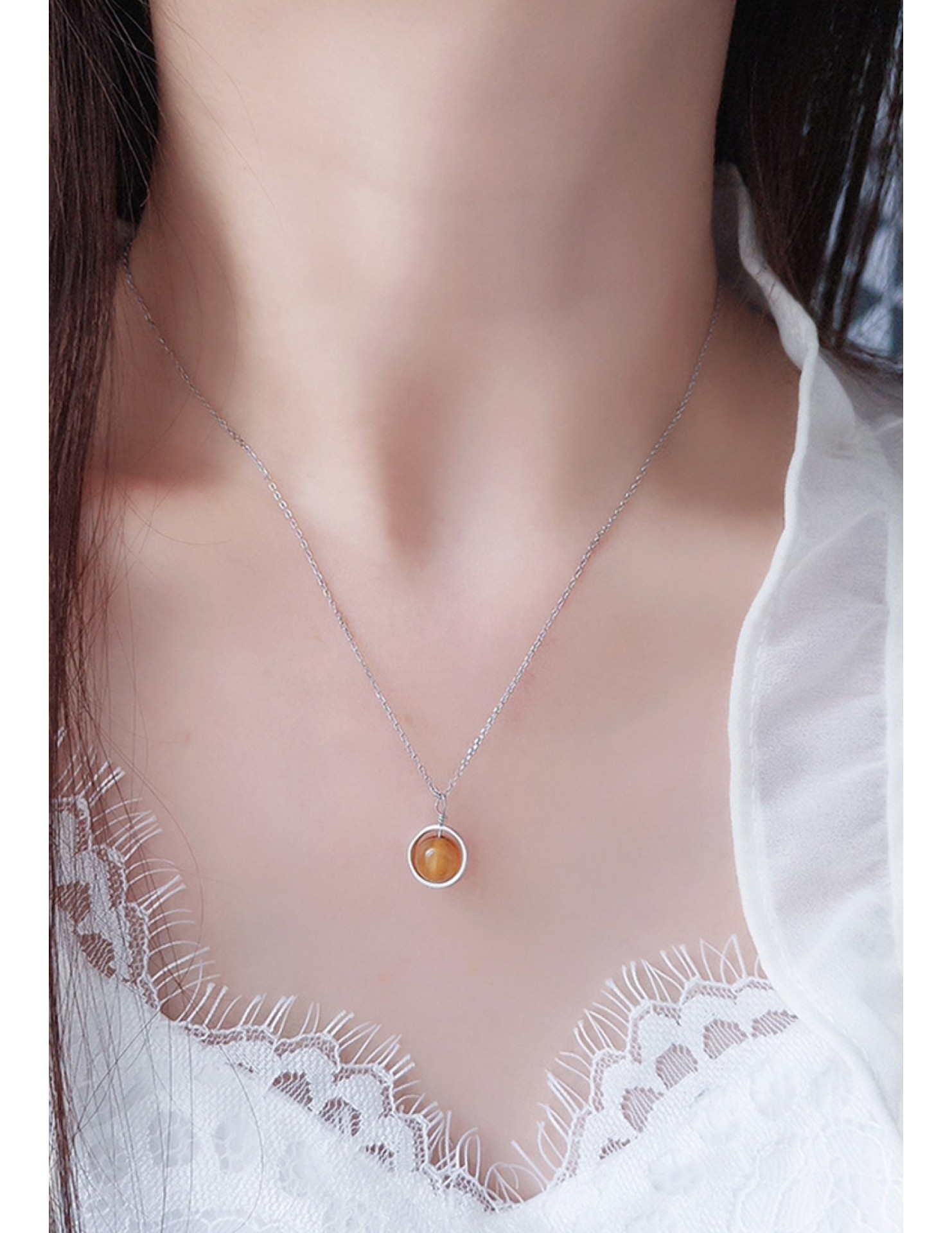 LDR6230B S925純銀地球儀黃瑪瑙項鏈