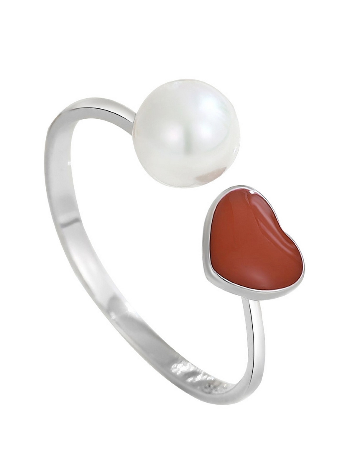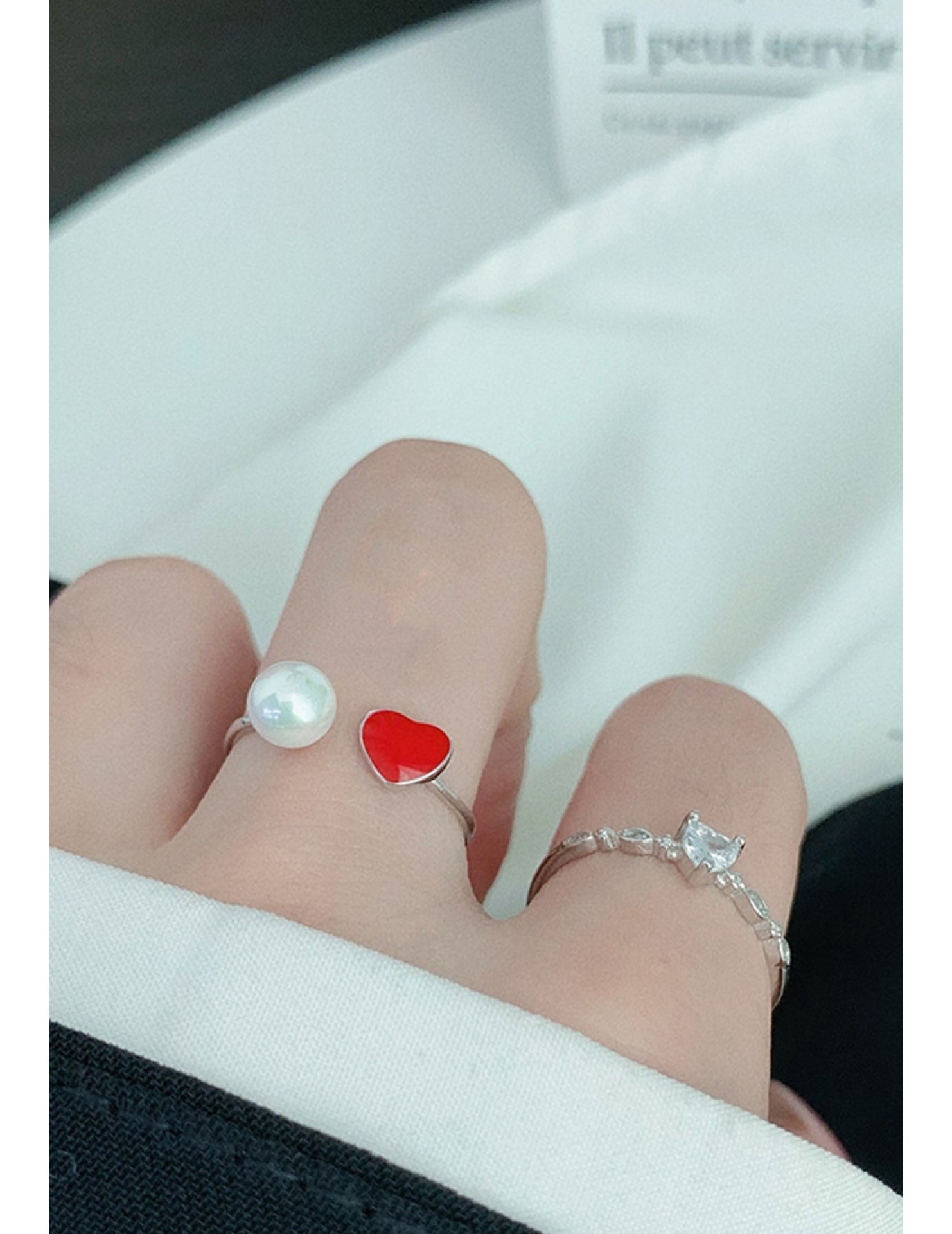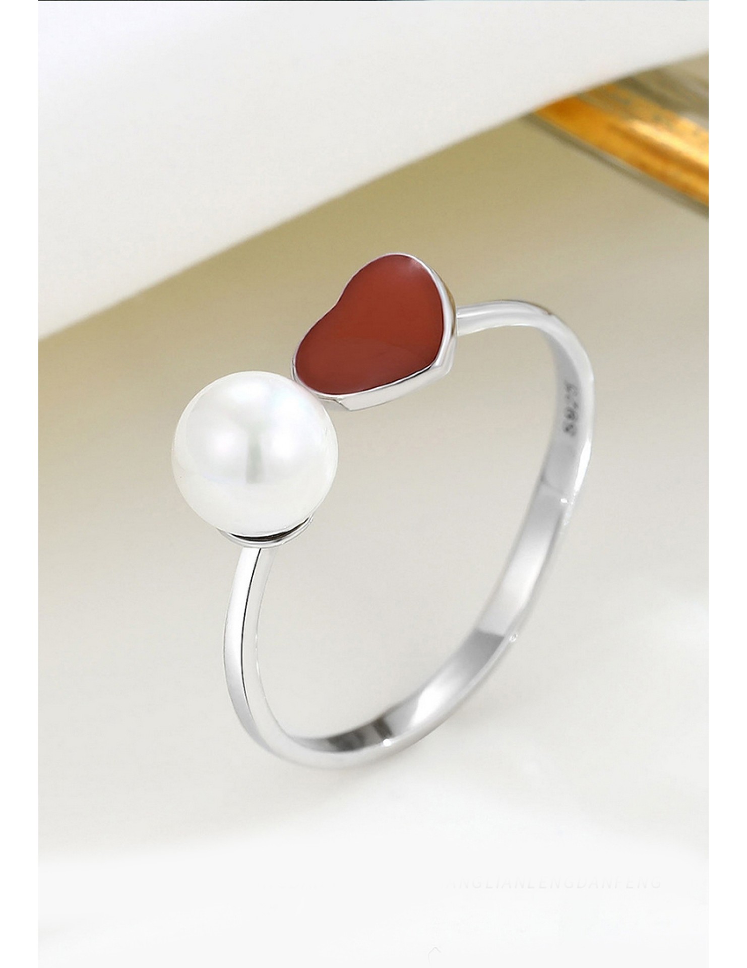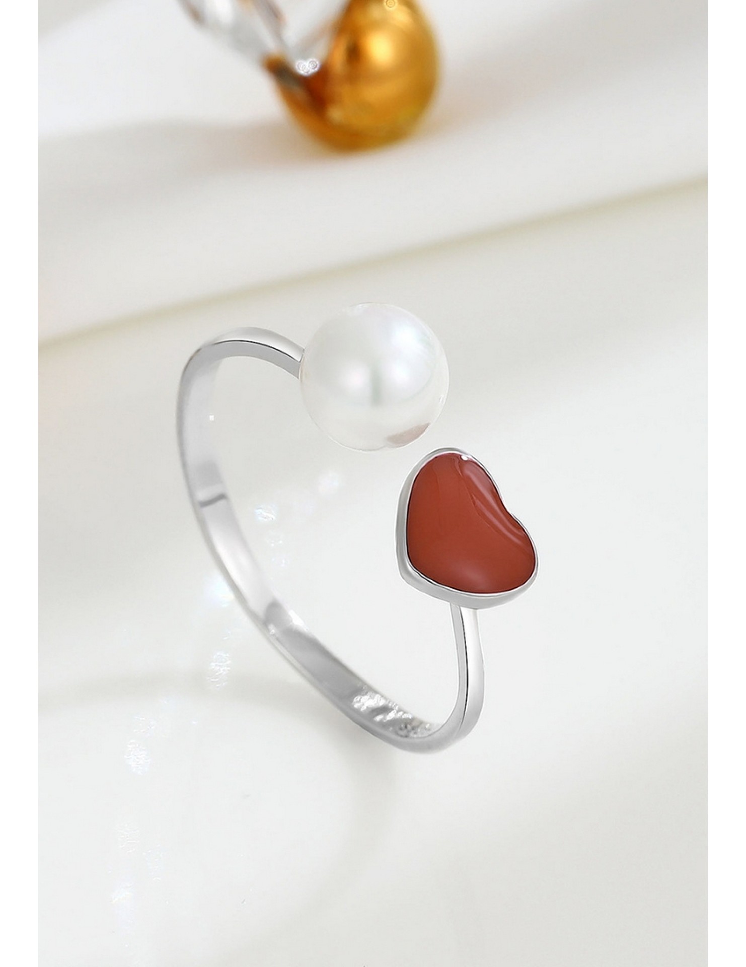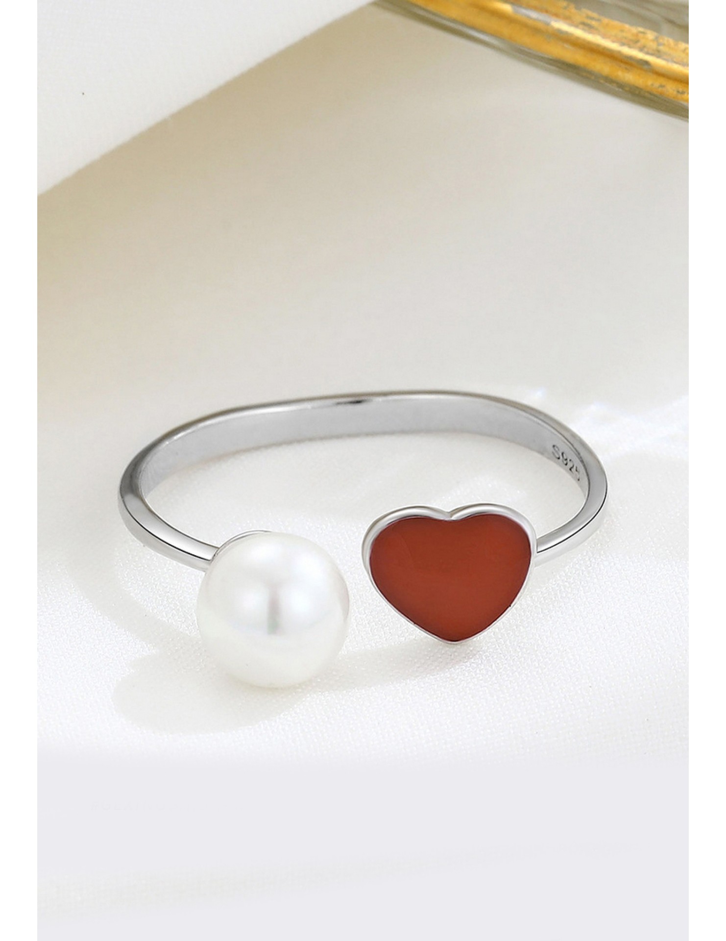 LDR9206 S925純銀珍珠紅色愛心開口戒指