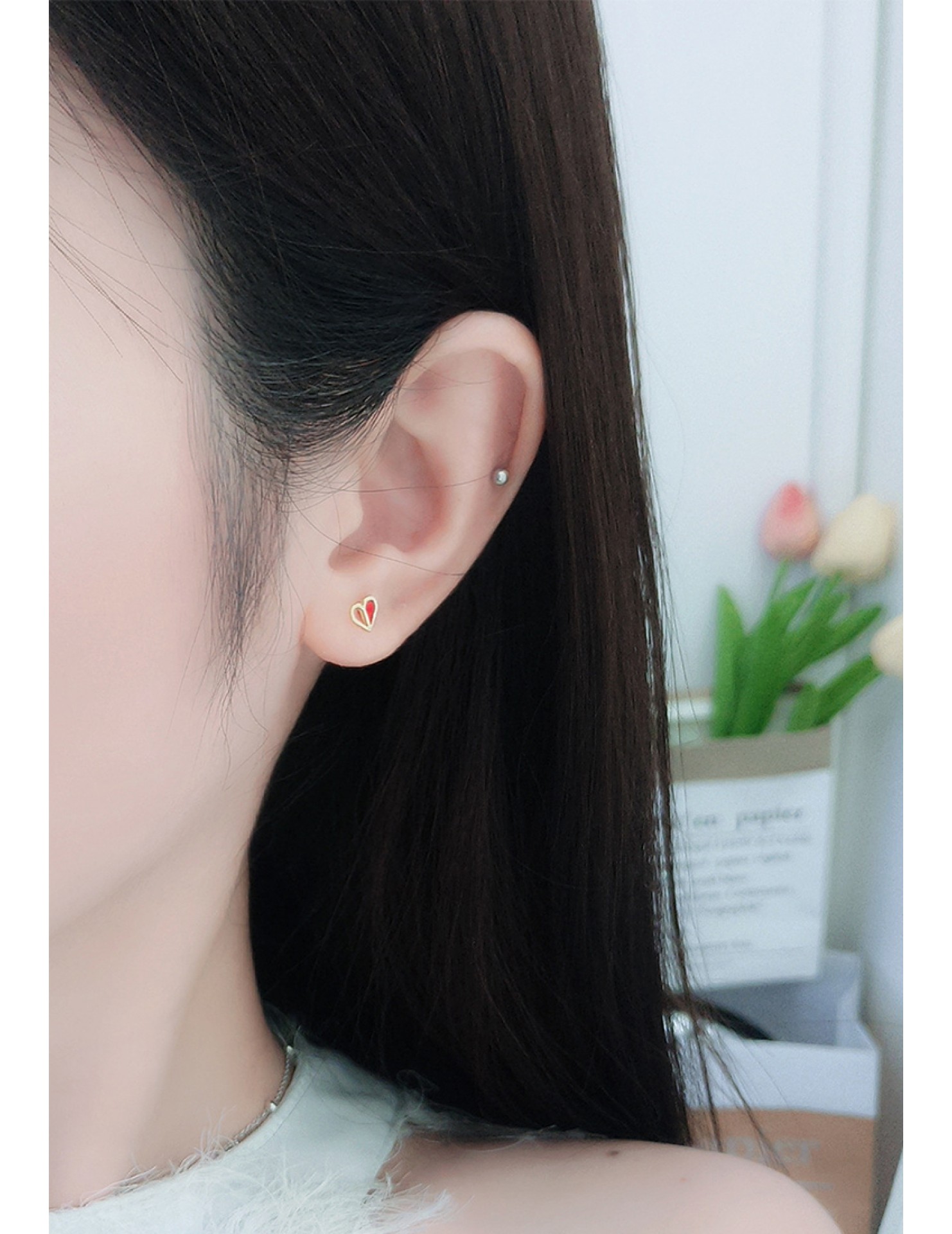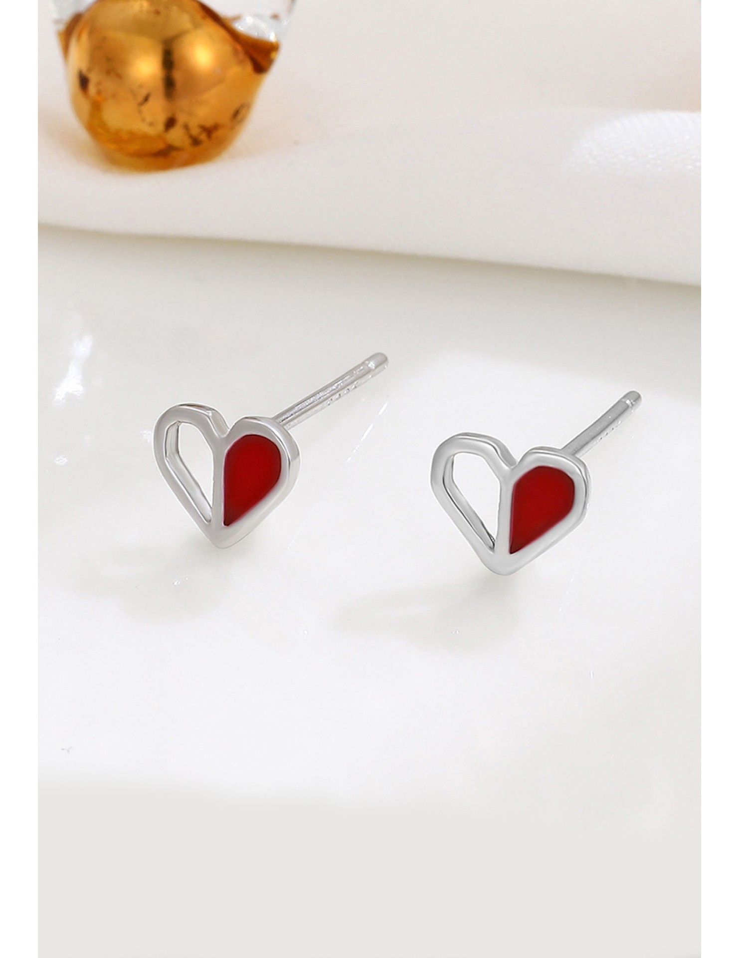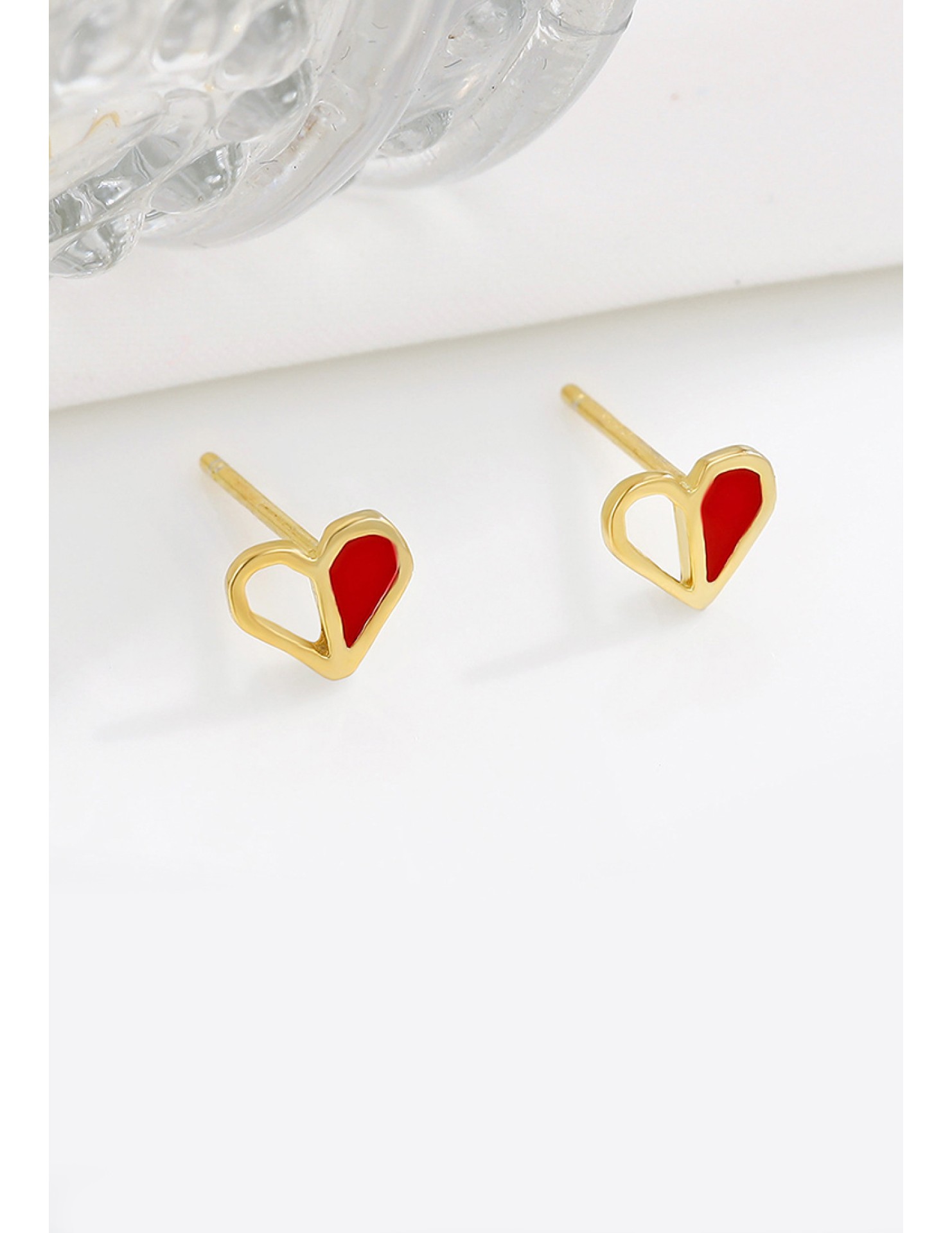 LDR9228 S925純銀紅色愛心耳環