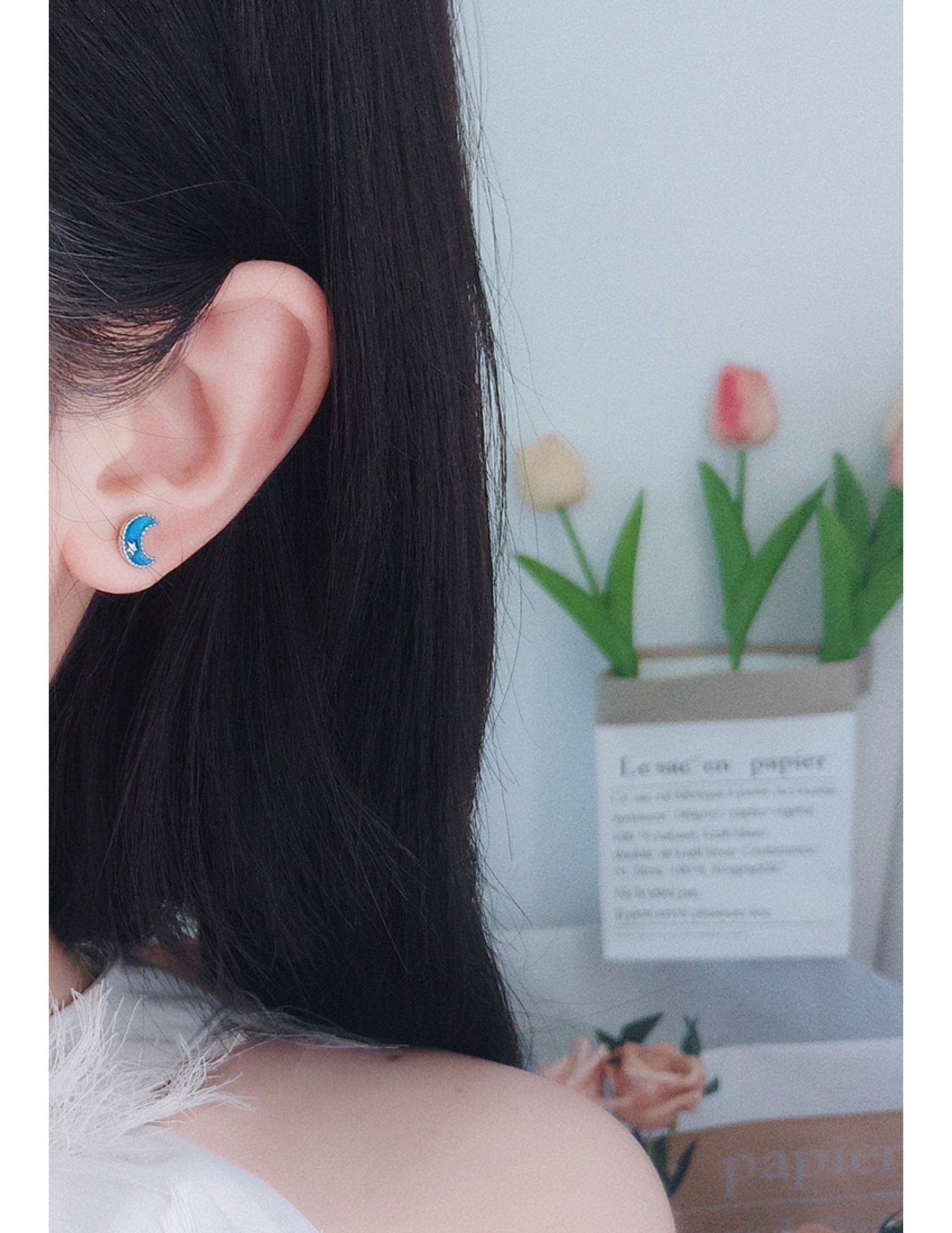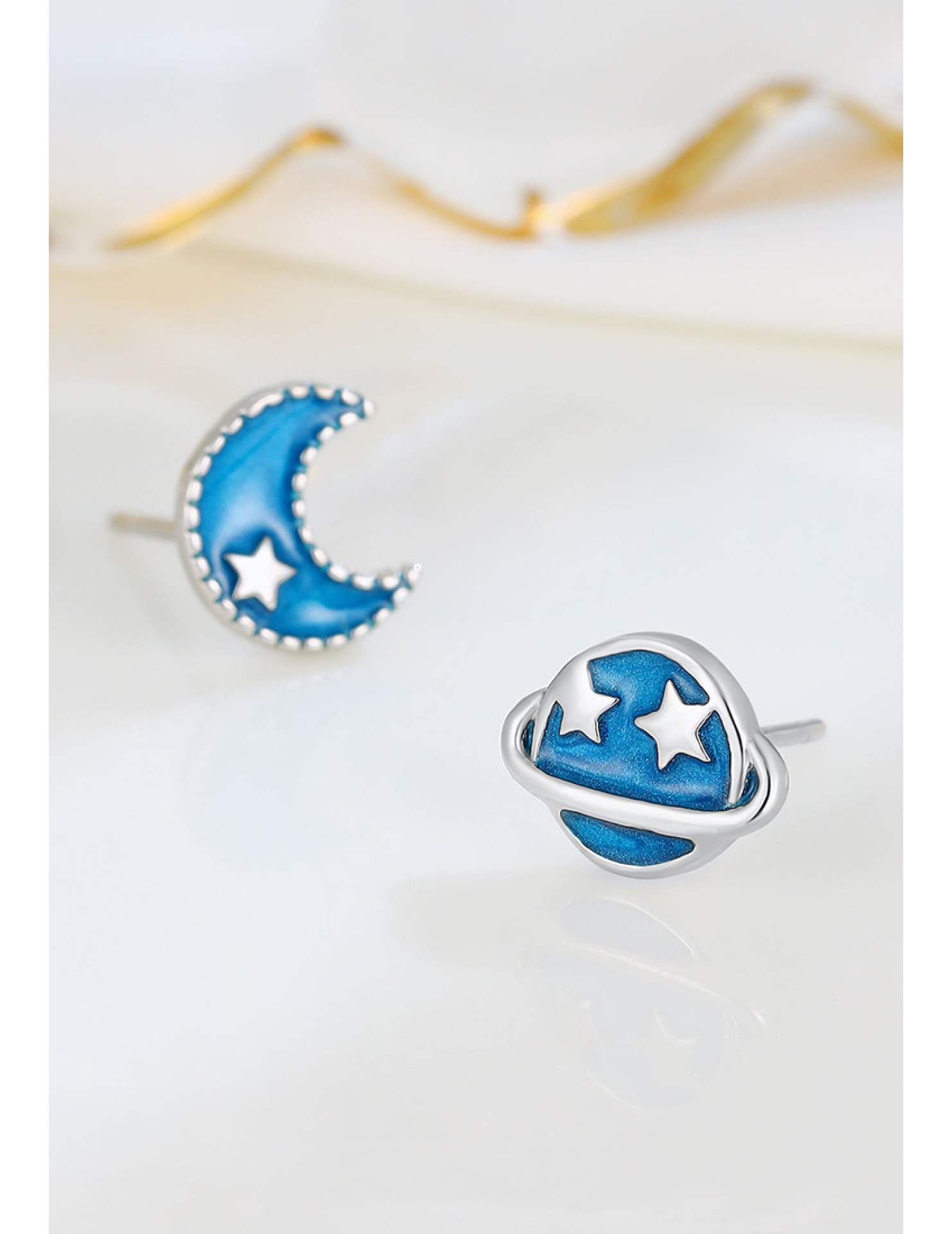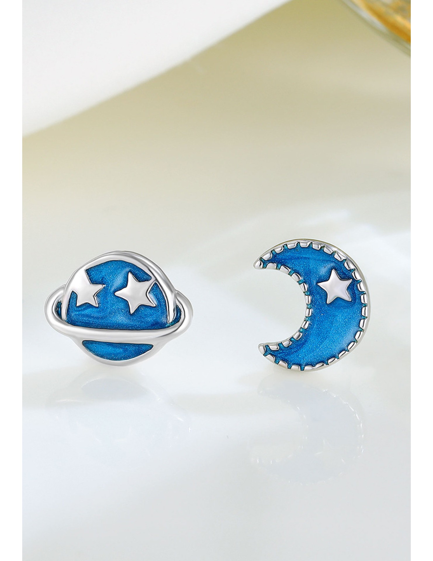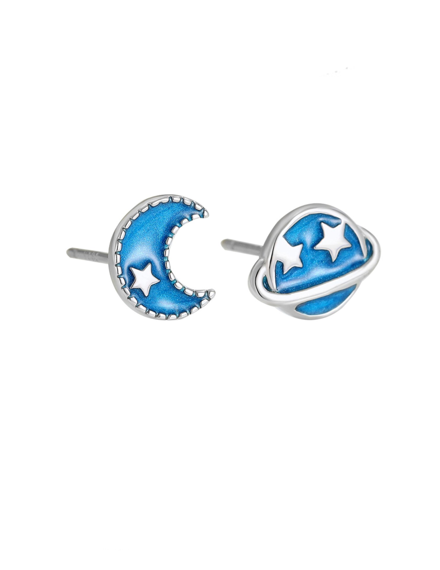 LDR24338 S925純銀藍色星球月亮不對稱耳環