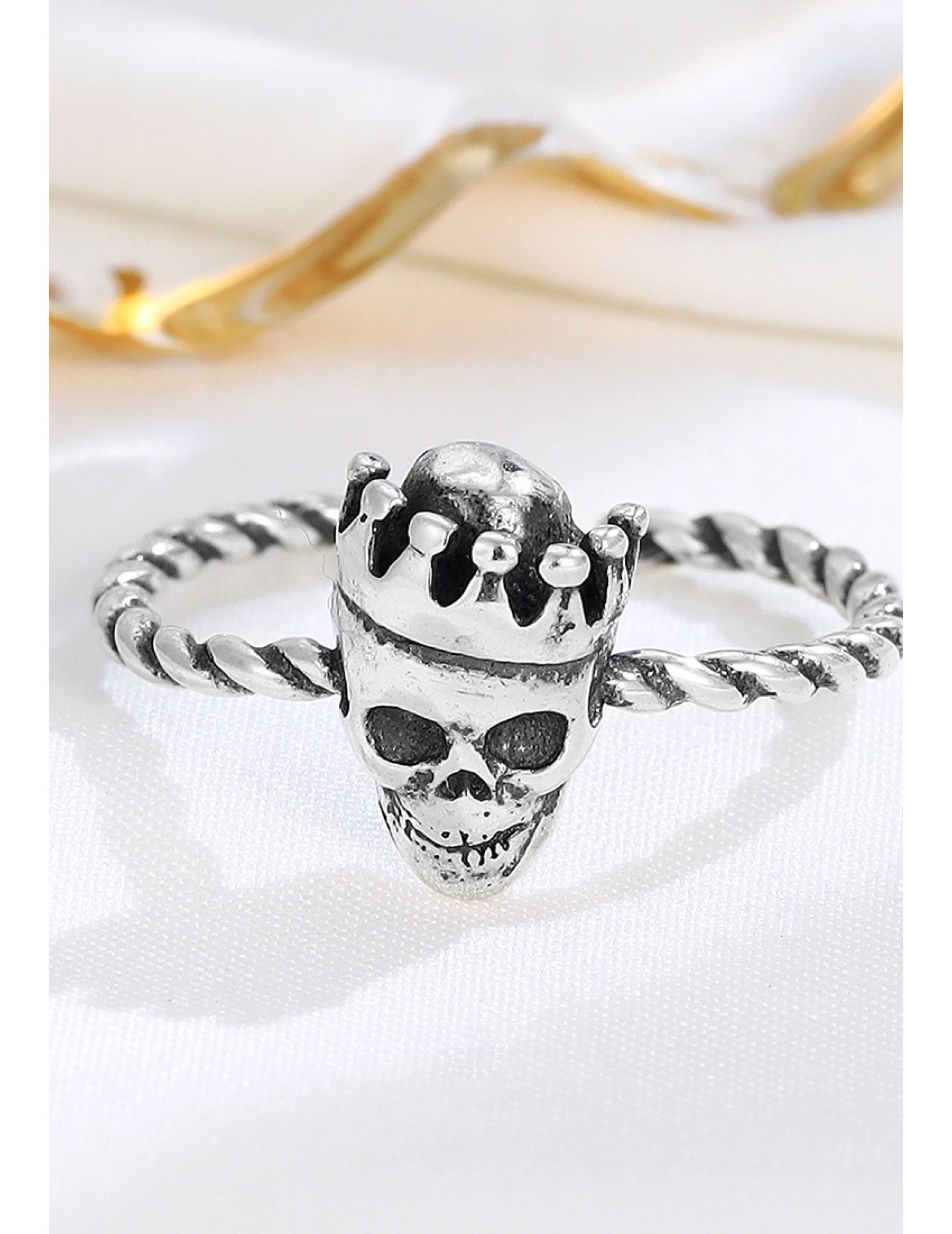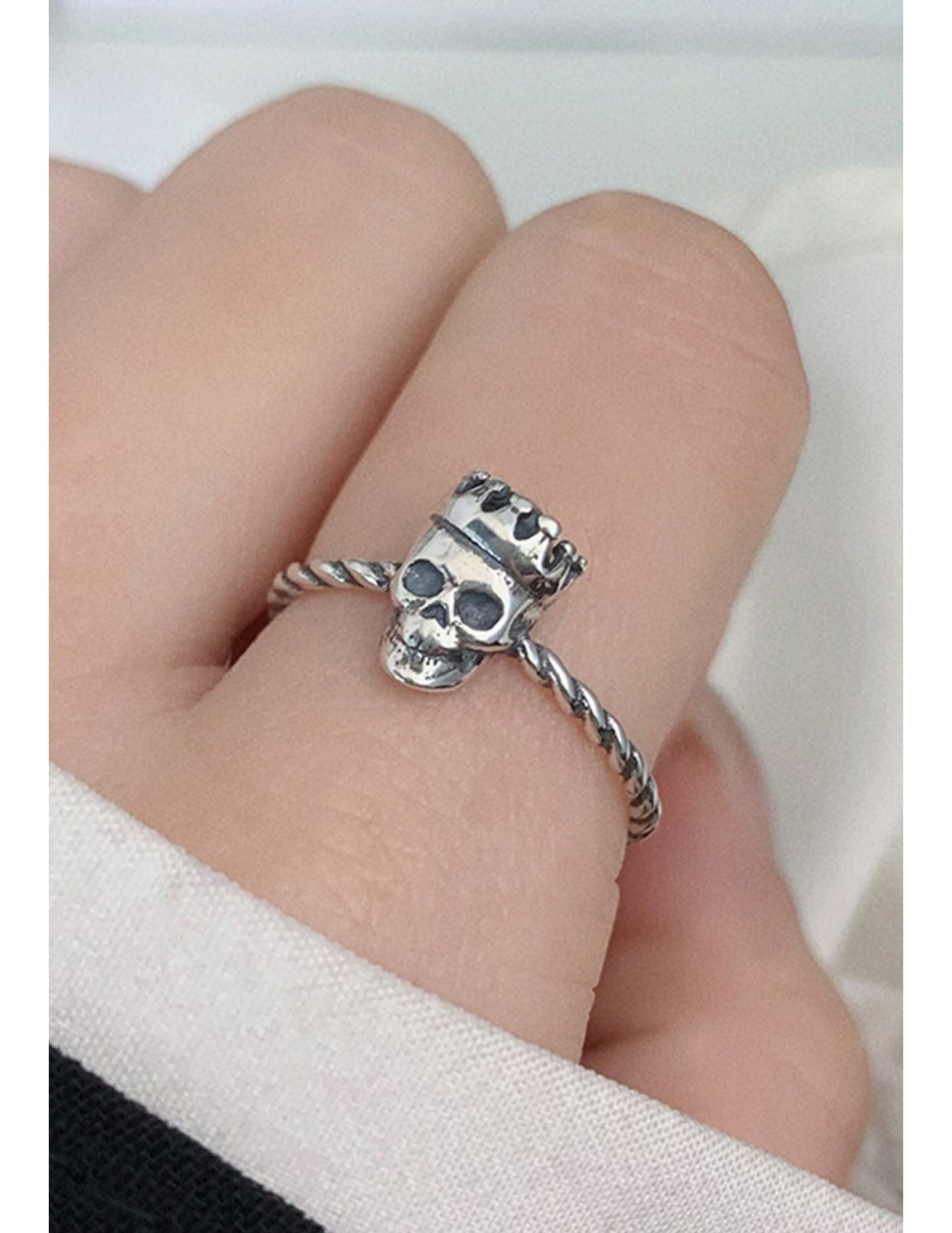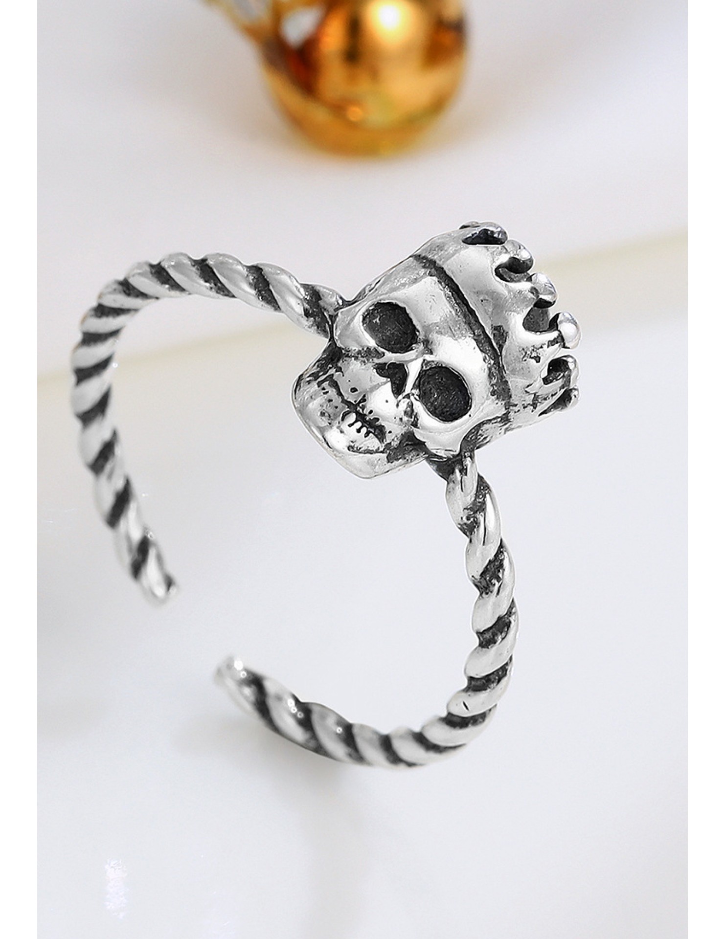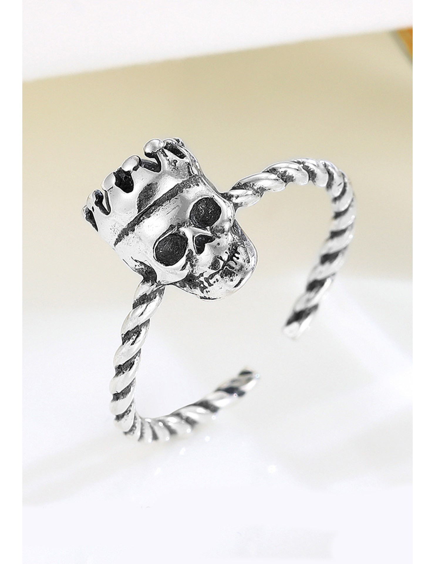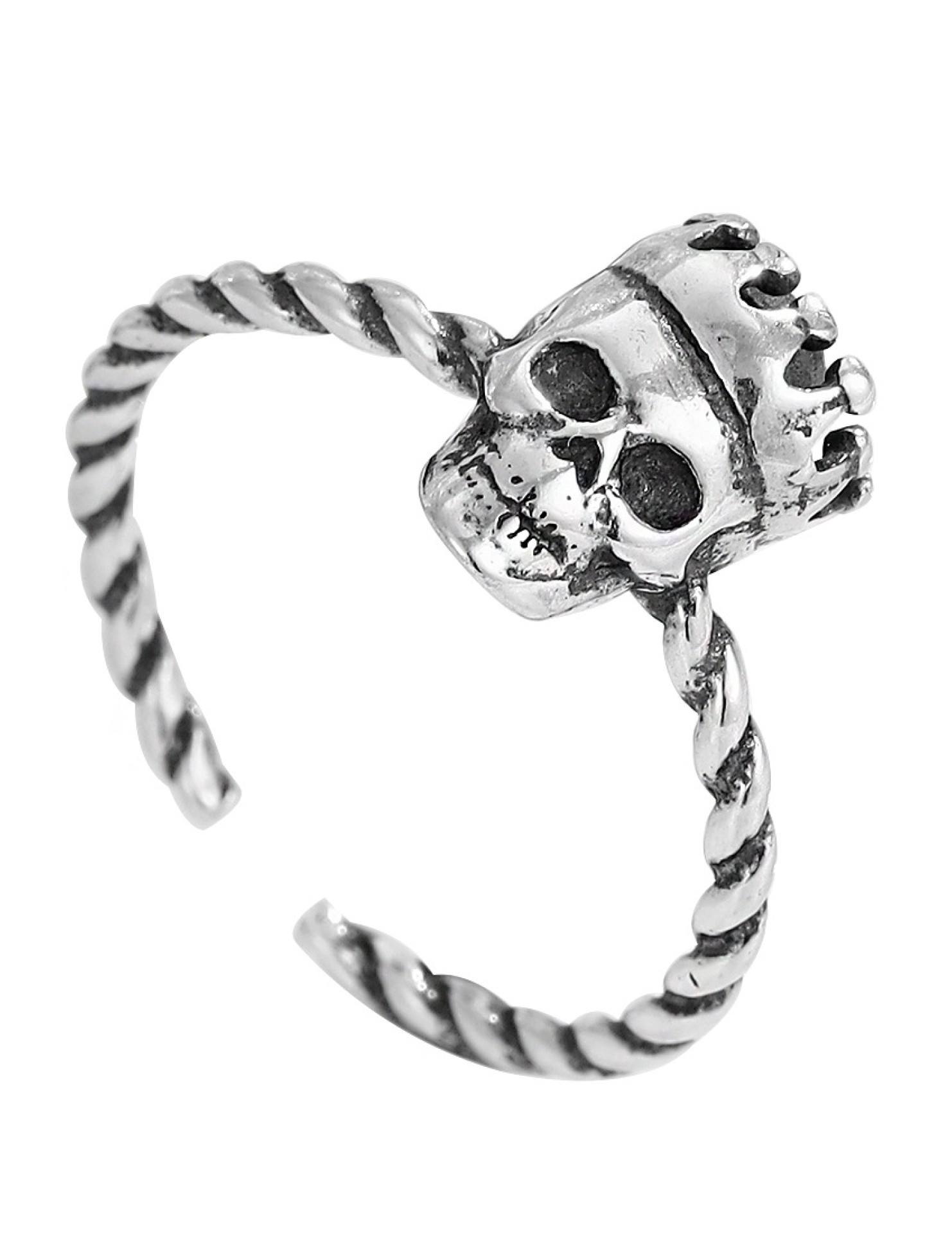LDR24341 S925純銀古皇冠骷髏頭開口戒指