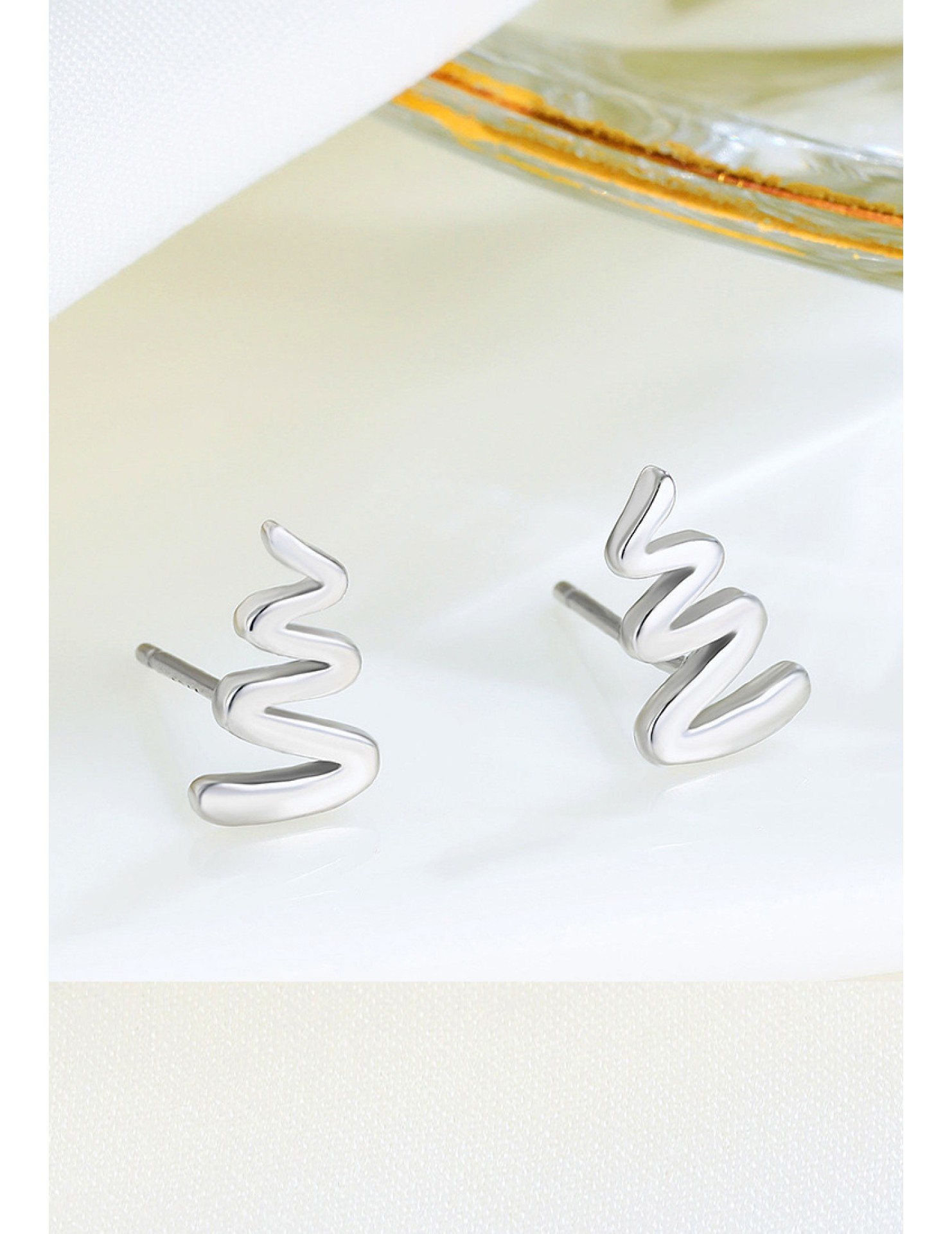 LDR24349 S925純銀簡約波浪紋耳環