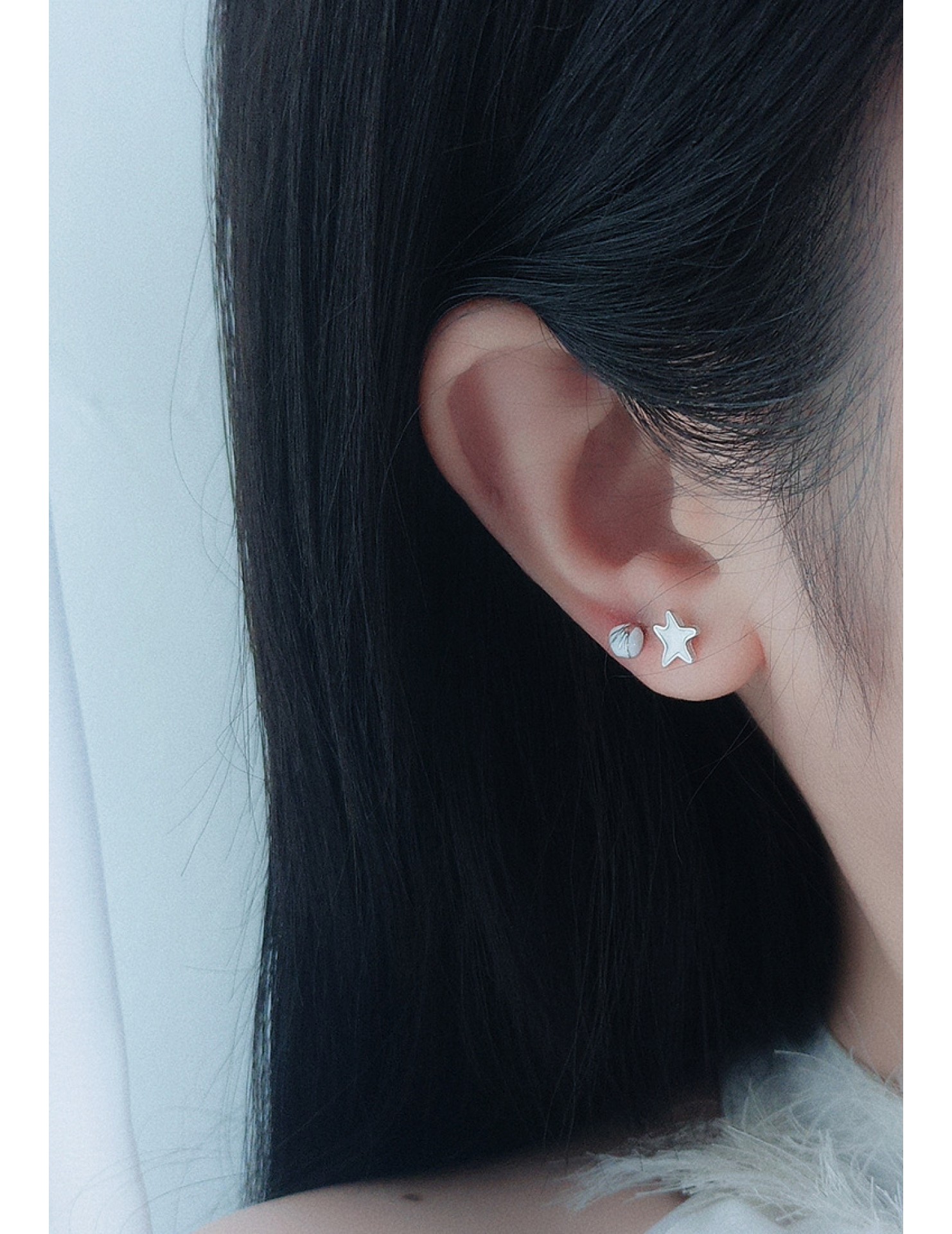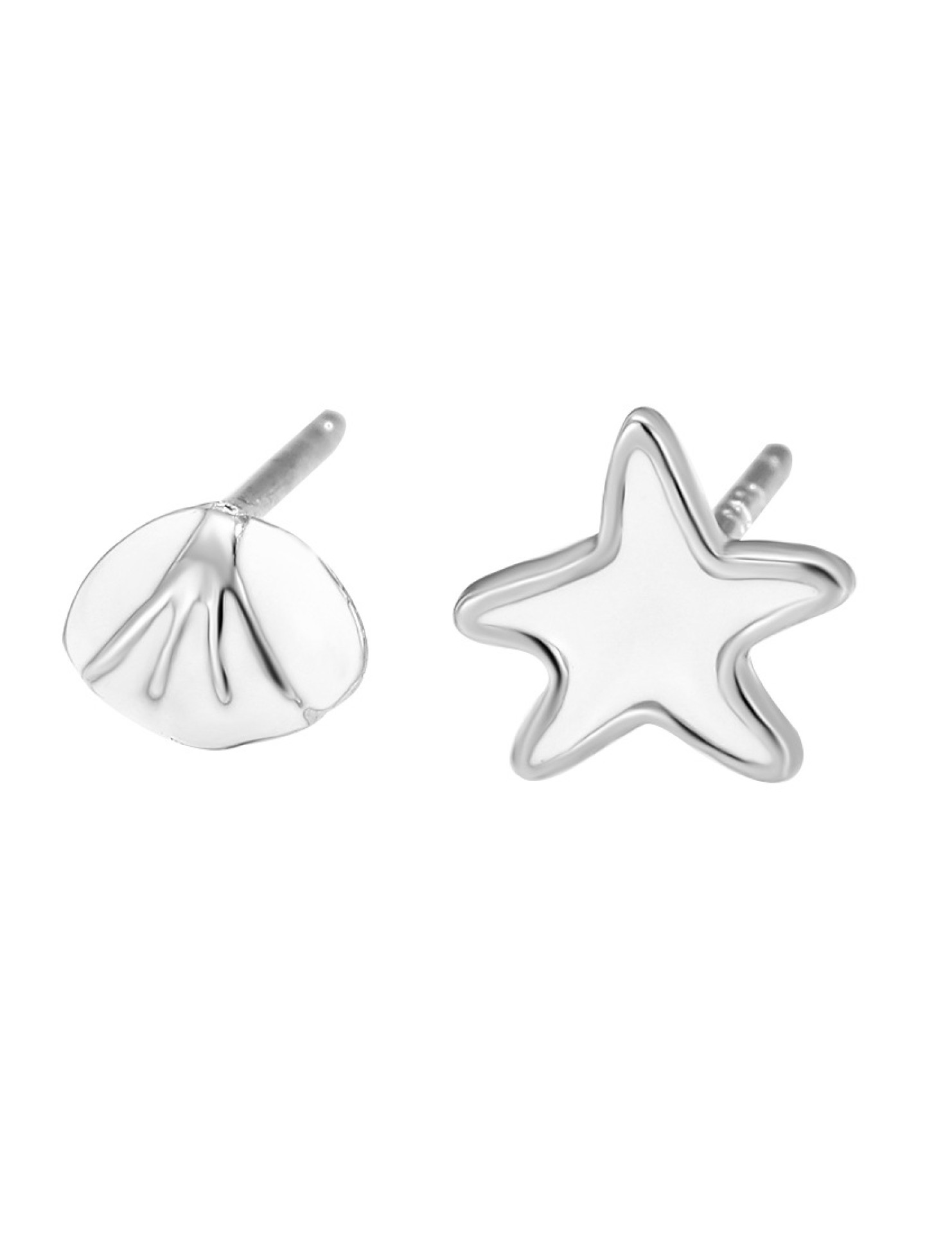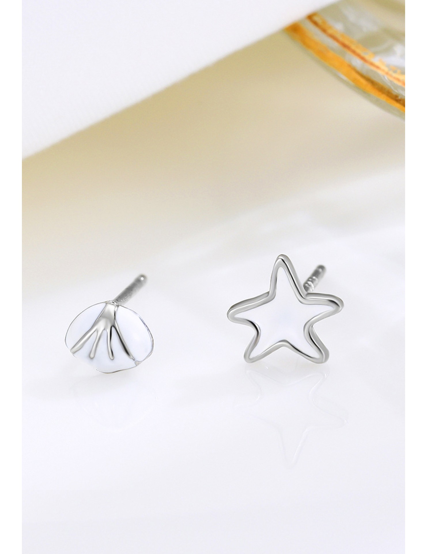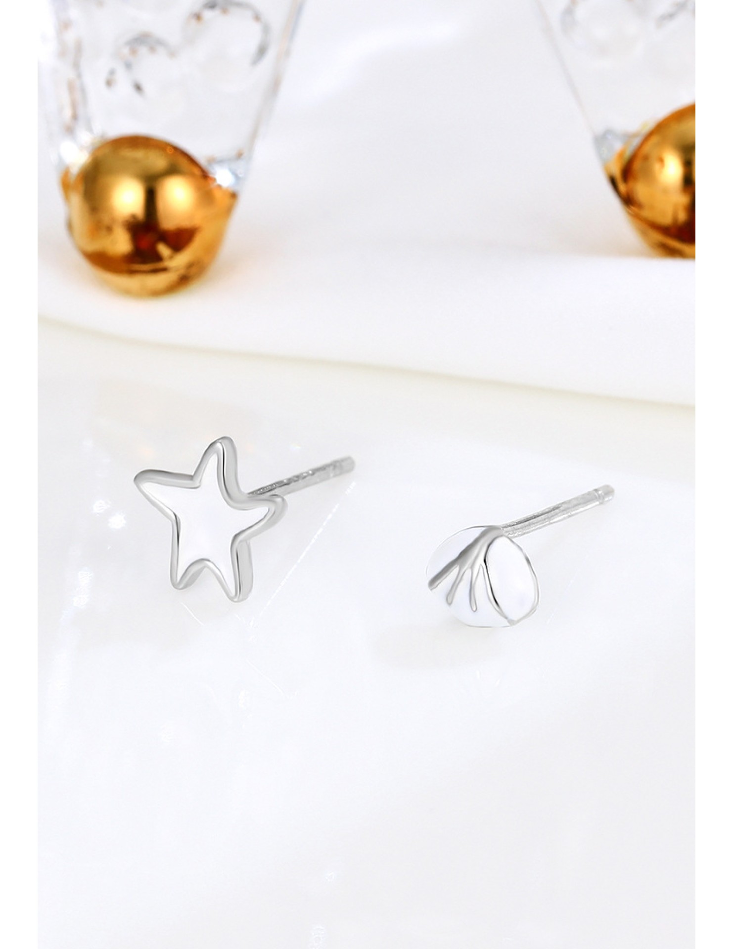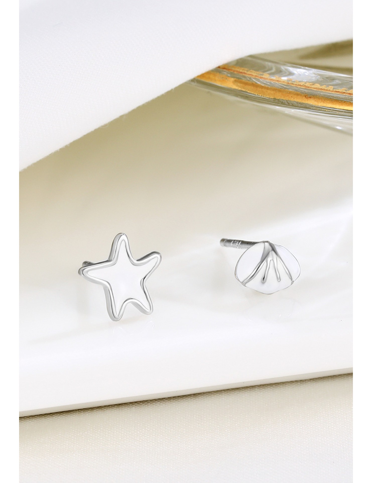 LDR24351 S925純銀滴釉白色貝殼海星耳環