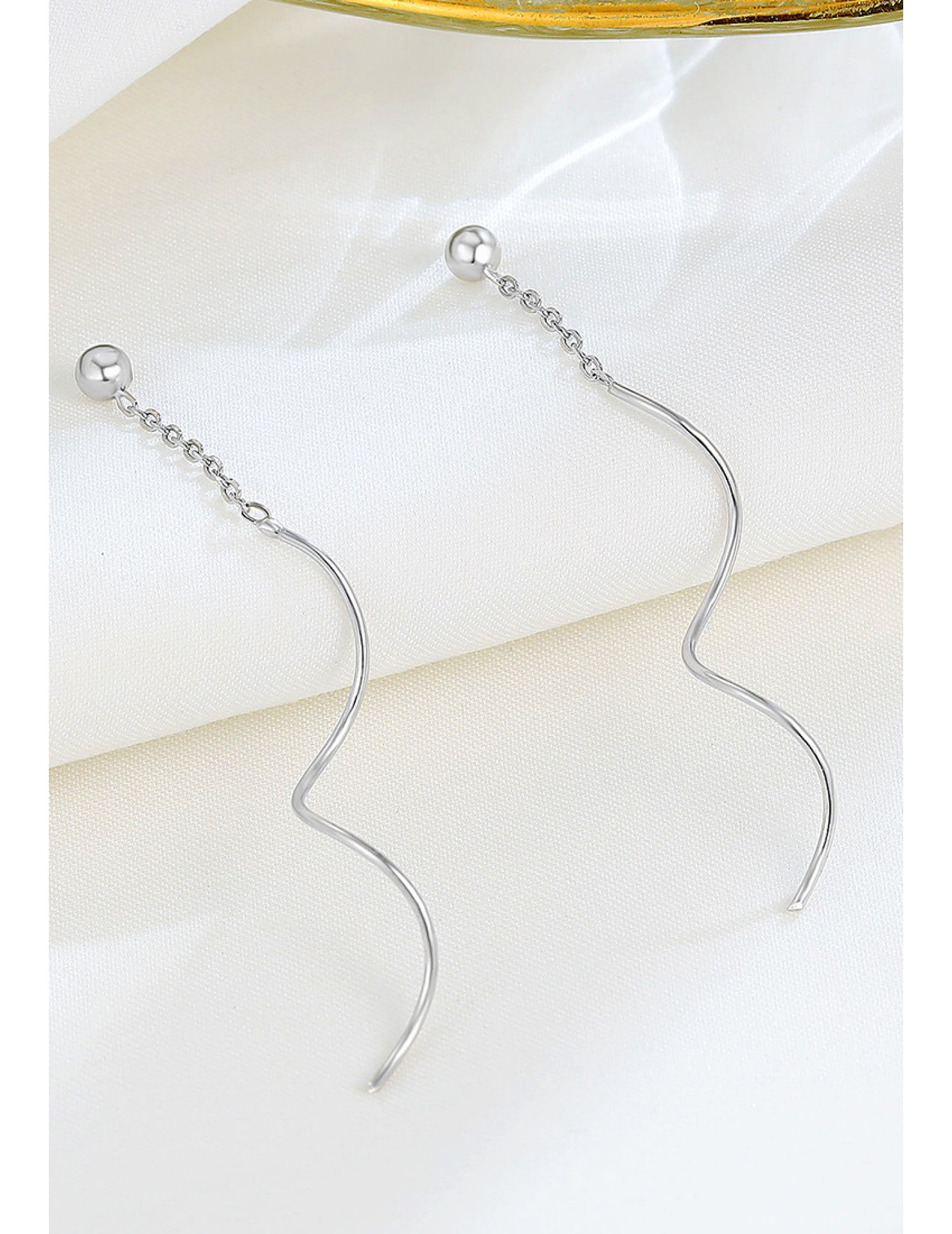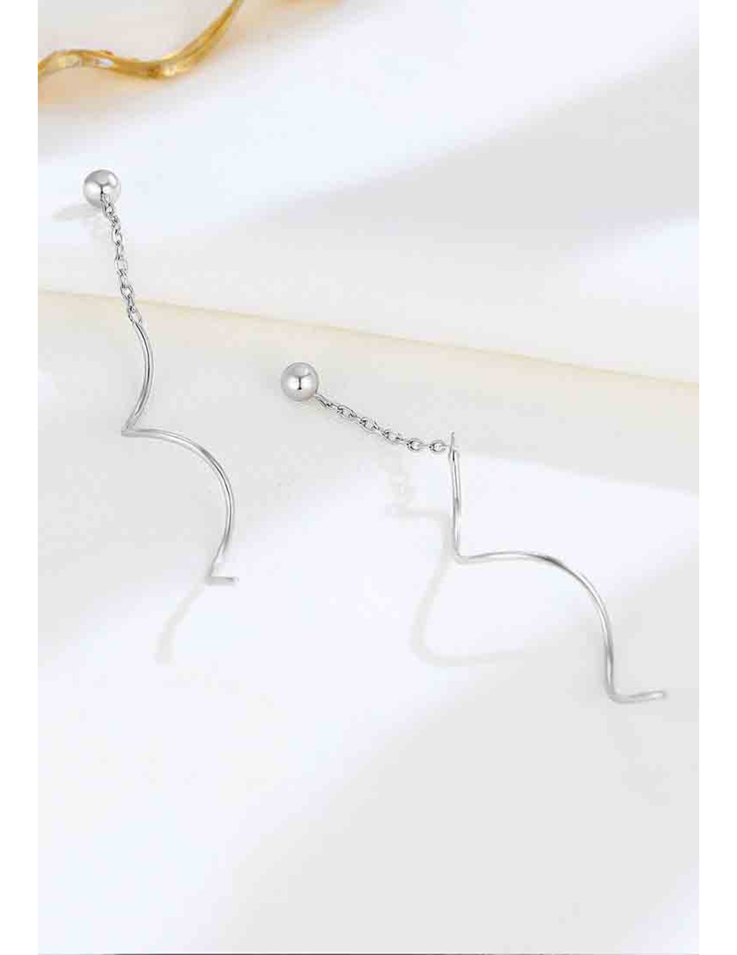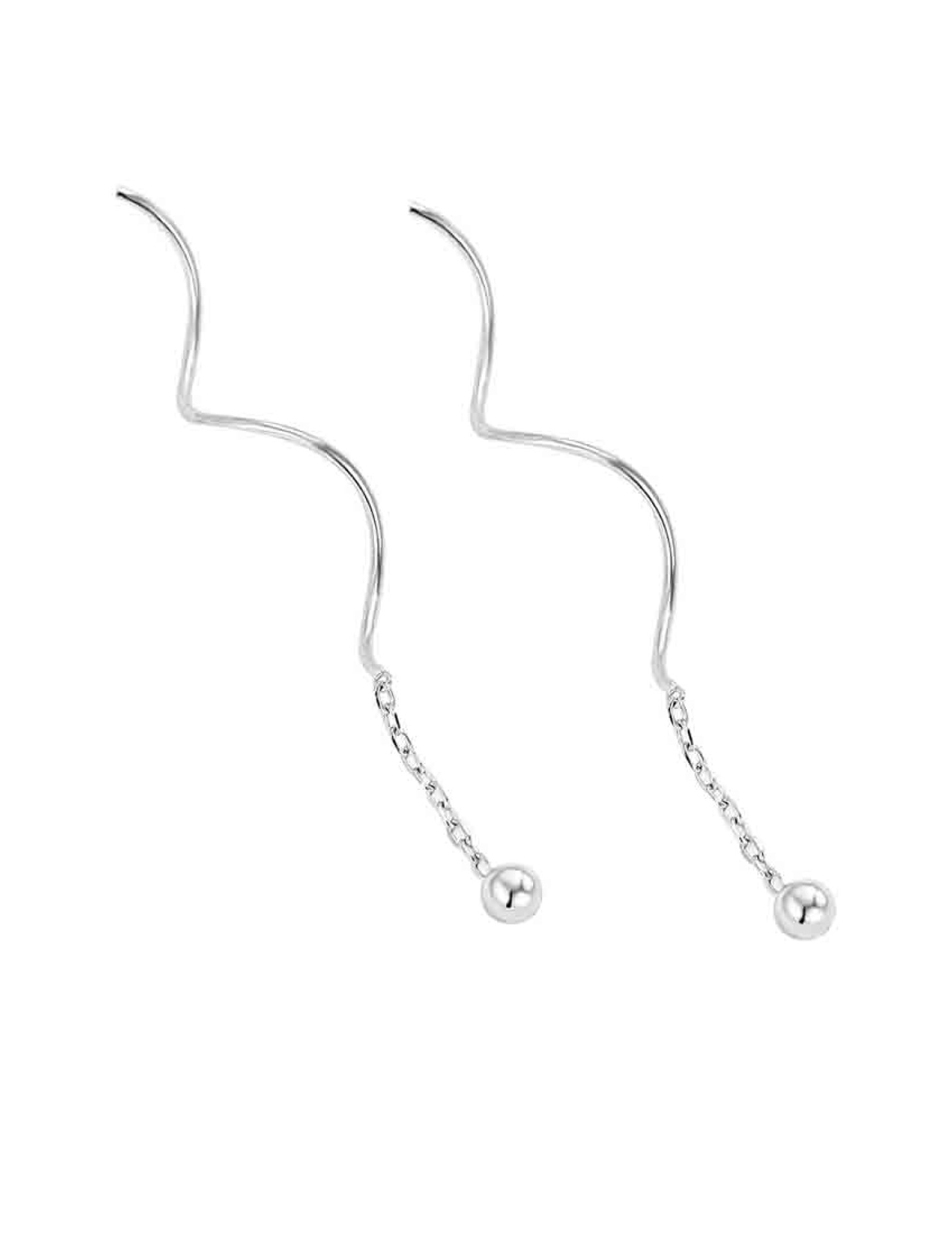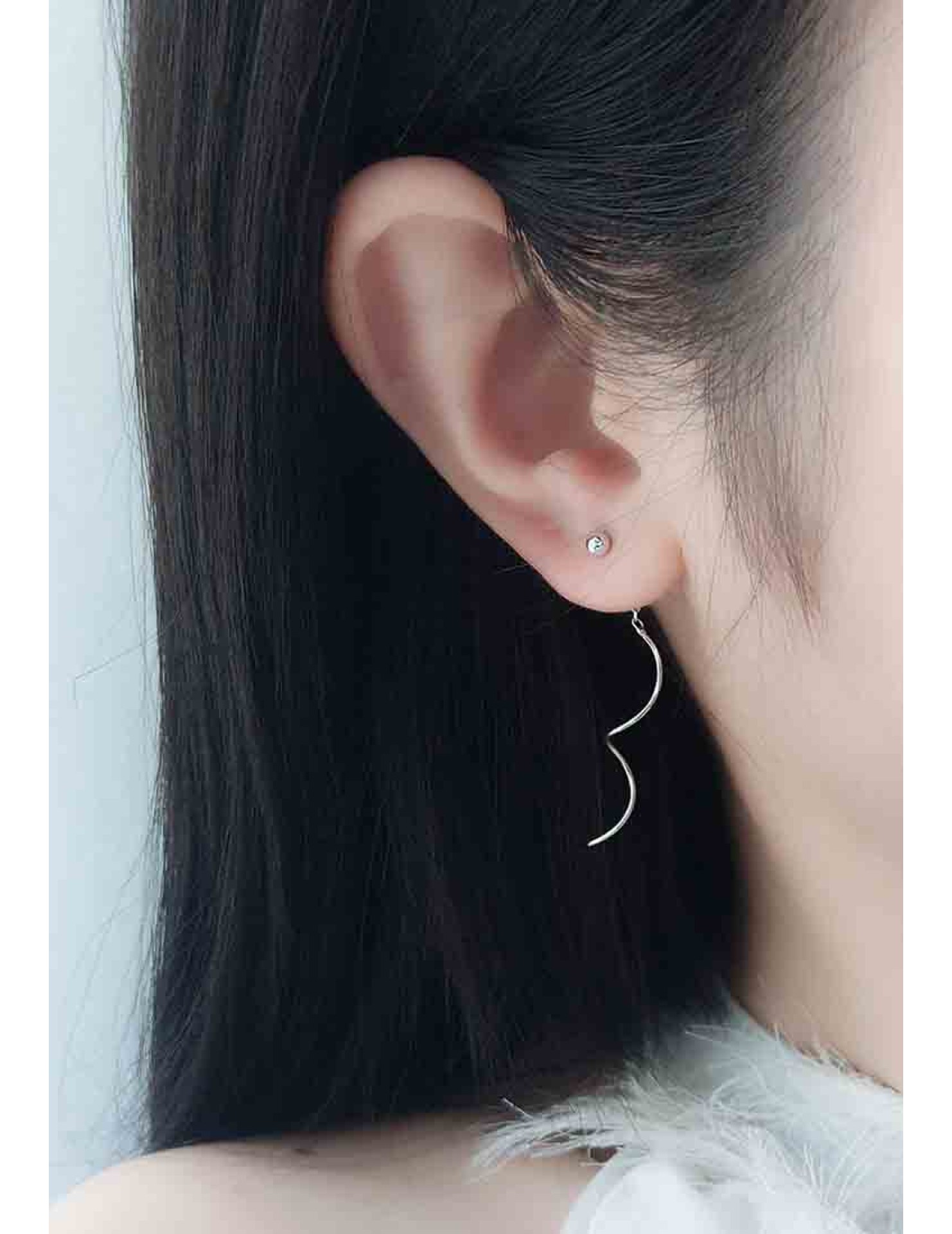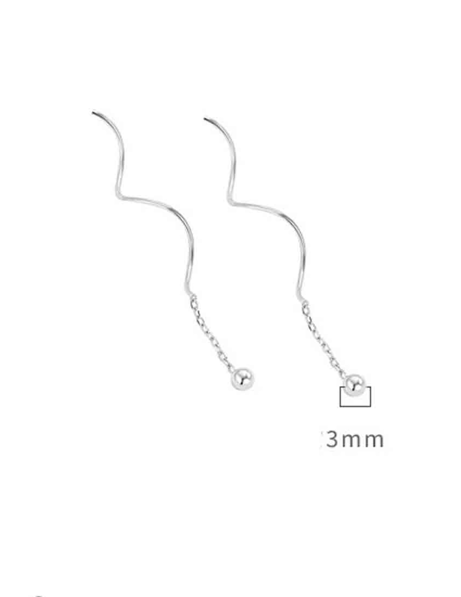 LDR24364 S925純銀圓珠波浪耳線耳環